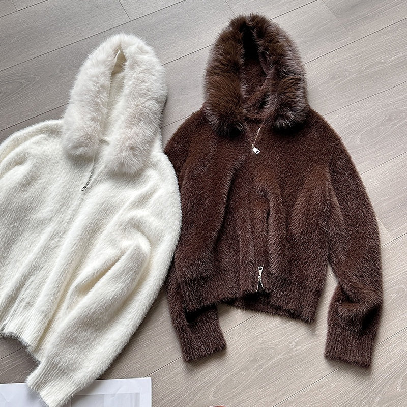 【アウター】春 秋 冬 フード ジップ カーディガン ゆったり 柔らかニット ジャケット 【JZシリーズ】