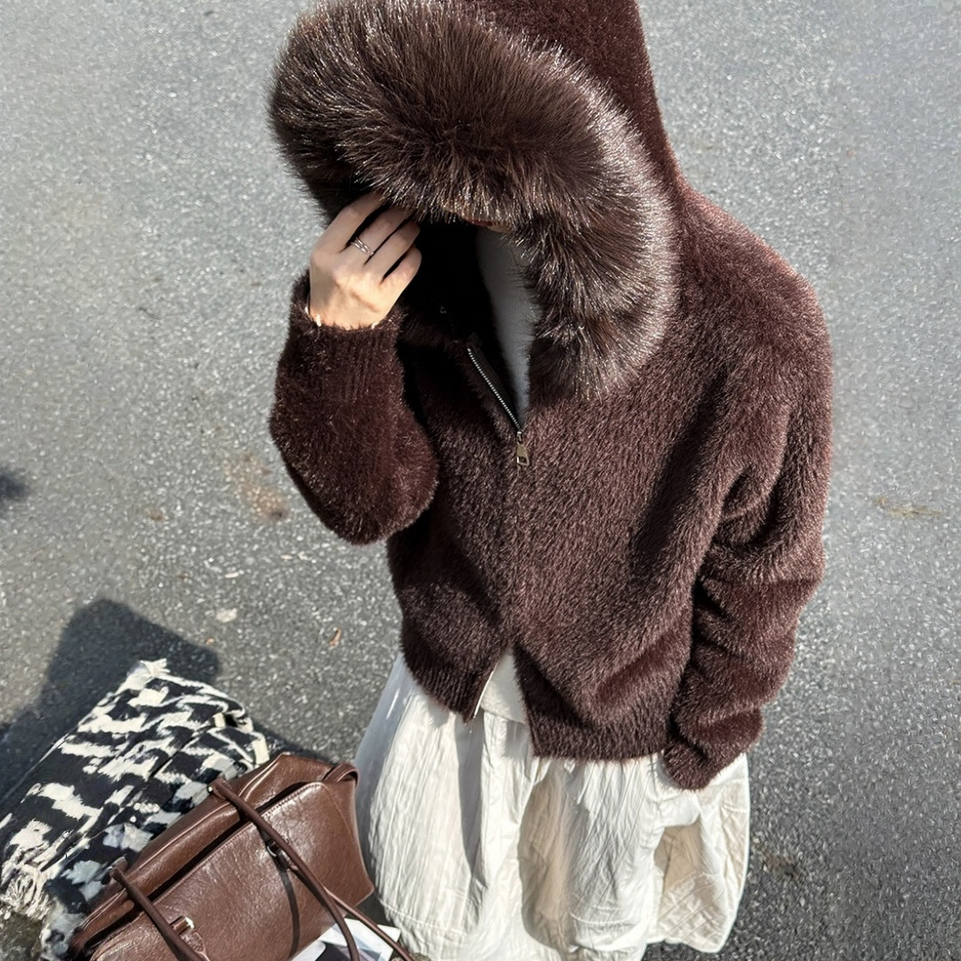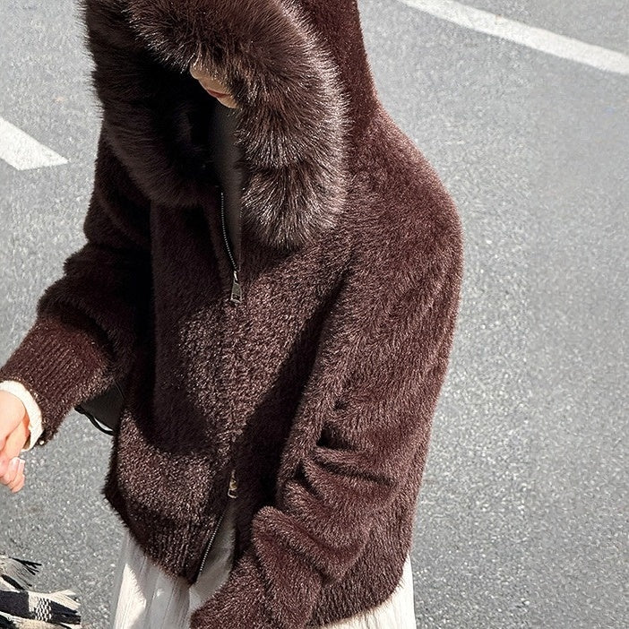 【商品名】【アウター】春 秋 冬 フード ジップ カーディガン ゆったり 柔らかニット ジャケット 【JZシリーズ】