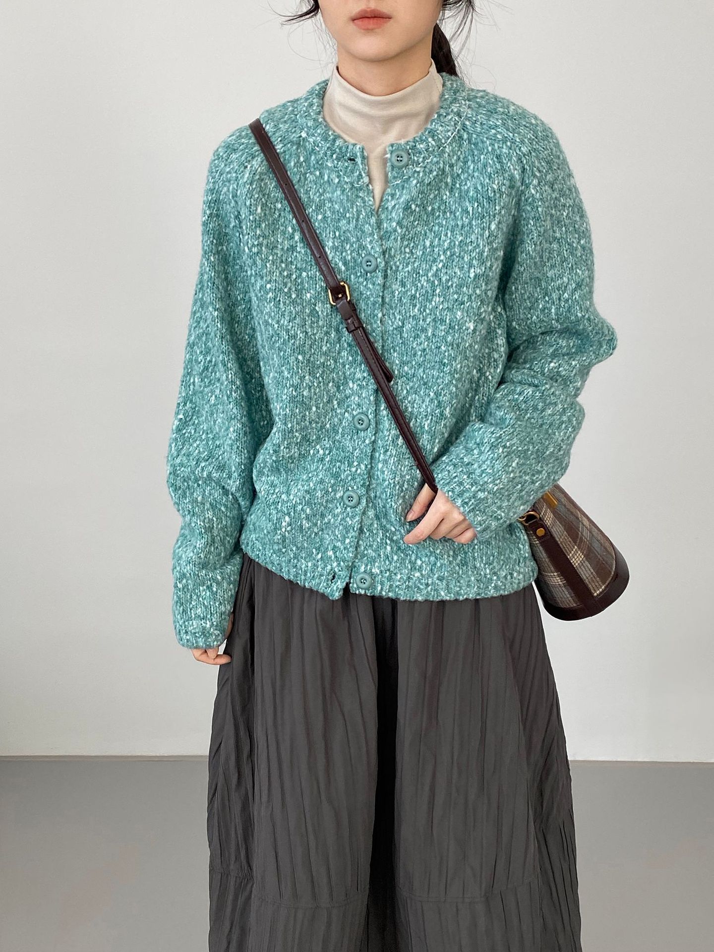 【ワンピース】起毛素材 チェック柄 レトロ クルーネック 長袖 ワンピース 【JZシリーズ】