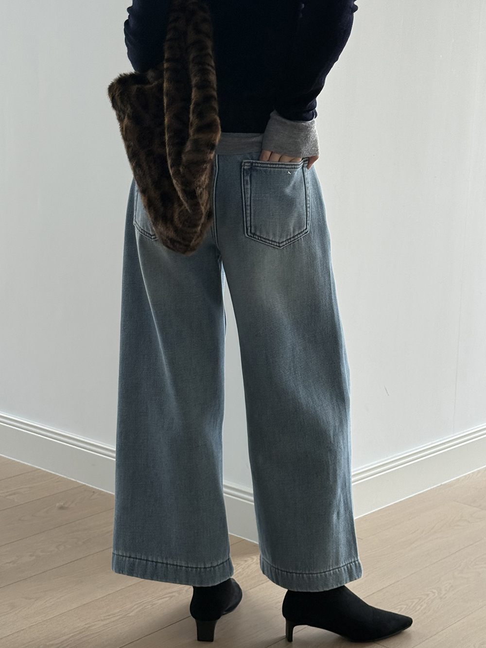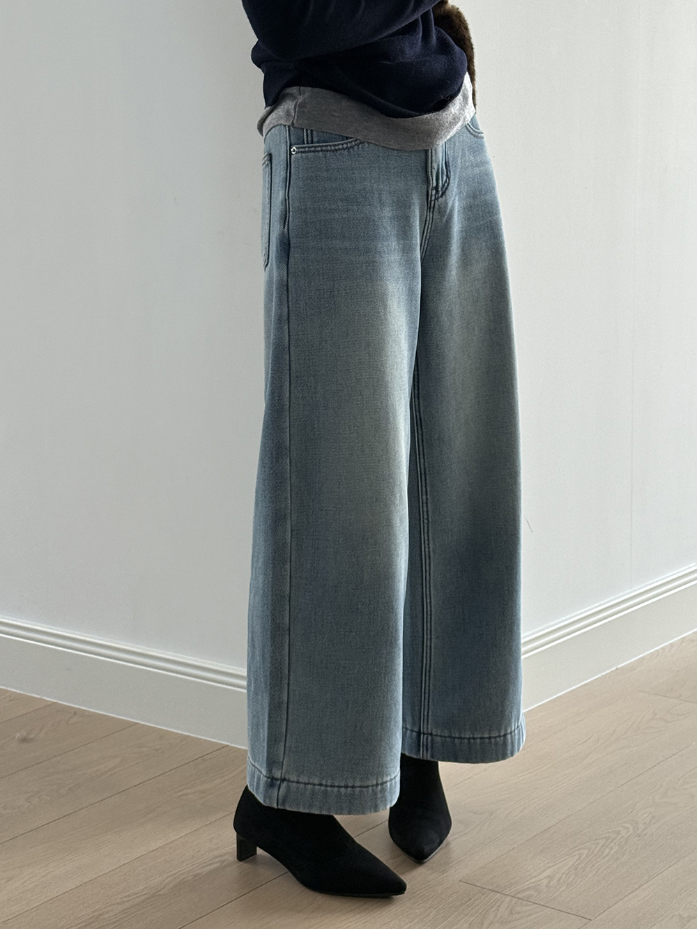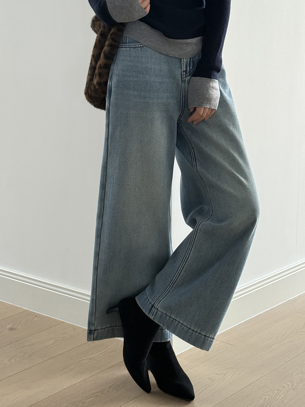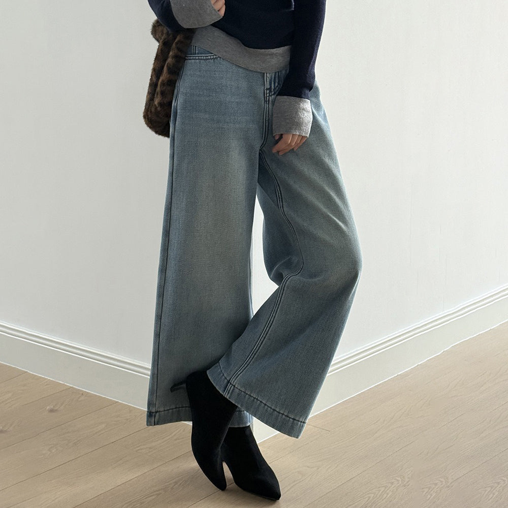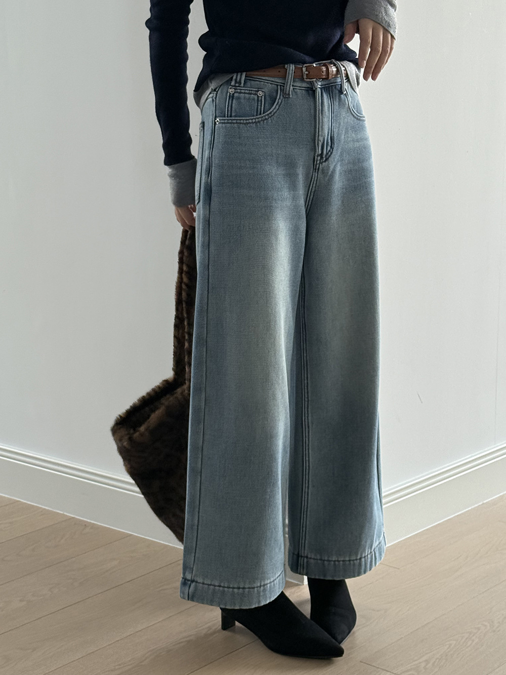 【ボトムス】ベルト付き!韓国風 ハイウエスト 裏起毛 ストレートデニムパンツ 冬 新作 ゆったりワイド カジュアル 【JZシリーズ】