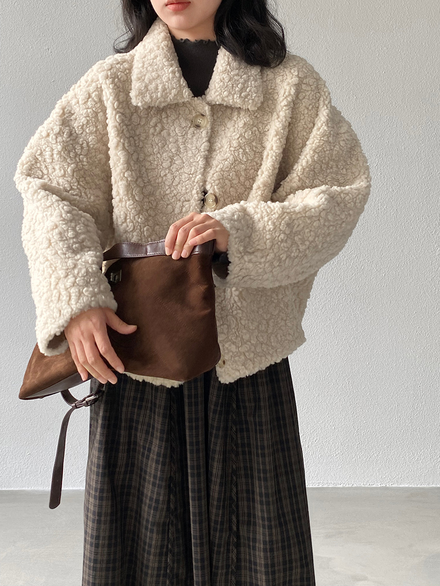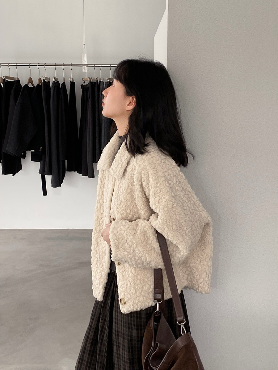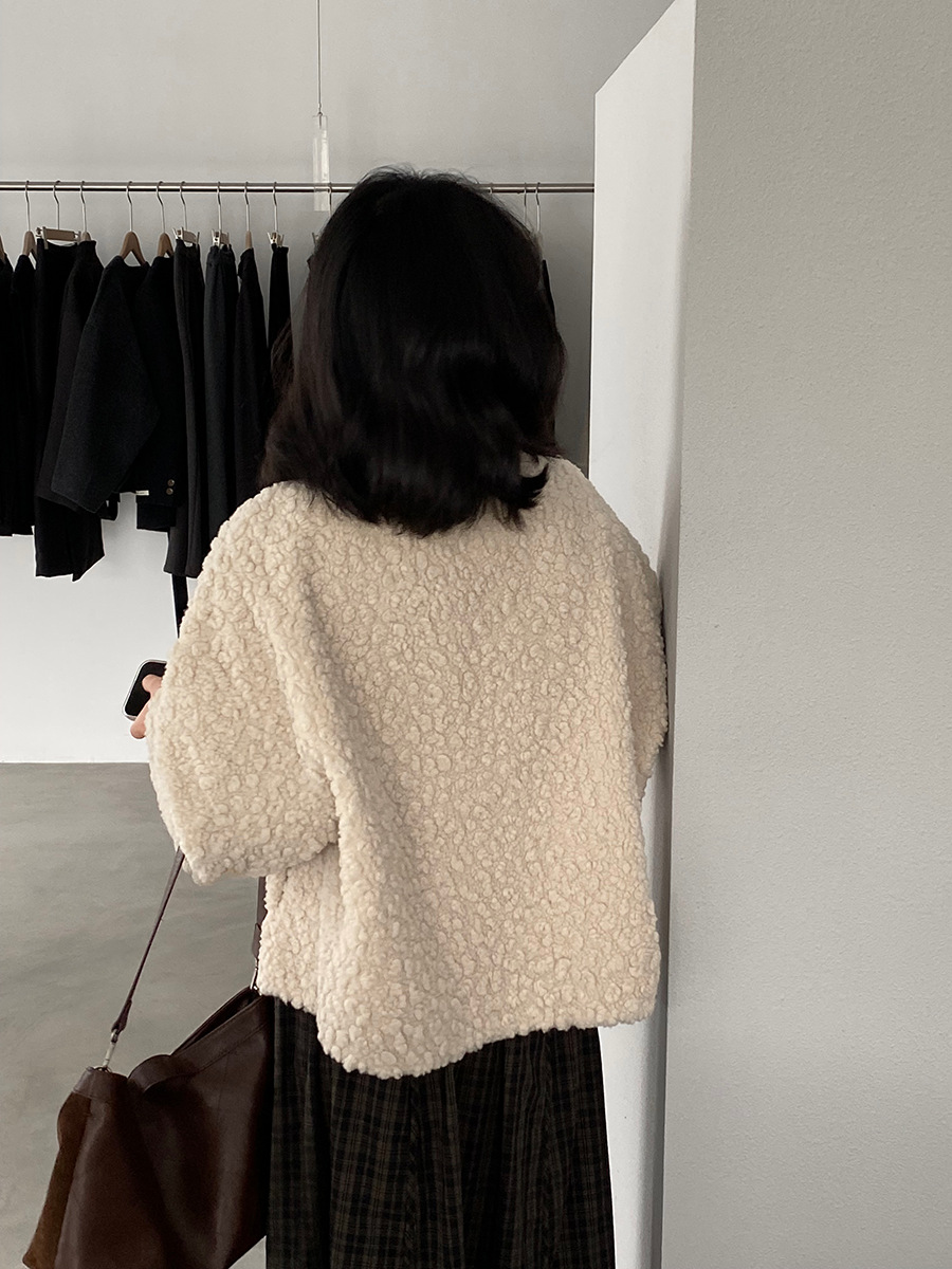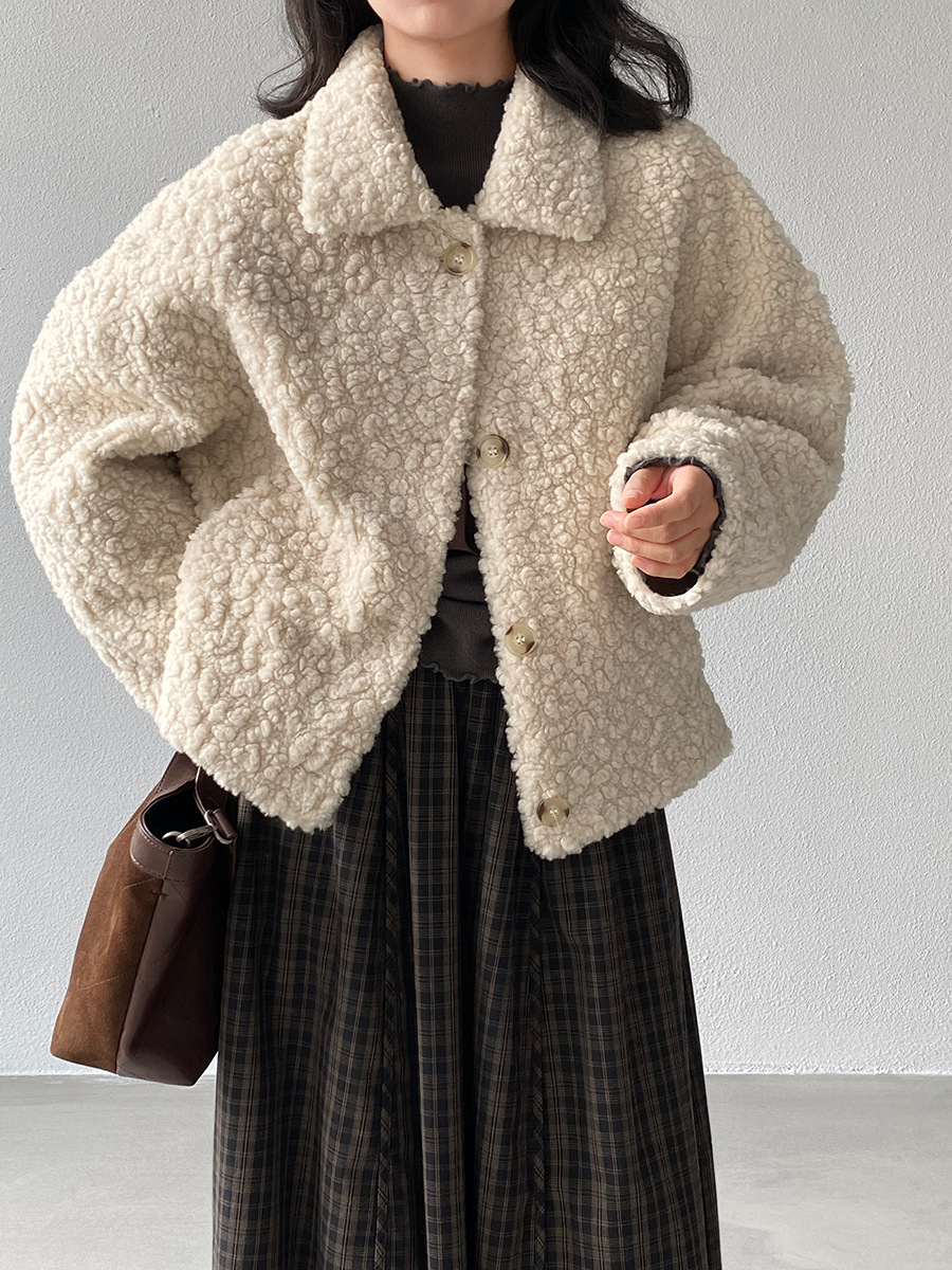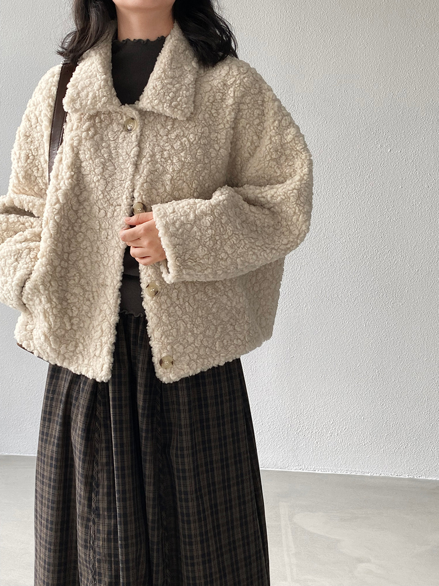 【アウター】ミルキーベージュ ボアジャケット レディース 冬 短丈 ゆったり 綿入れコート【JZシリーズ】