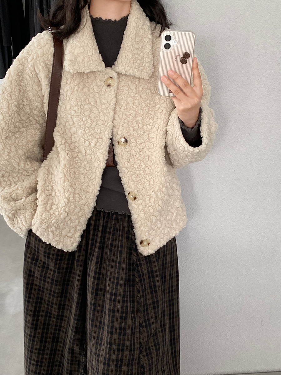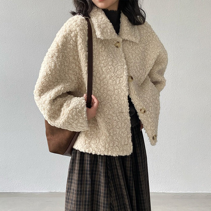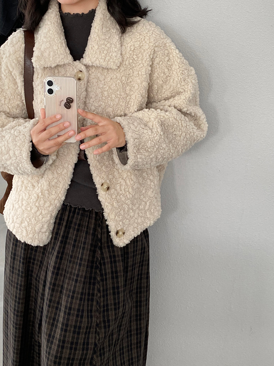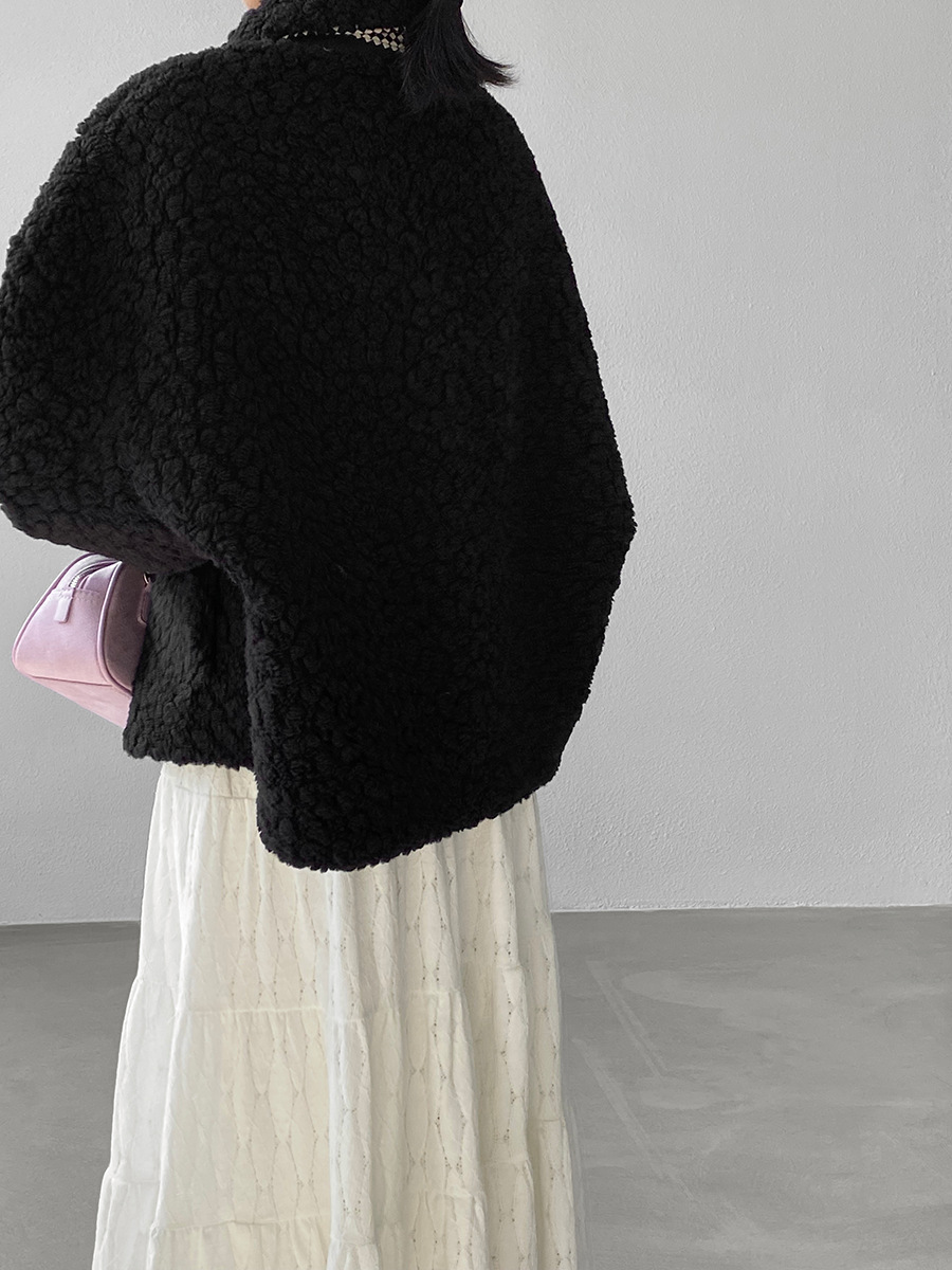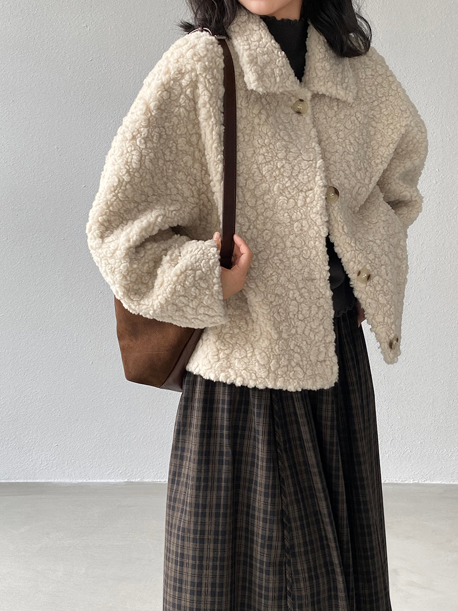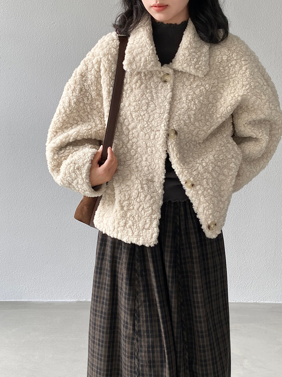 【アウター】ミルキーベージュ ボアジャケット レディース 冬 短丈 ゆったり 綿入れコート【JZシリーズ】