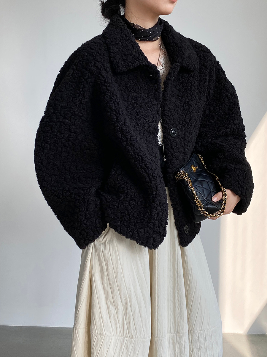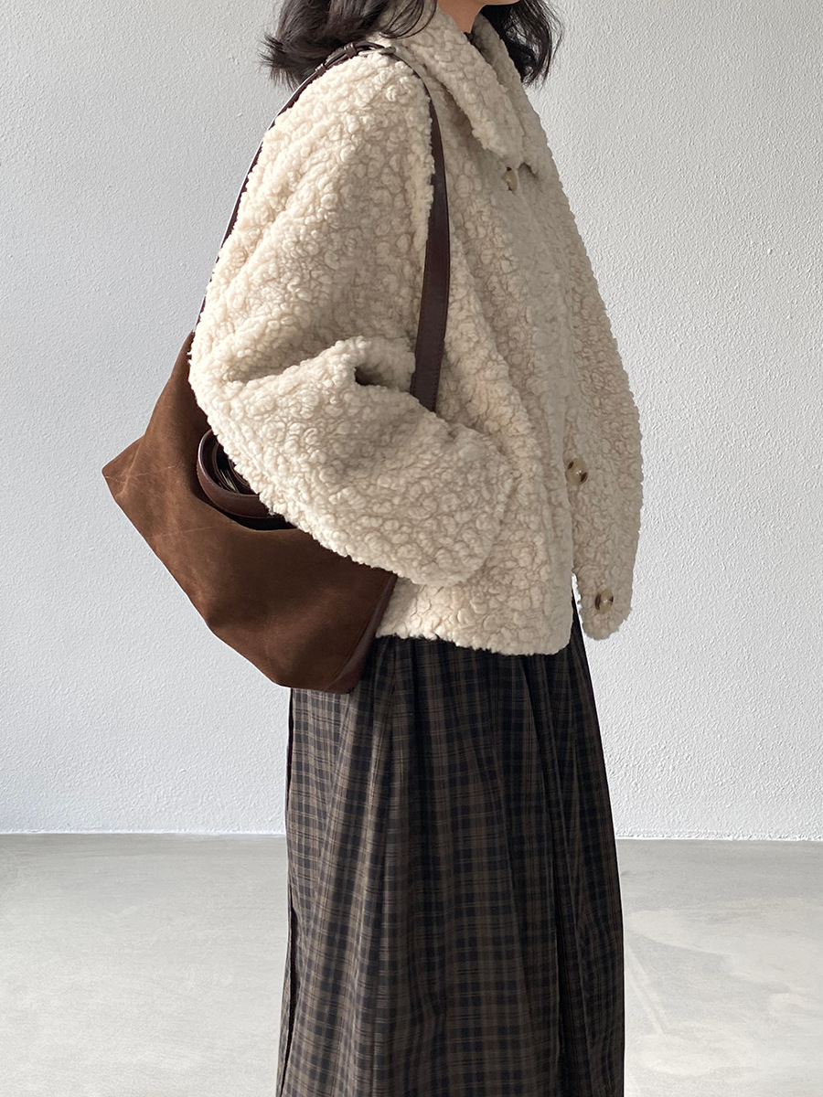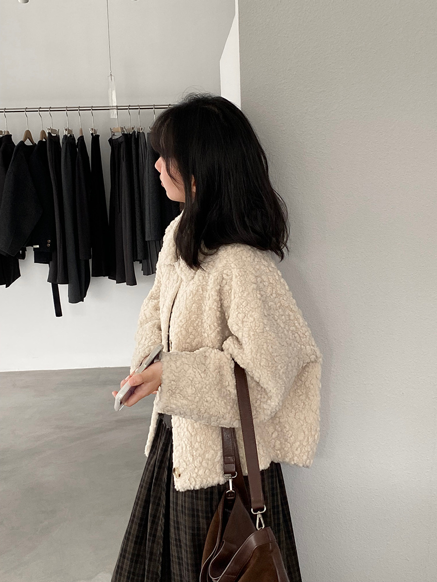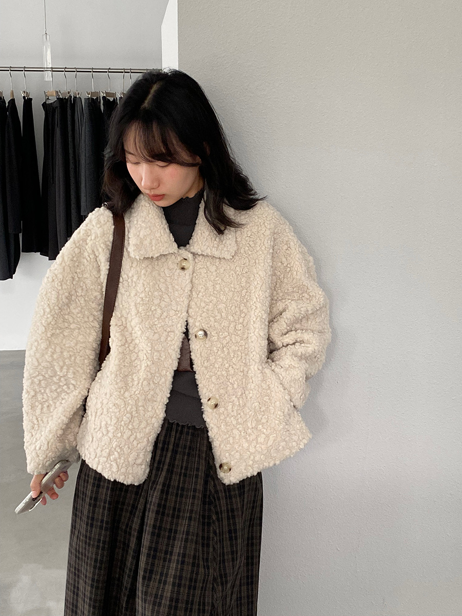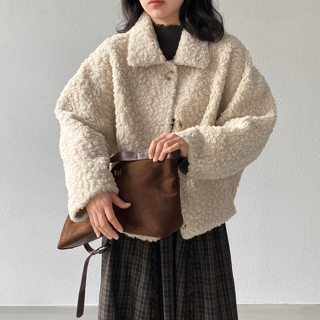 【アウター】ミルキーベージュ ボアジャケット レディース 冬 短丈 ゆったり 綿入れコート【JZシリーズ】