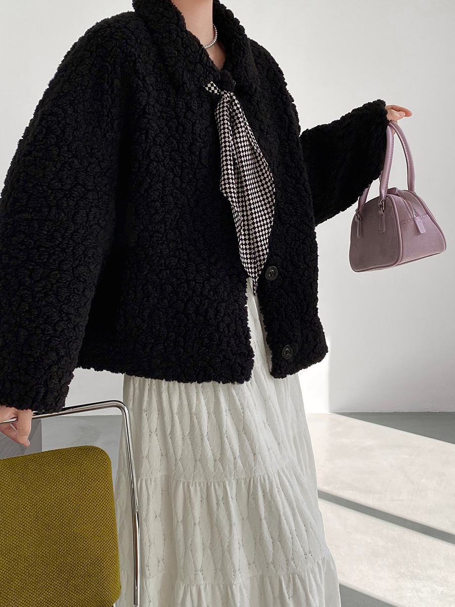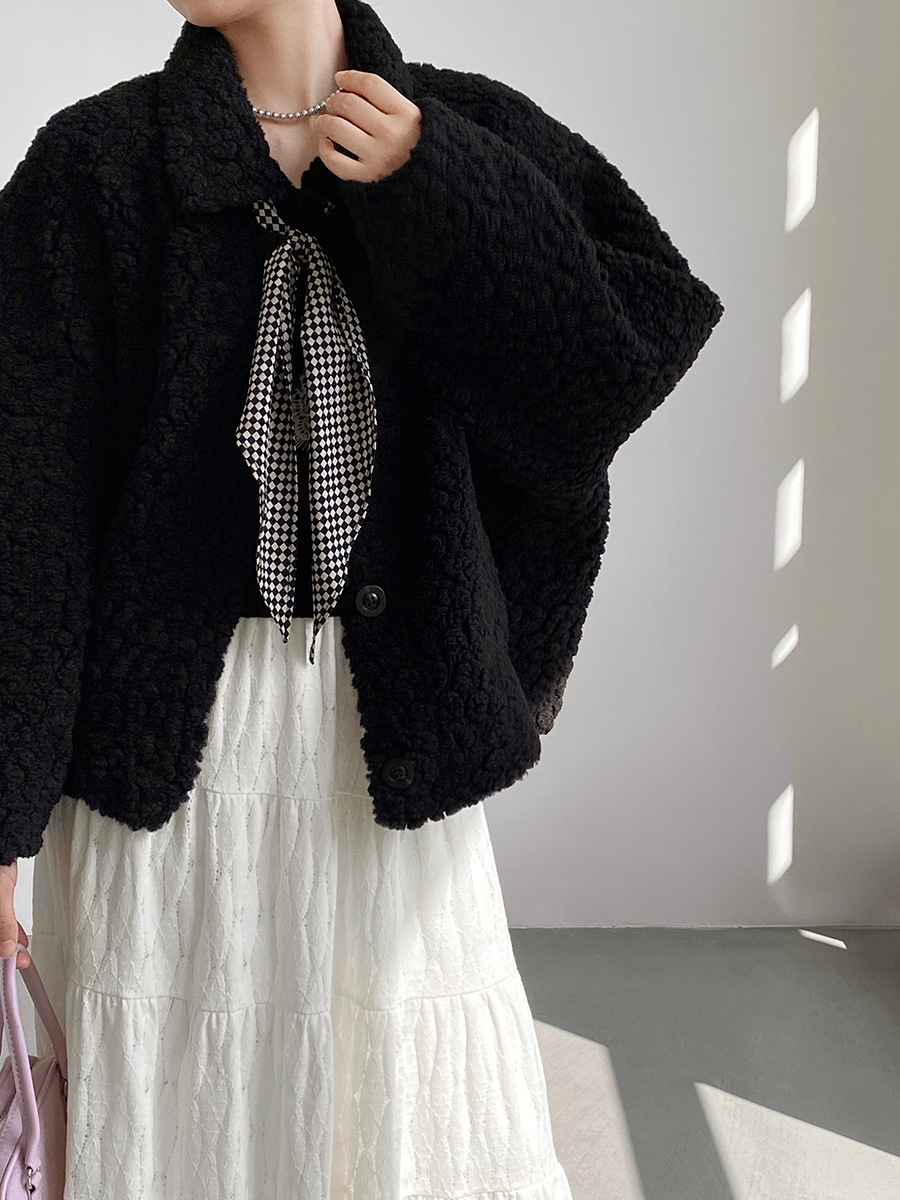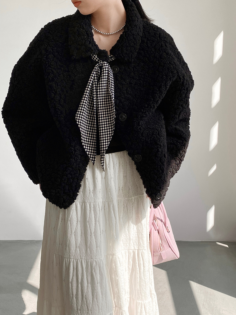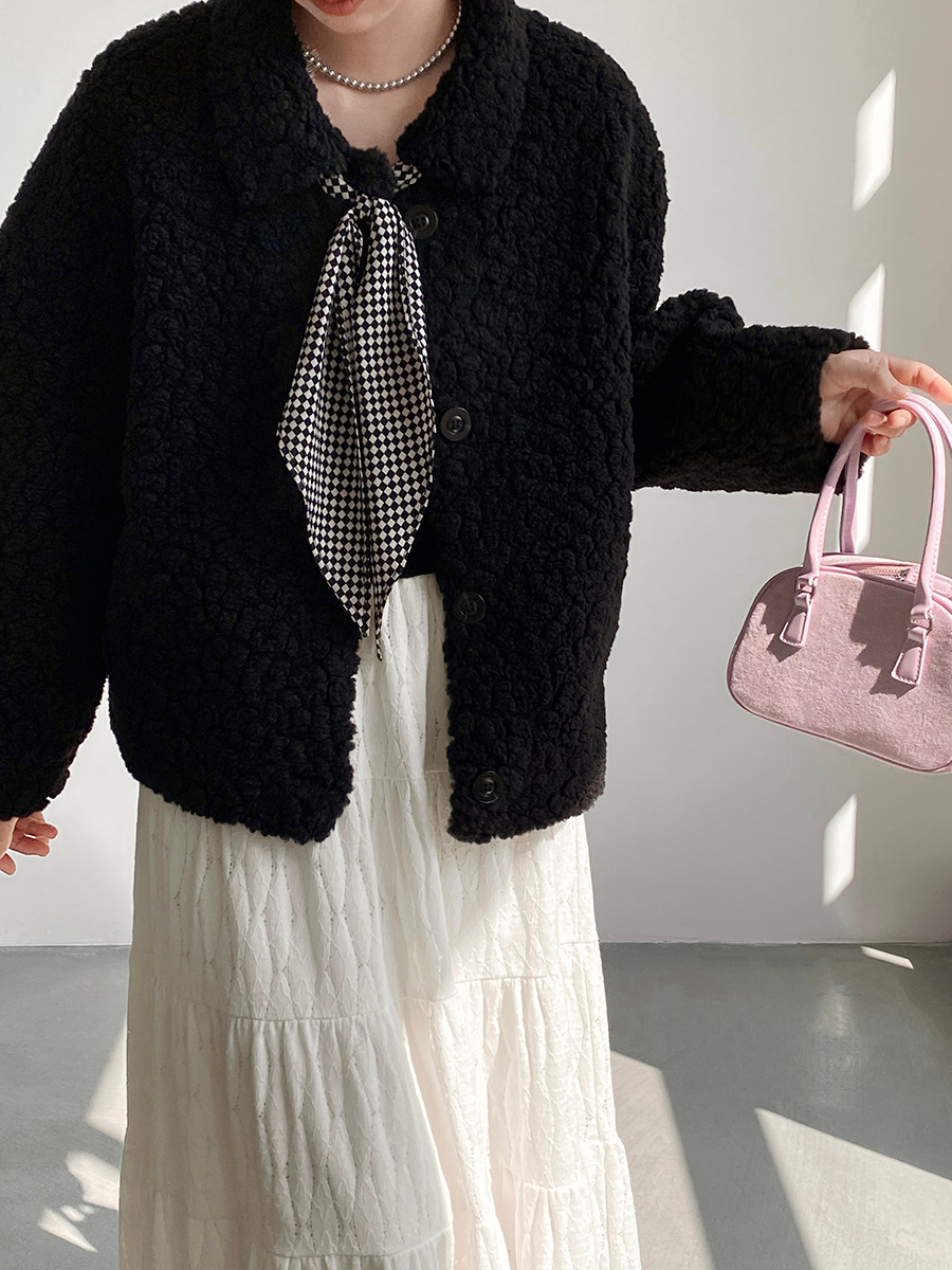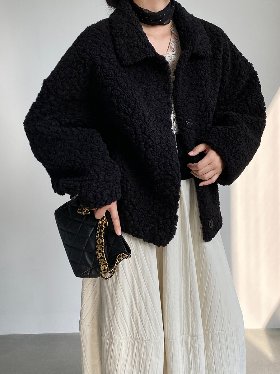 【アウター】ミルキーベージュ ボアジャケット レディース 冬 短丈 ゆったり 綿入れコート【JZシリーズ】