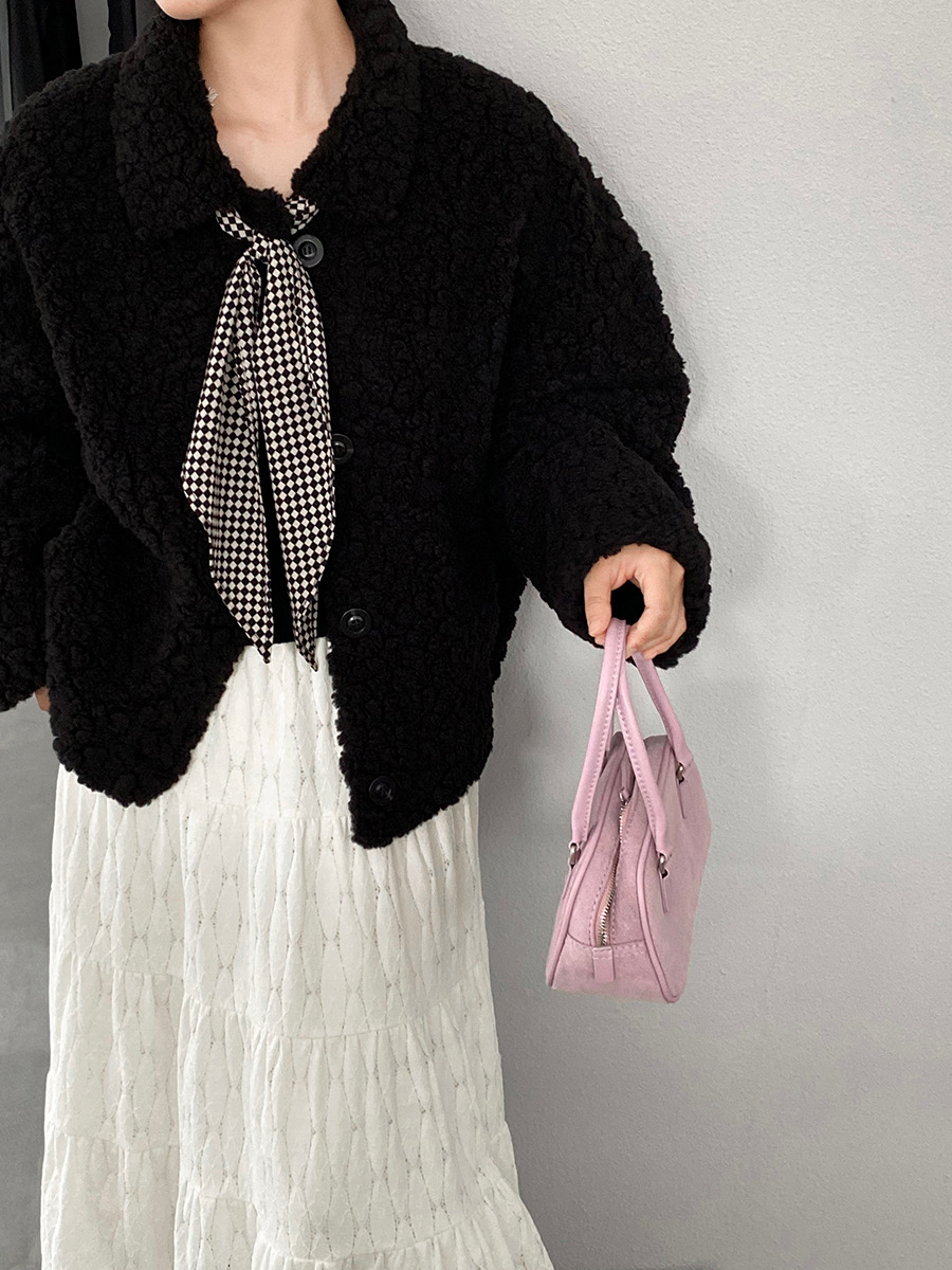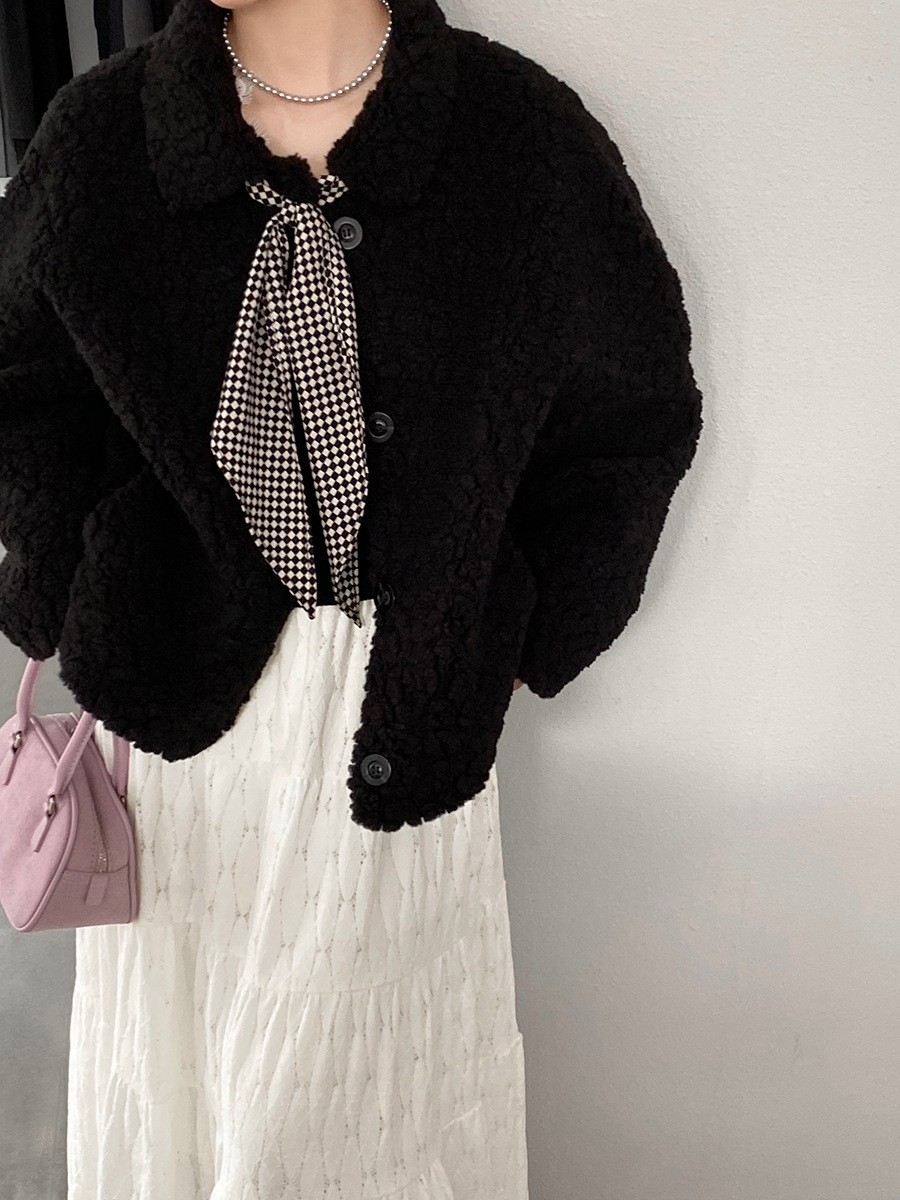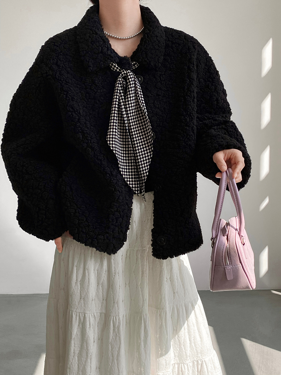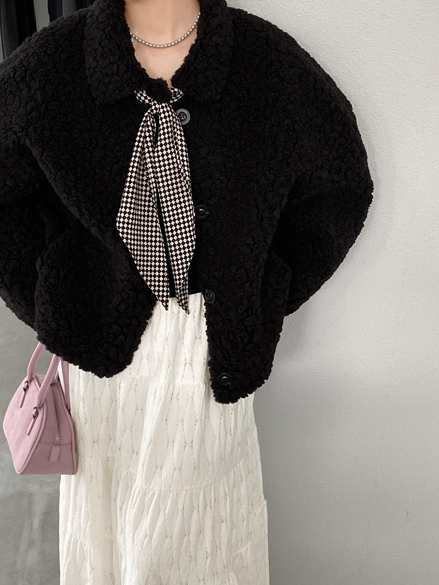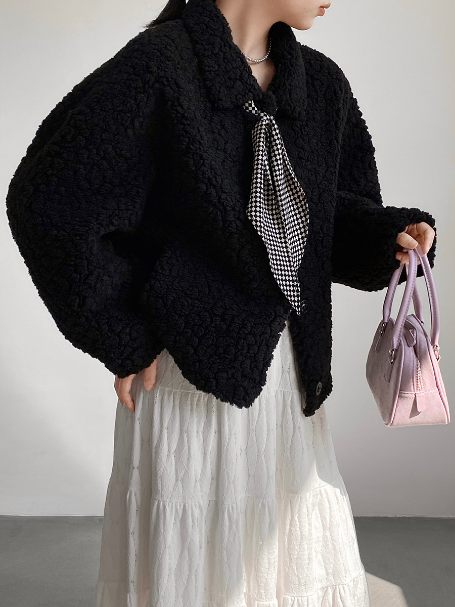 【アウター】ミルキーベージュ ボアジャケット レディース 冬 短丈 ゆったり 綿入れコート【JZシリーズ】