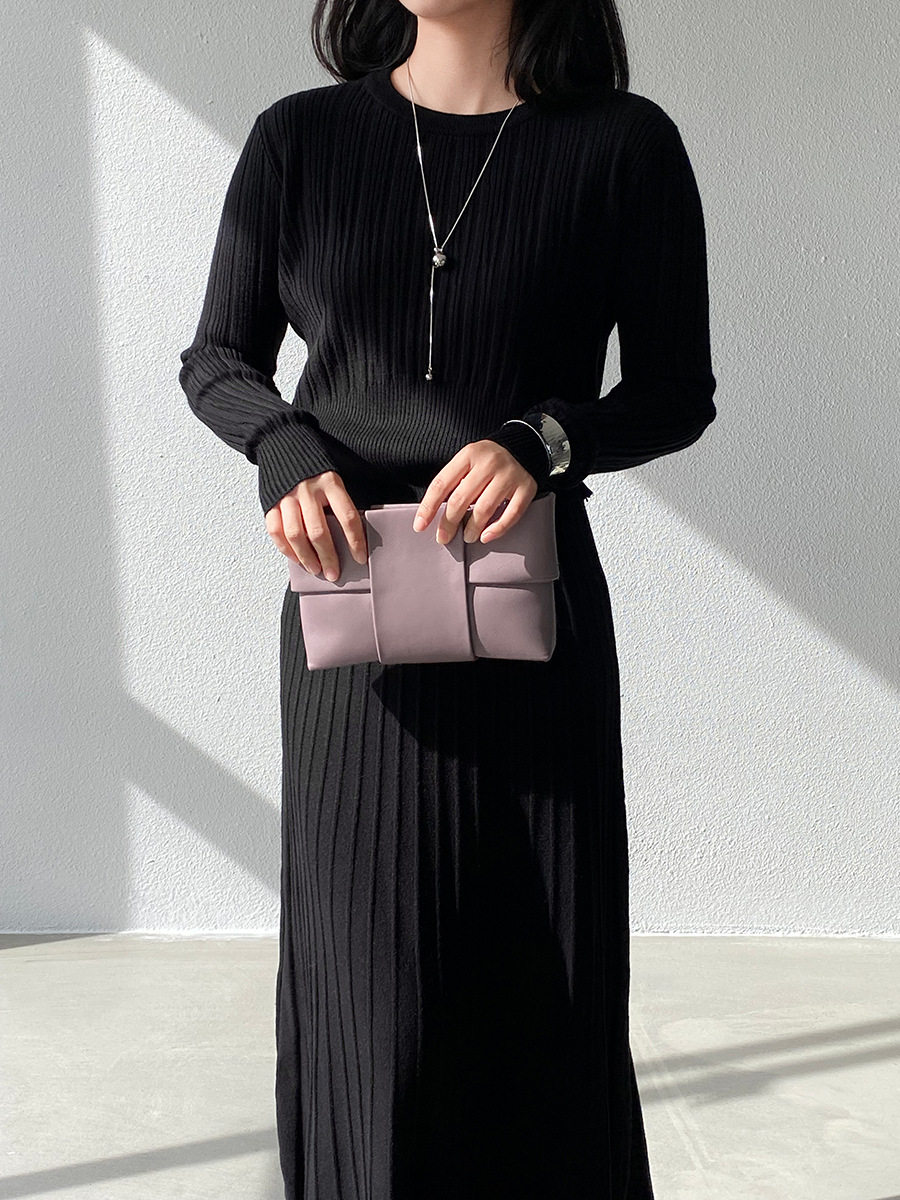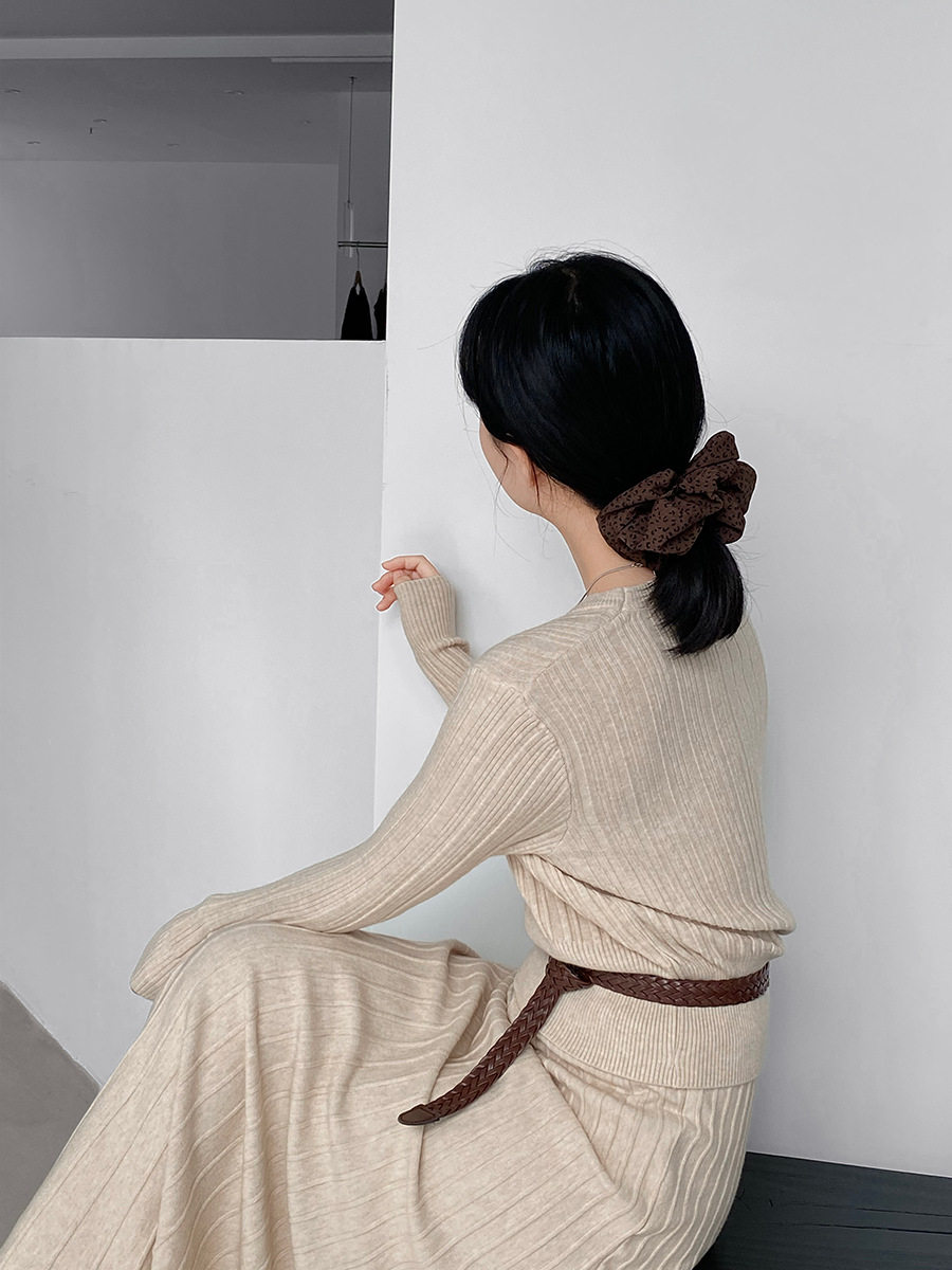 【60%OFF⭐️早い者勝ち】【ワンピース】春秋ラウンドネック 長袖 ニット パッチワーク ロング 長袖ワンピース