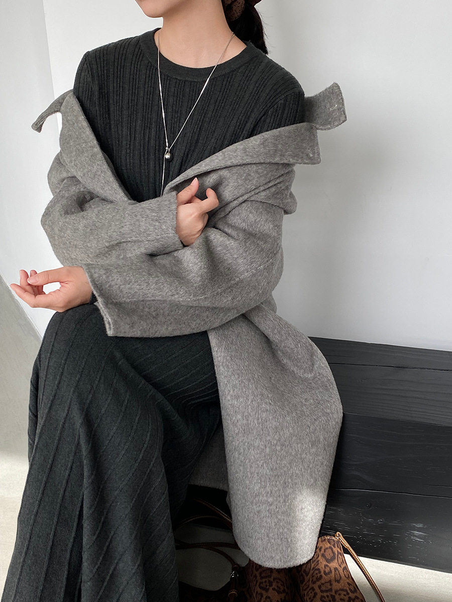 【アウター】上質感◎ ダブルフェイスウールコート レディース 秋冬 ロング丈 韓国風【JZシリーズ】