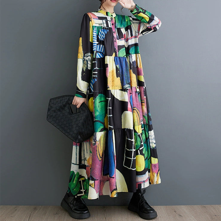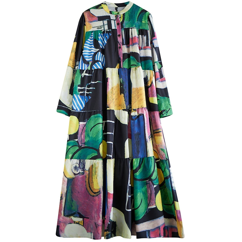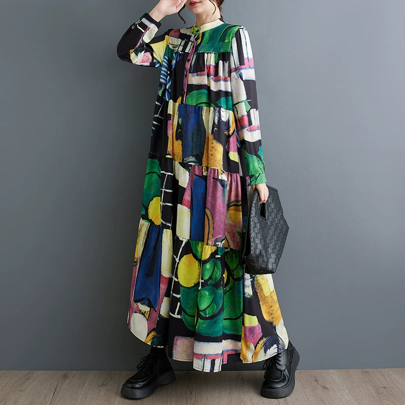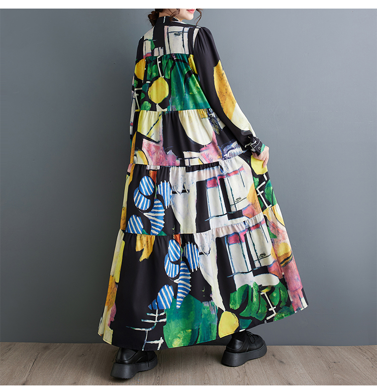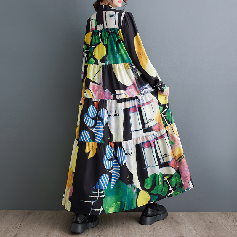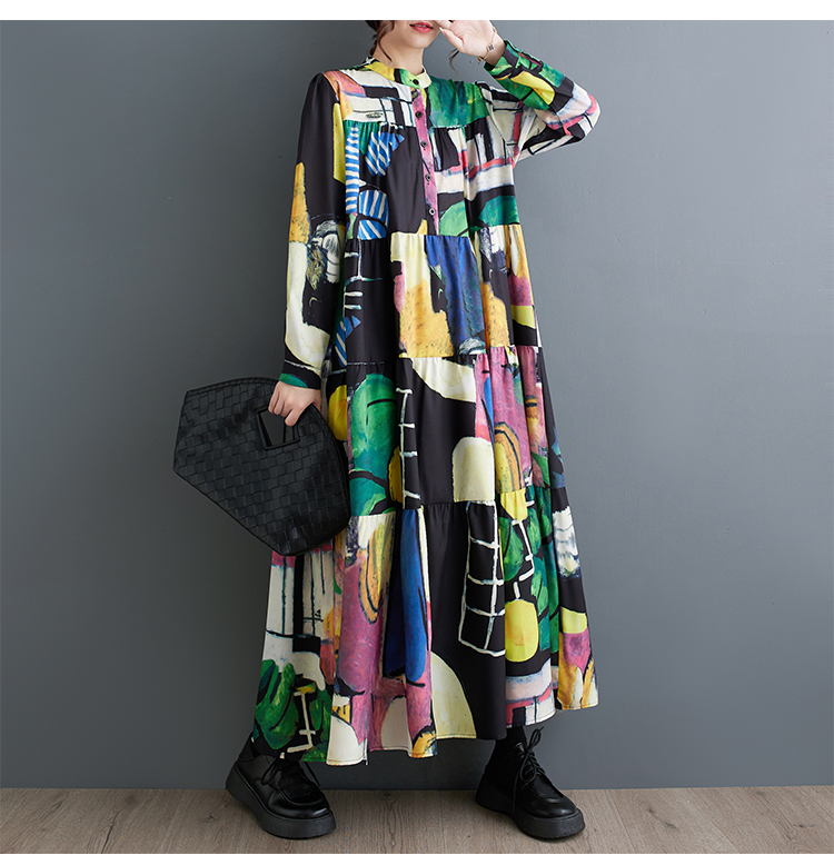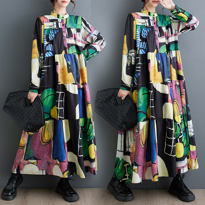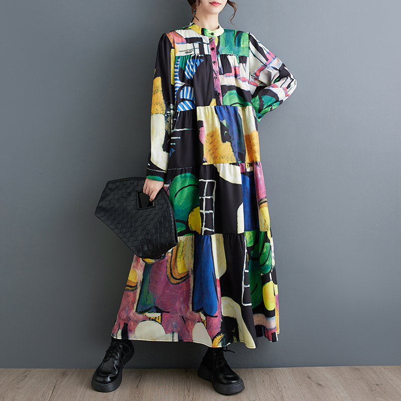 【商品名】【ワンピース】春 秋 冬 大振裾 花柄 長袖 ワンピース 【SHシリーズ】