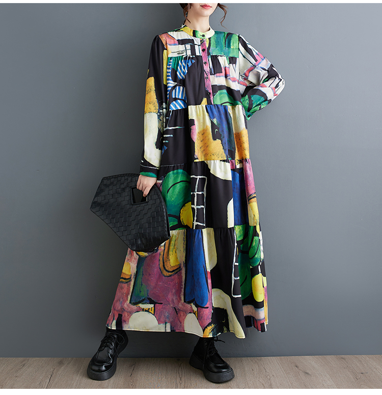 【ワンピース】フレンチレトロ 切替デザイン 大ポケット 長袖 ワンピース 秋新作 ゆったり 【JZシリーズ】