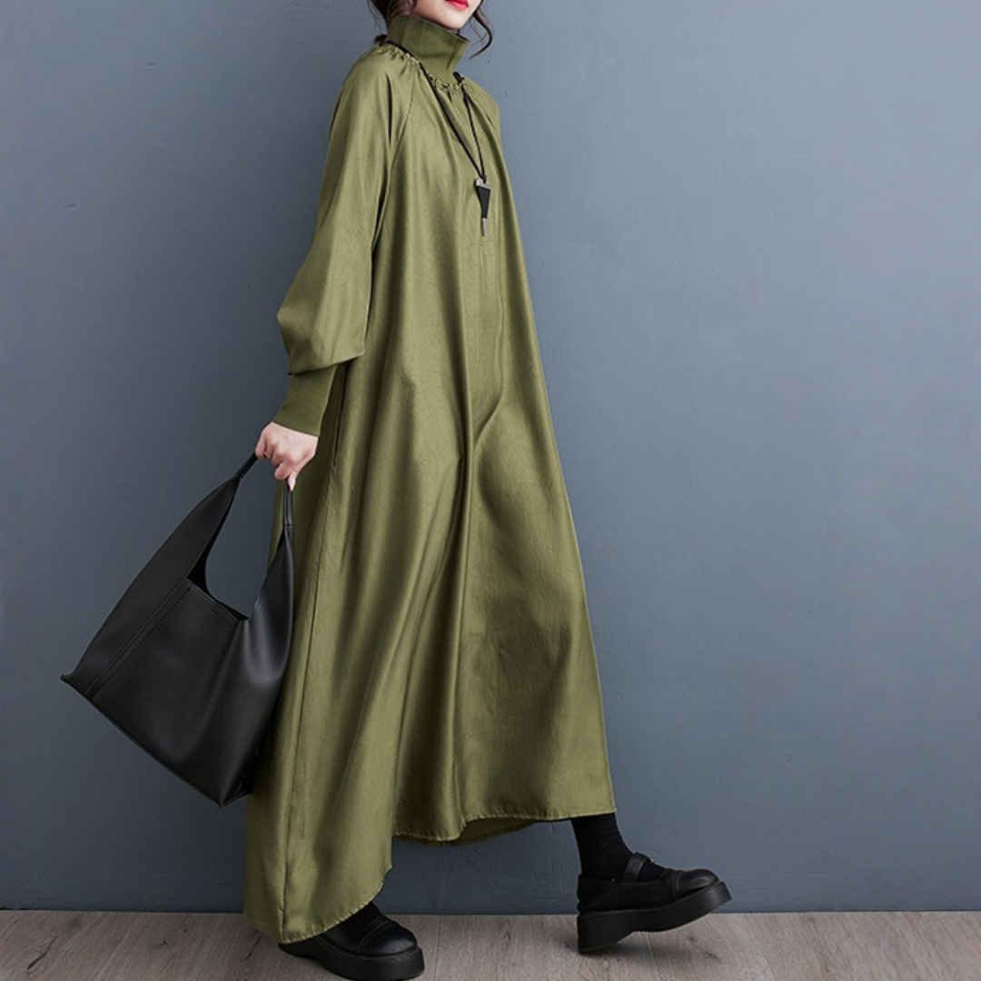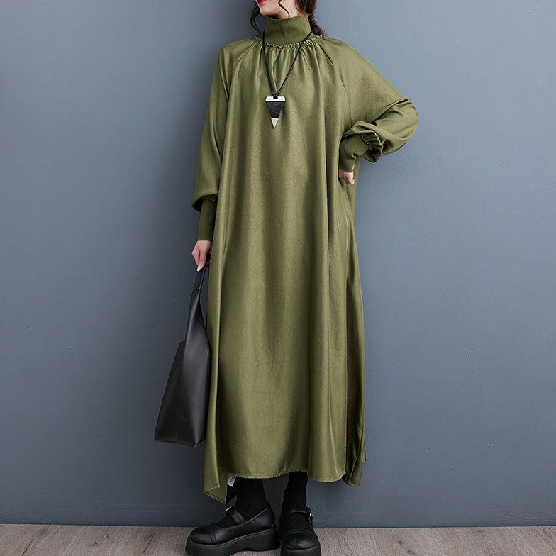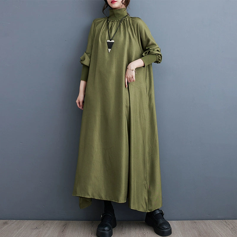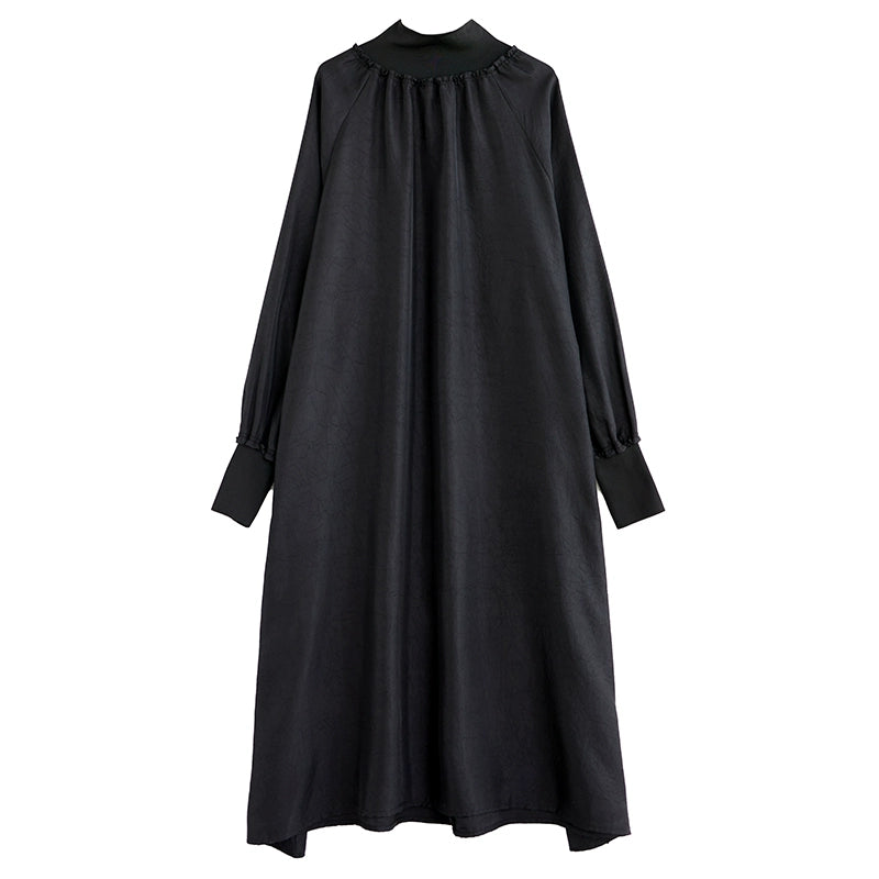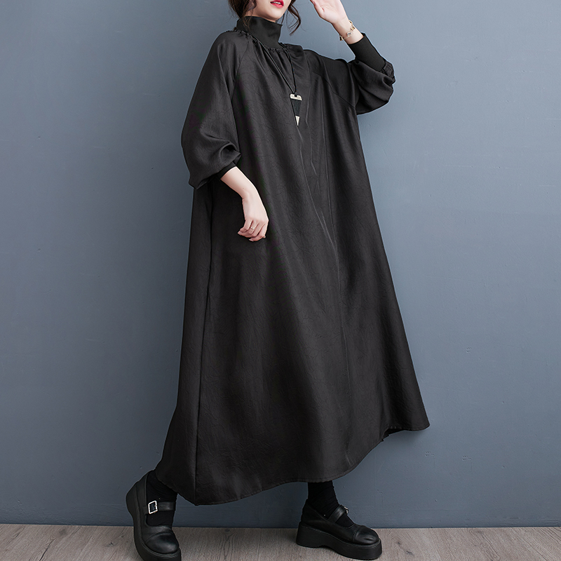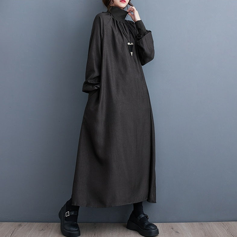 【ワンピース】細見え 日系 Vネック 無地 長袖ワンピース 切替デザイン ゆったり 気質ロング【JZシリーズ】【AHシリーズ】