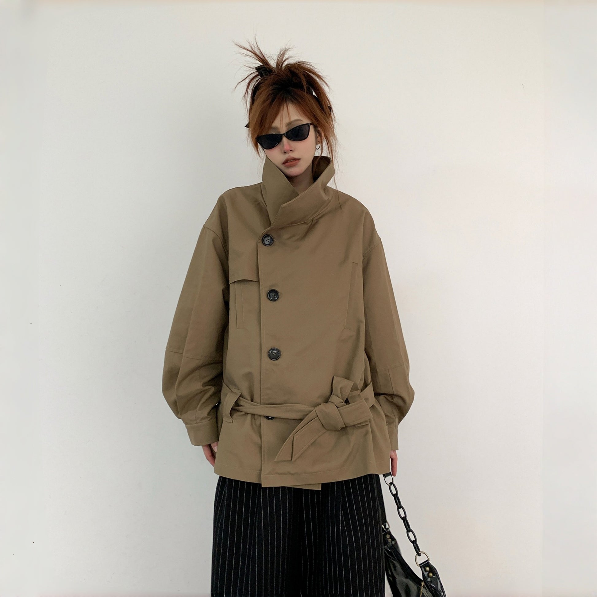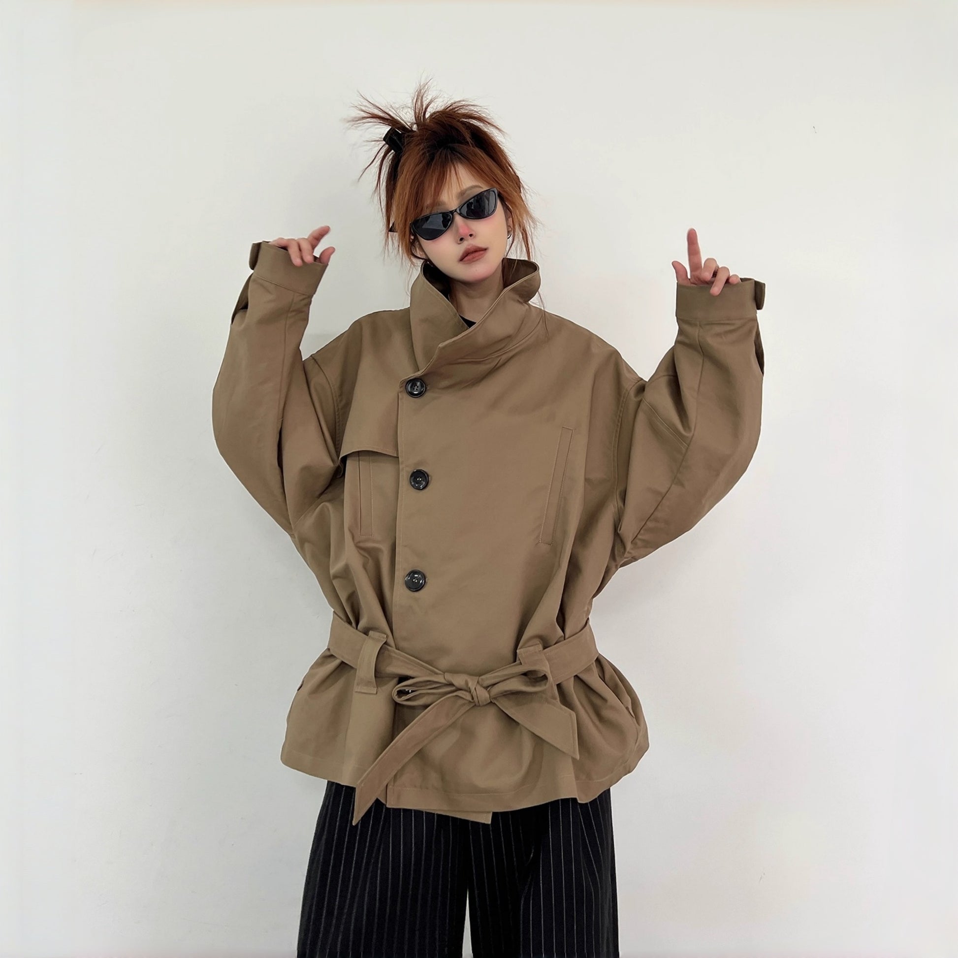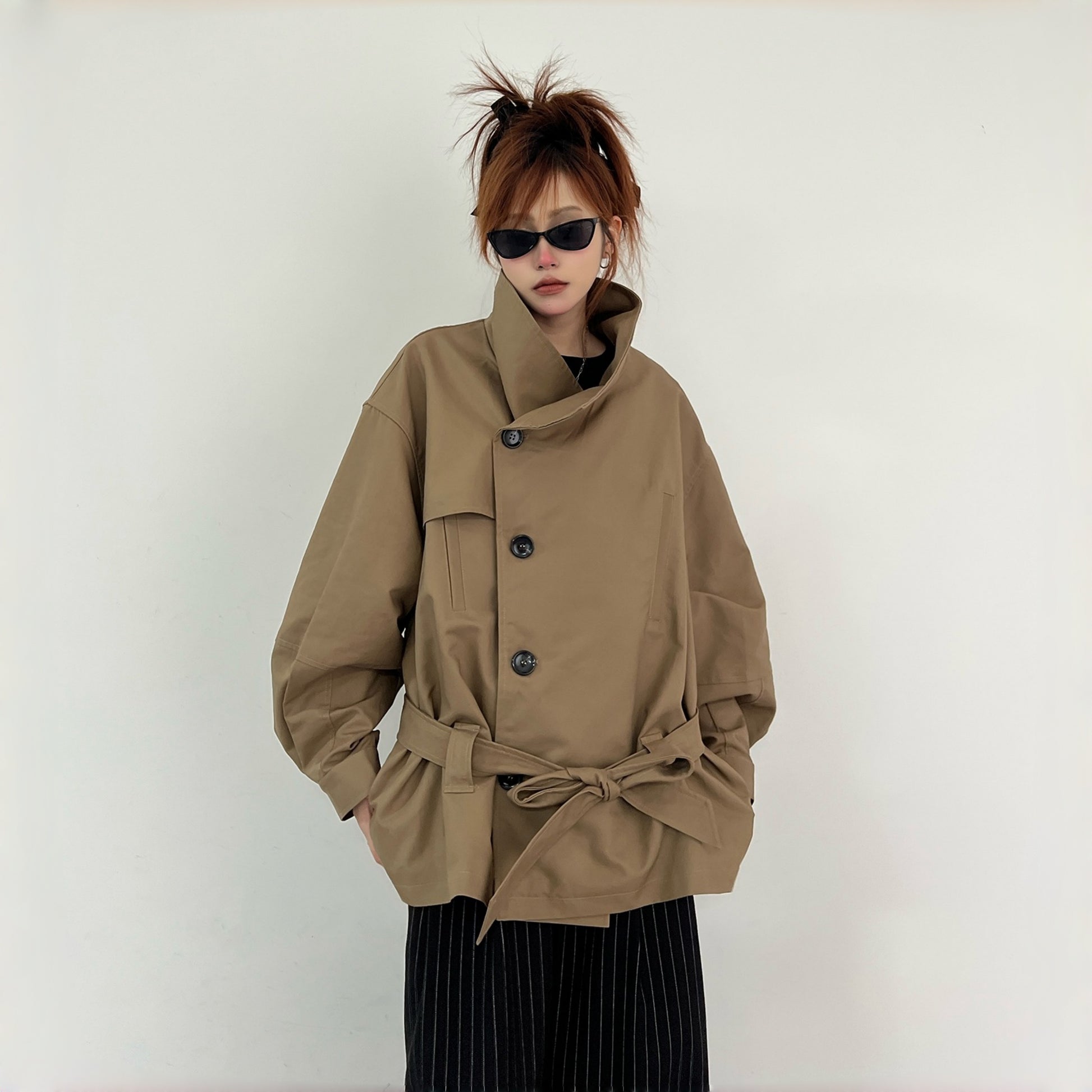 【商品名】【アウター】レトロ シングルブレスト ワイドカラー エレガント トレンチコート