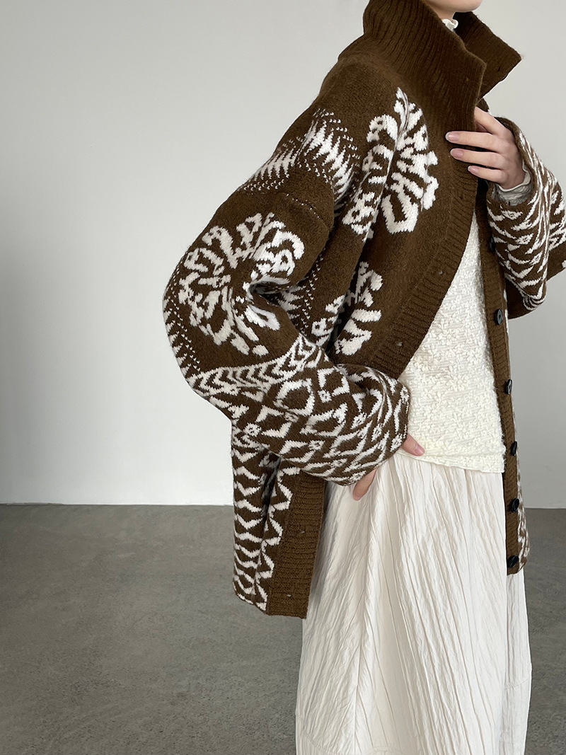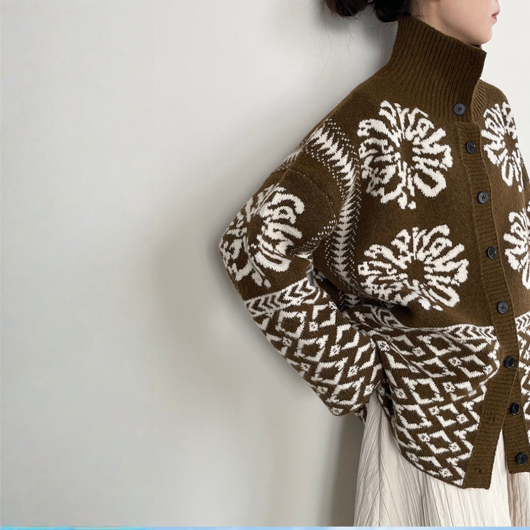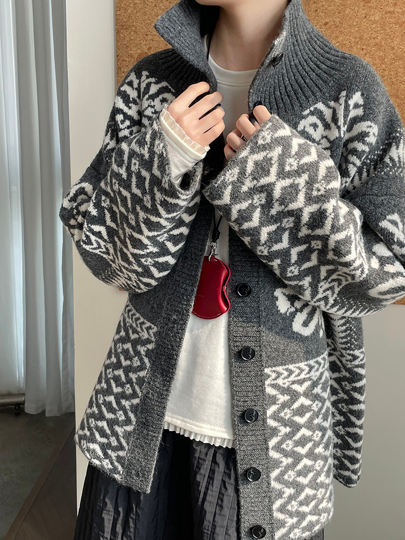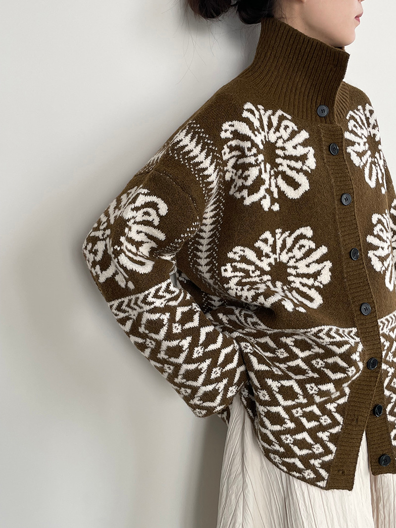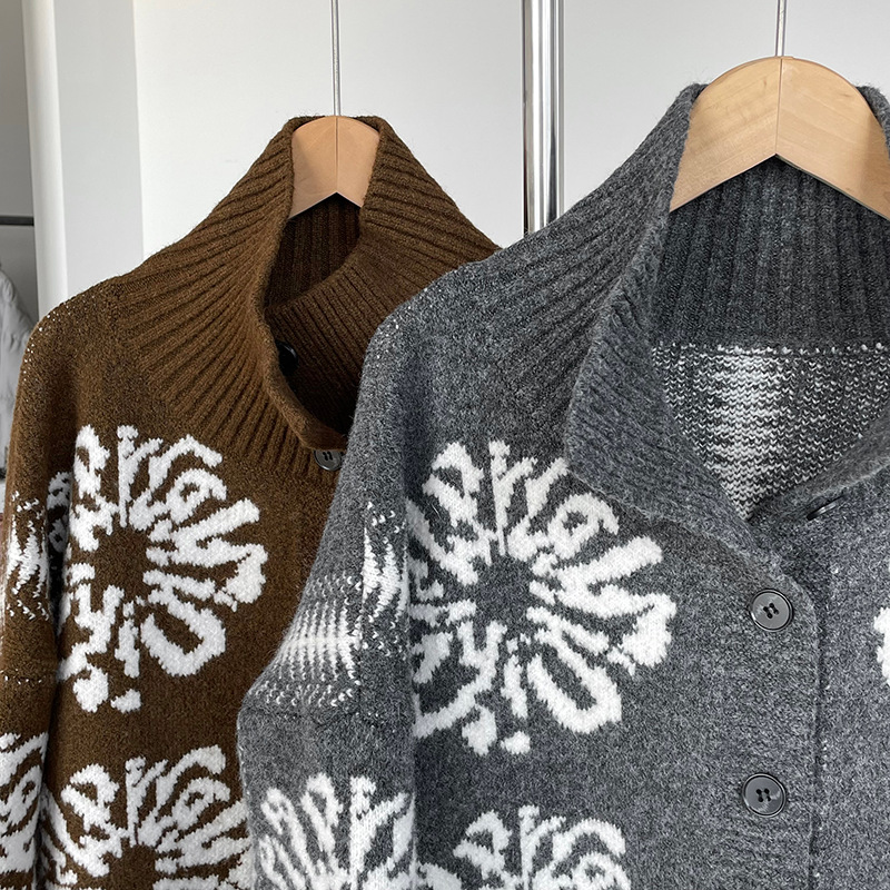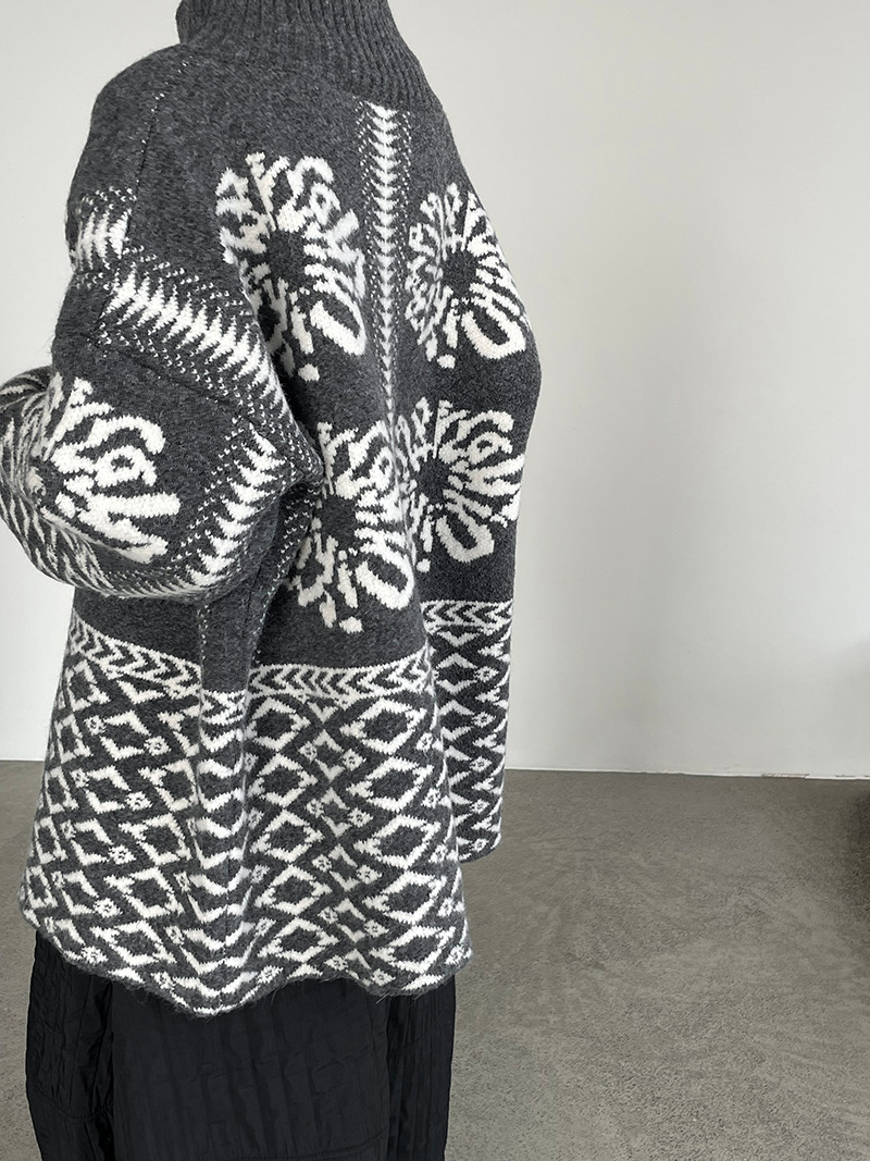 【トップス】折り襟 春 秋 冬 厚手 フェアアイル柄ニット セーター 【JZシリーズ】