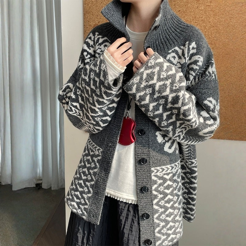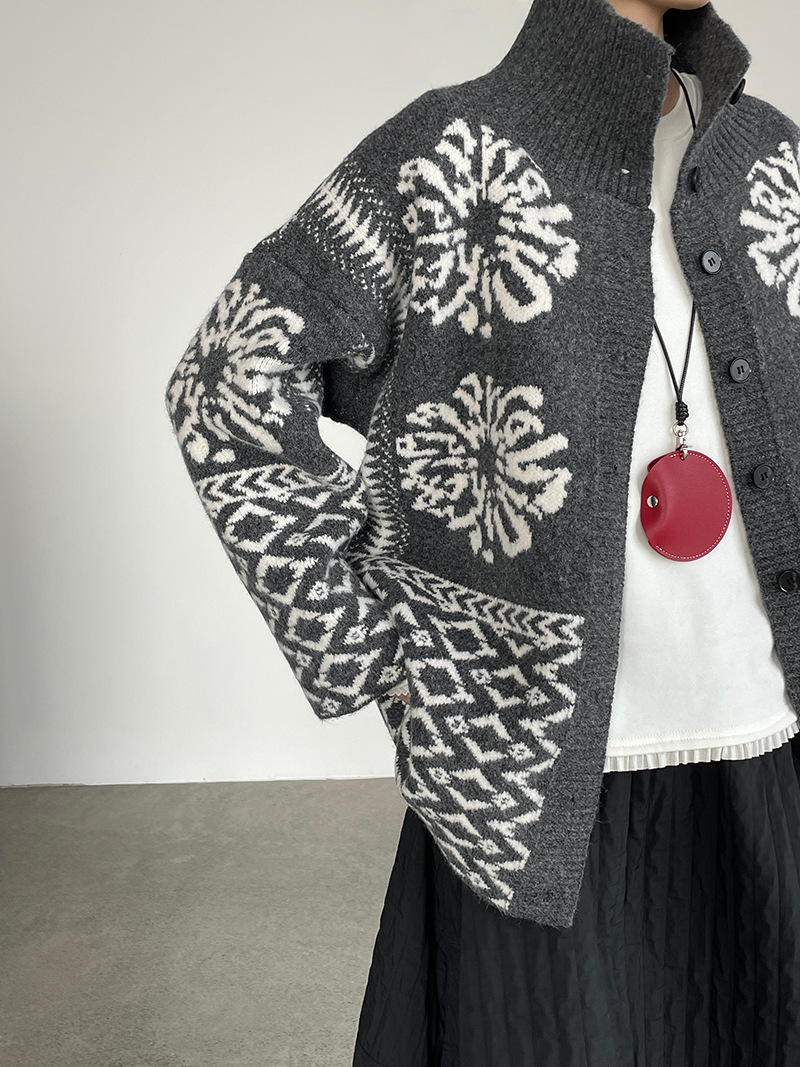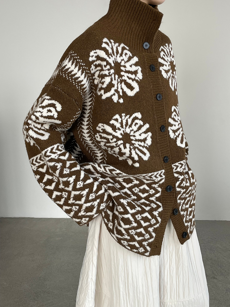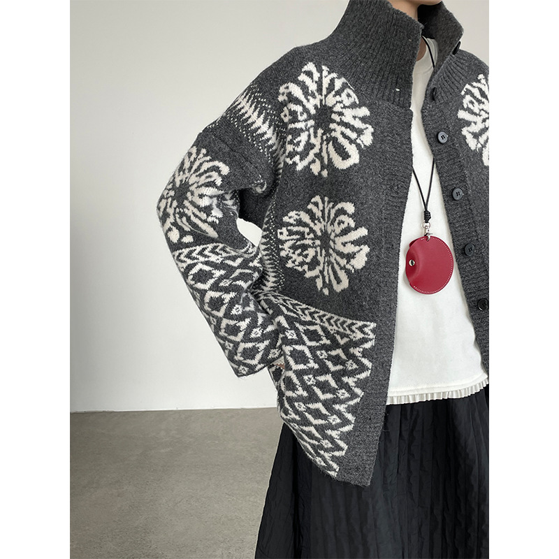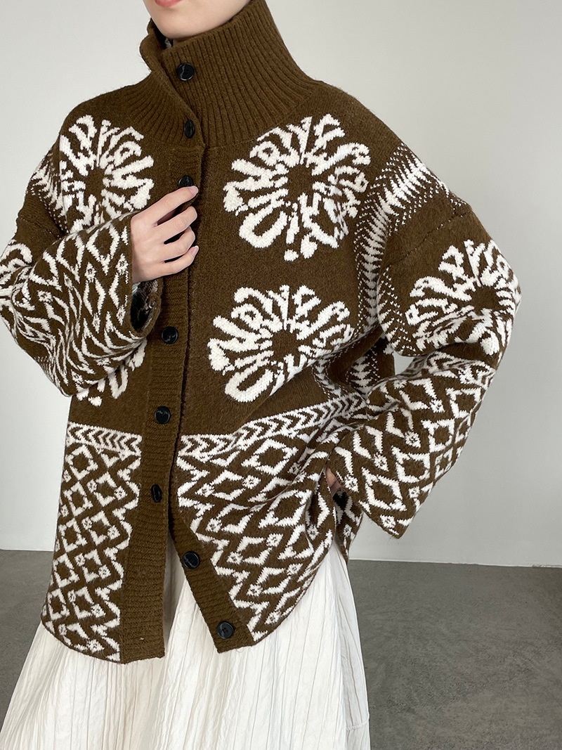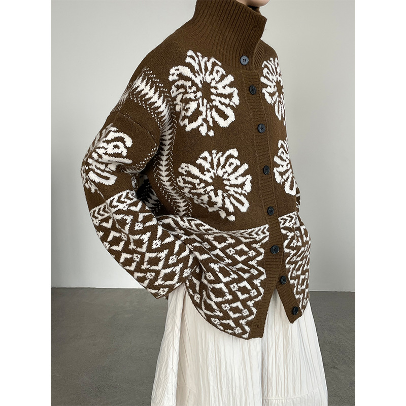 【トップス】折り襟 春 秋 冬 厚手 フェアアイル柄ニット セーター 【JZシリーズ】