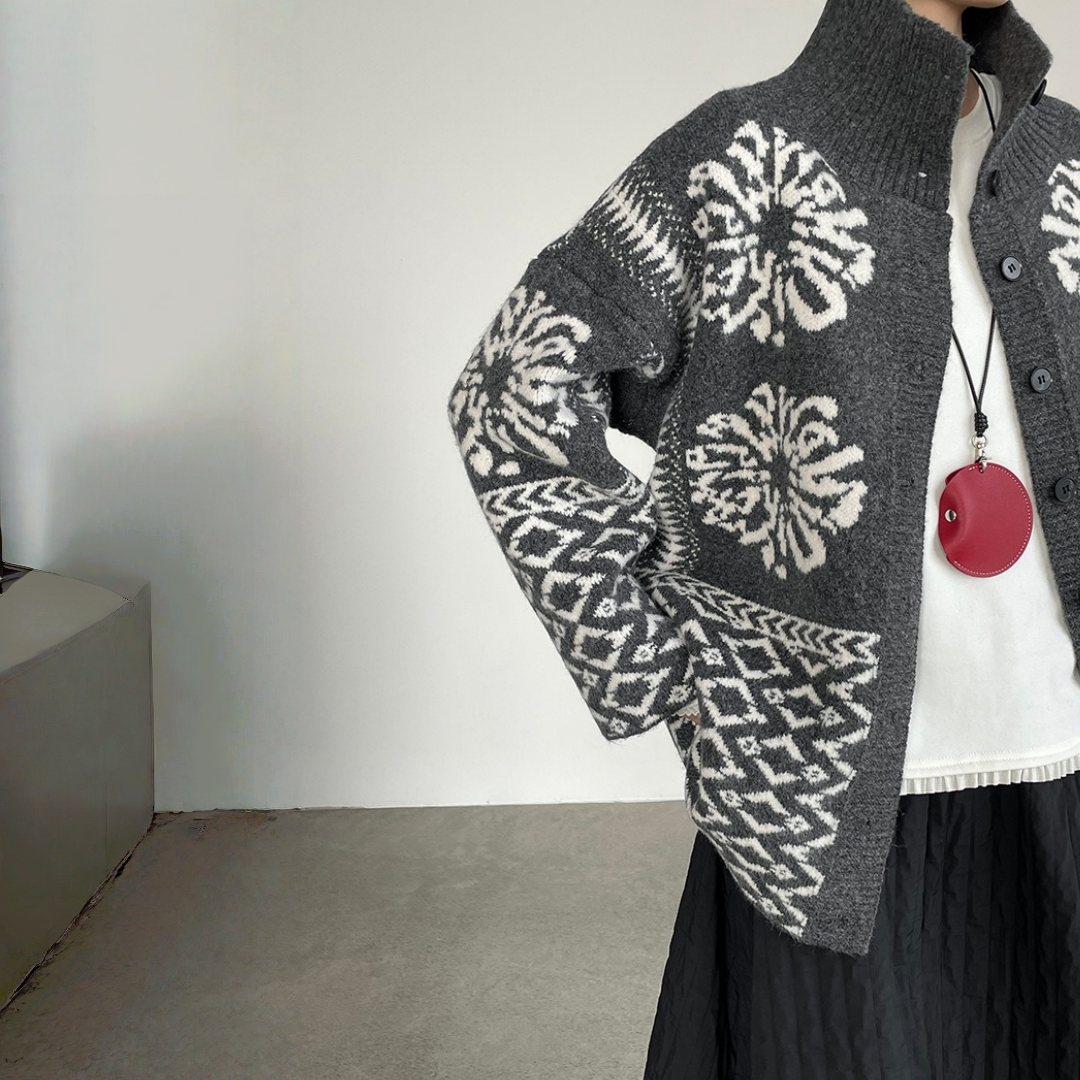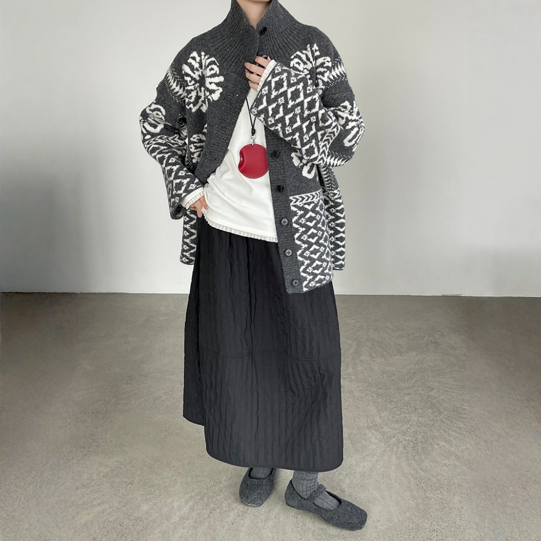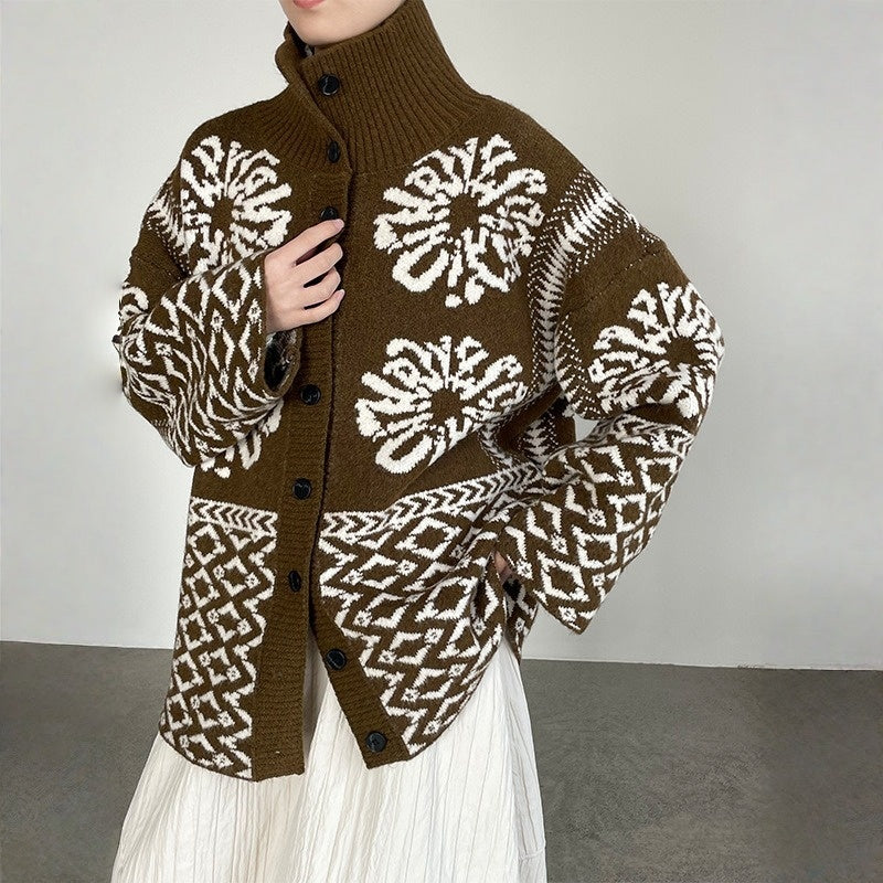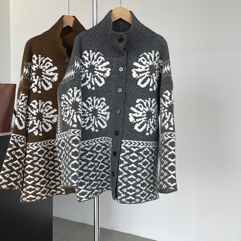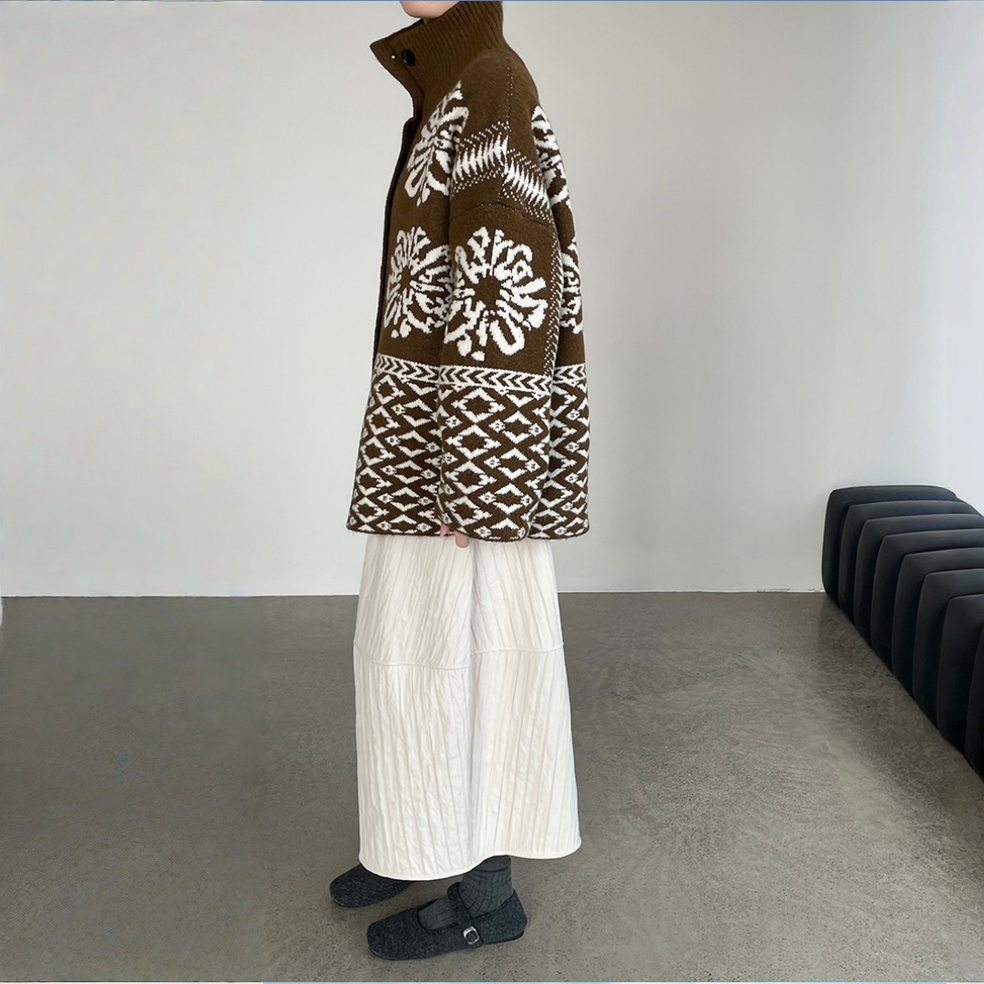 【トップス】折り襟 春 秋 冬 厚手 フェアアイル柄ニット セーター 【JZシリーズ】