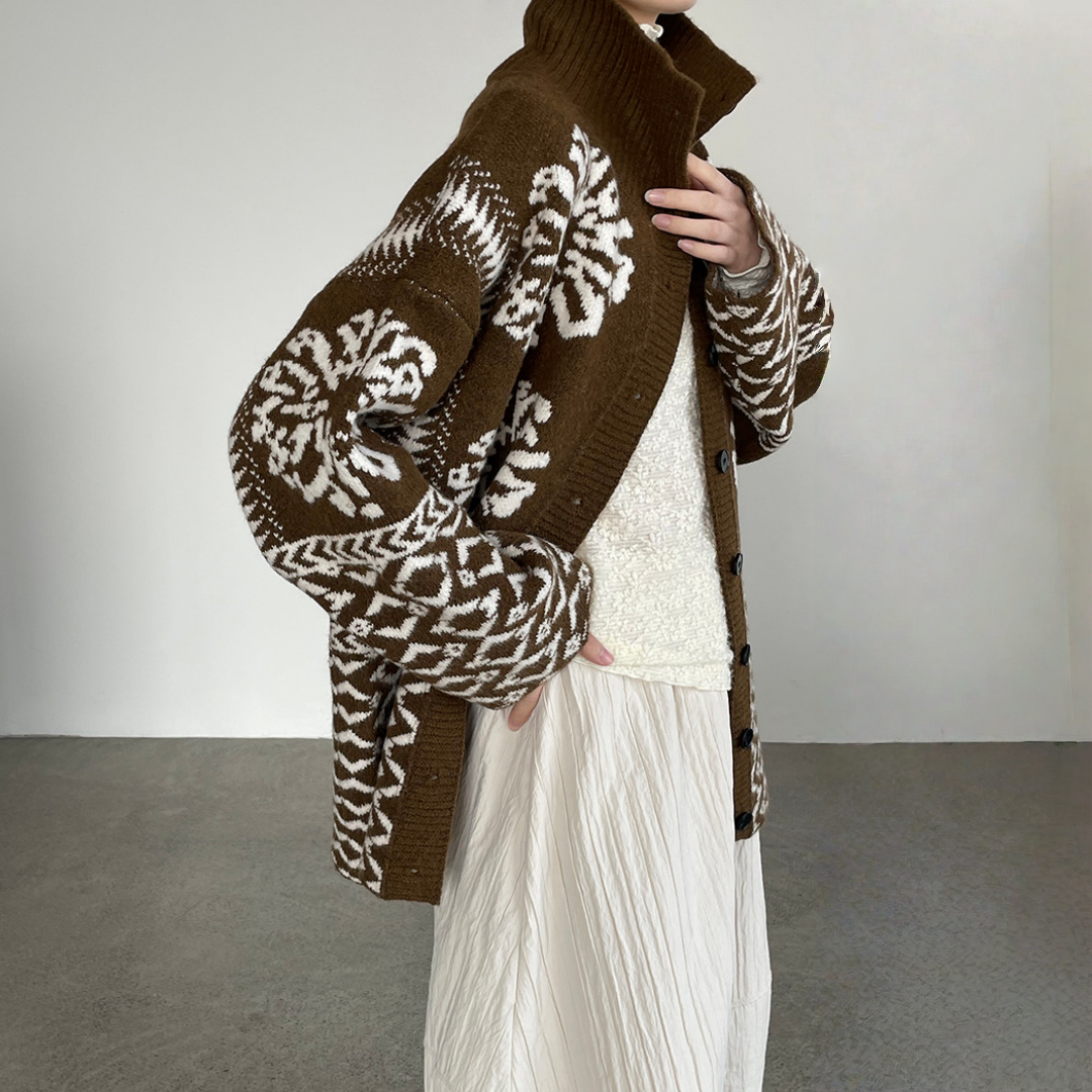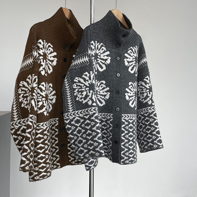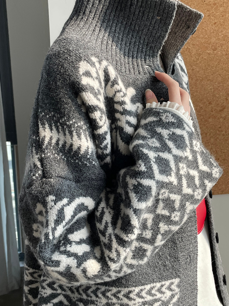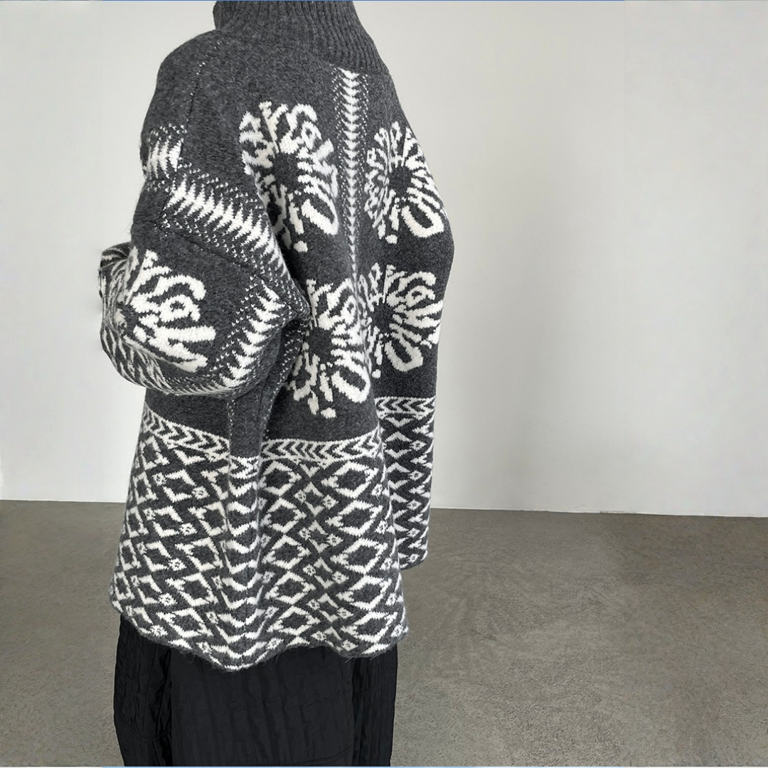 【商品名】【トップス】折り襟 春 秋 冬 厚手 フェアアイル柄ニット セーター 【JZシリーズ】