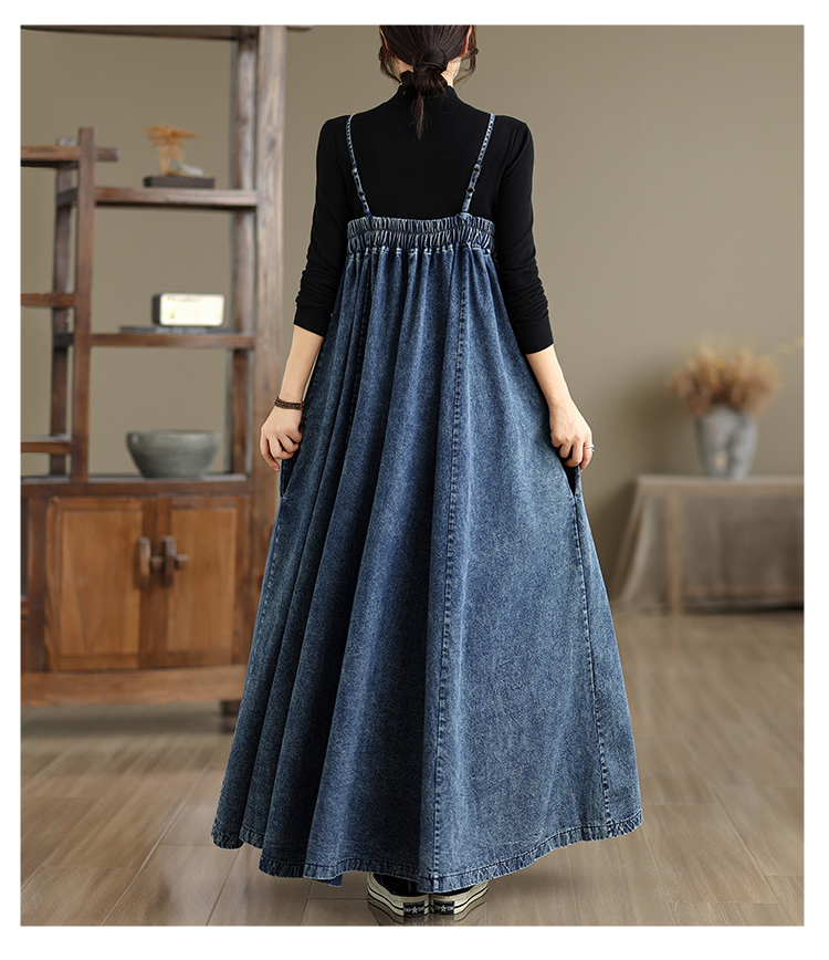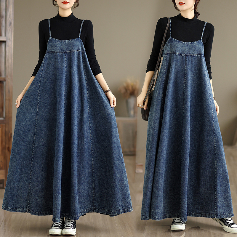 【ワンピース】レトロ 重ね着 春 秋 冬 大振裾 タンクトップ ワンピース 【SHシリーズ】