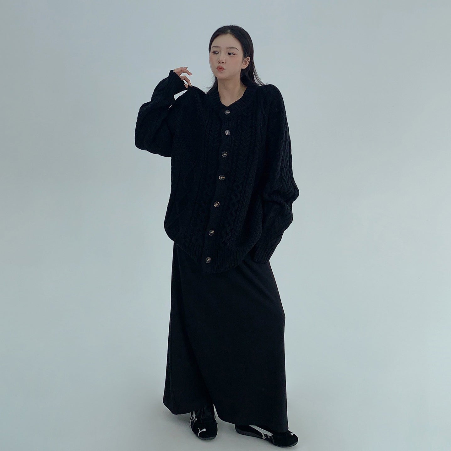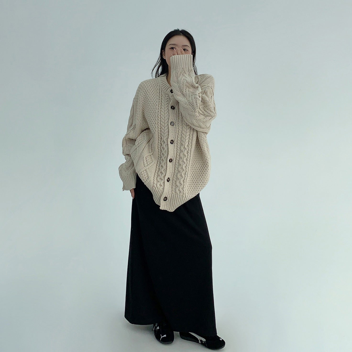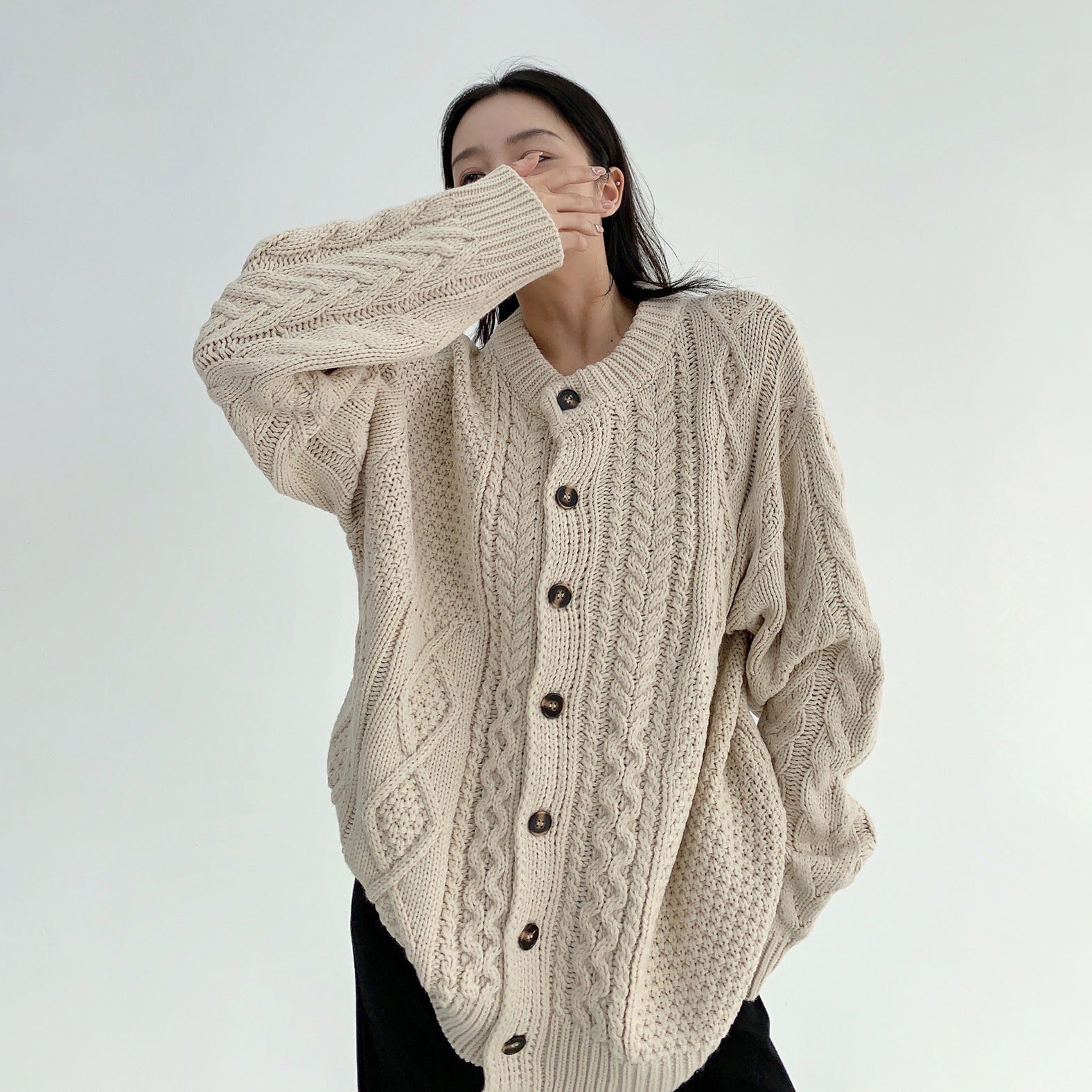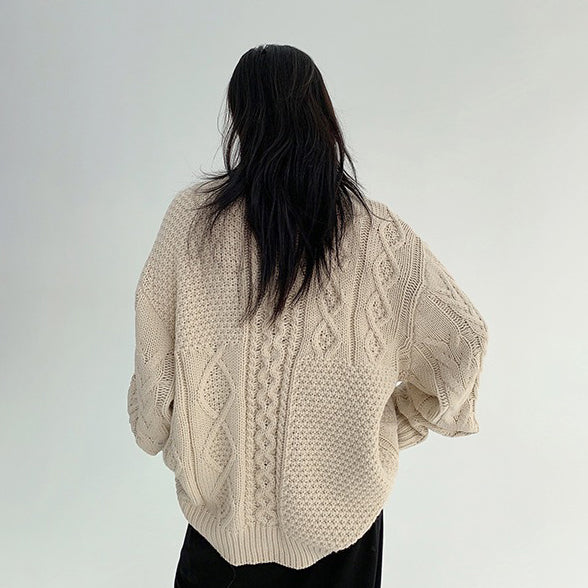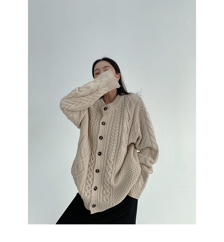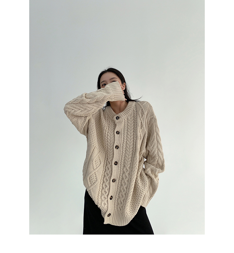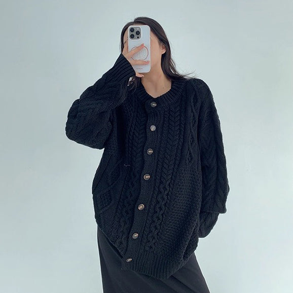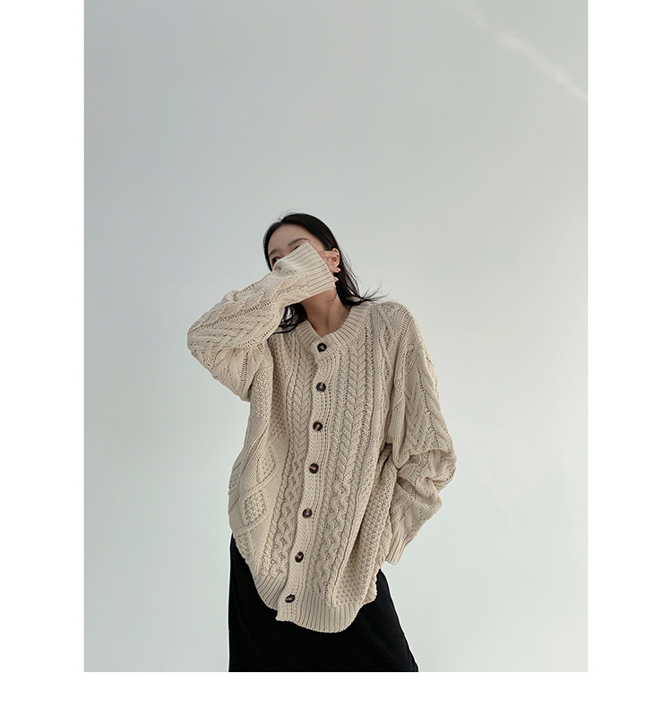 【トップス】ゆったり落ち感 厚手ケーブル編み ニットカーディガン【FCシリーズ】