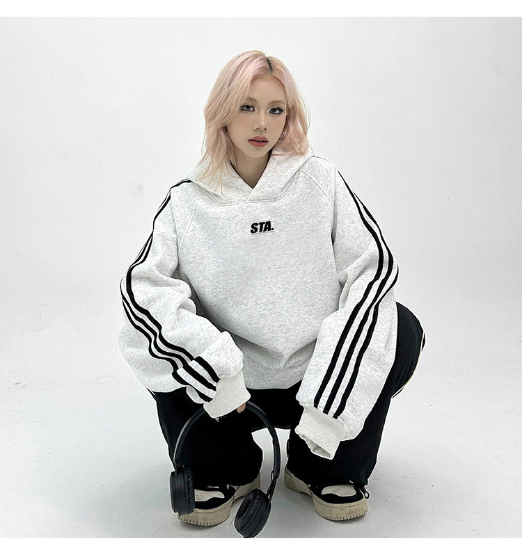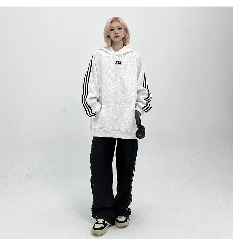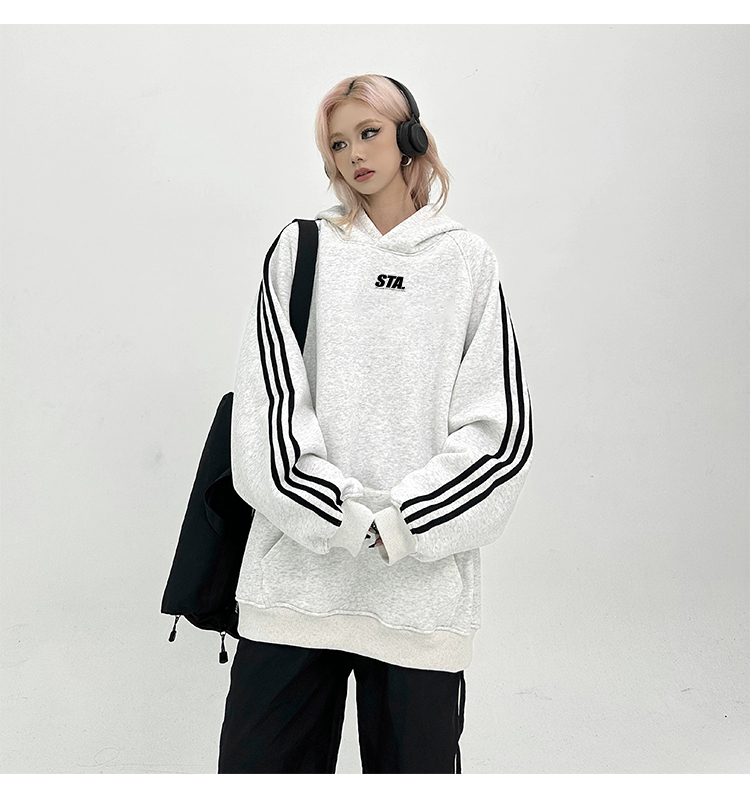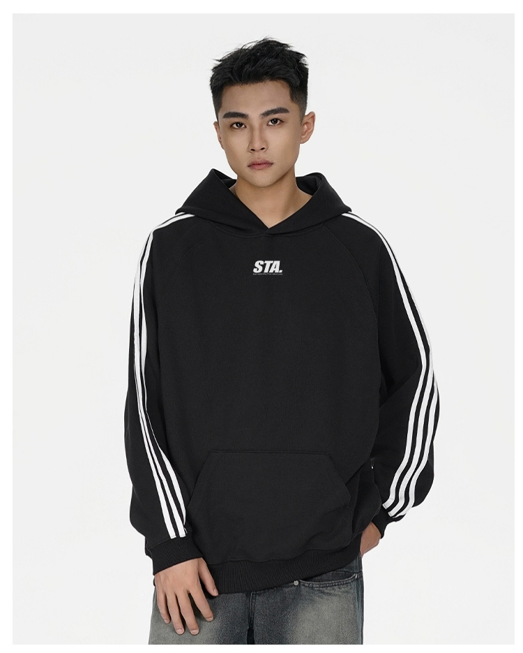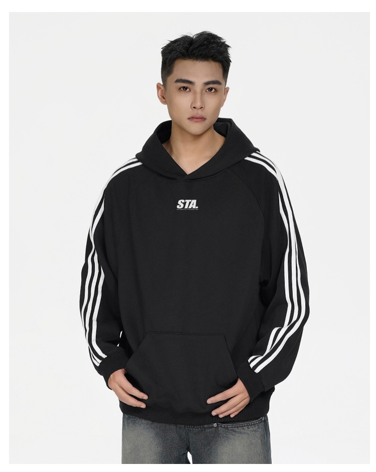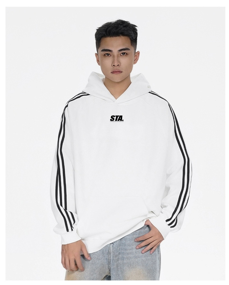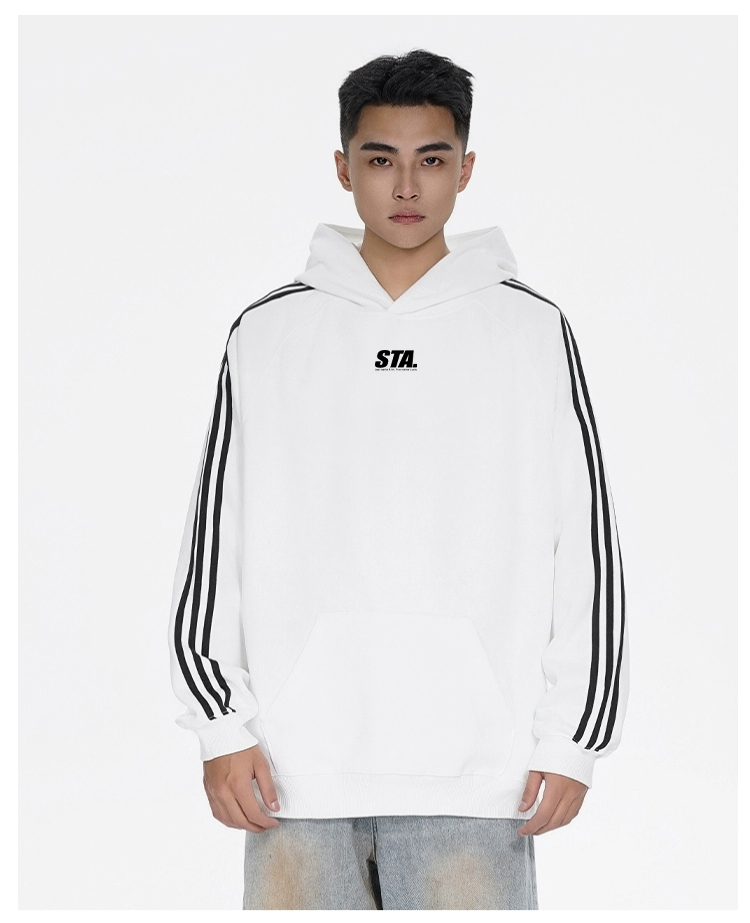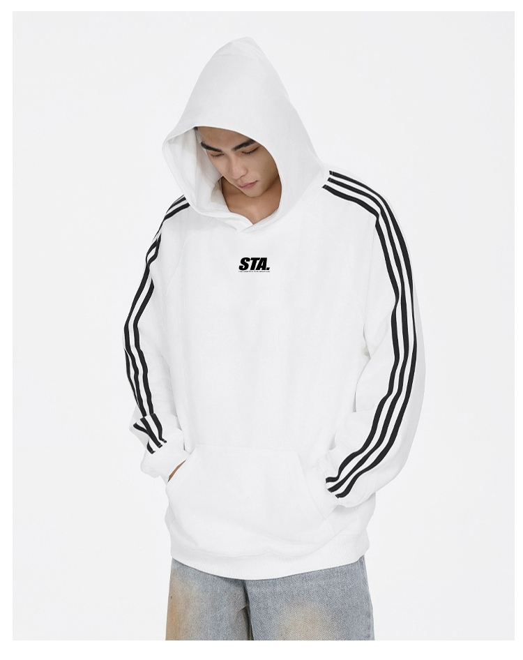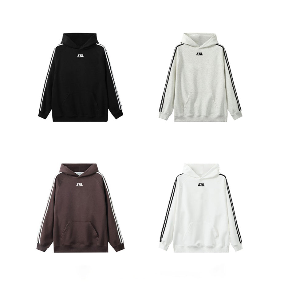 【商品名】【トップス】3ストライプ フード付きスウェット ユニセックス ゆったり ストリートスポーツ パーカー【FCシリーズ】