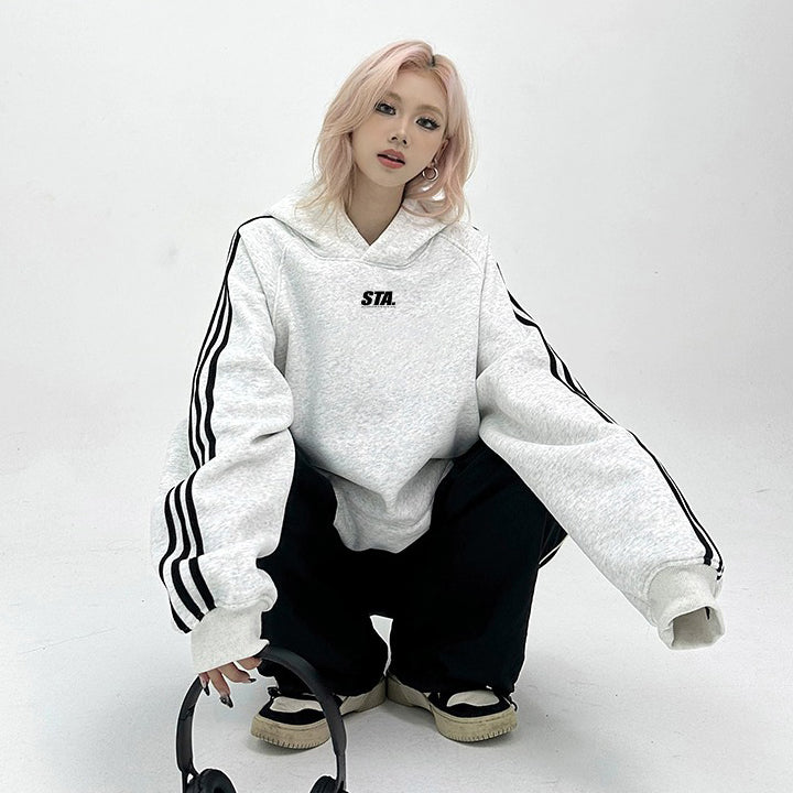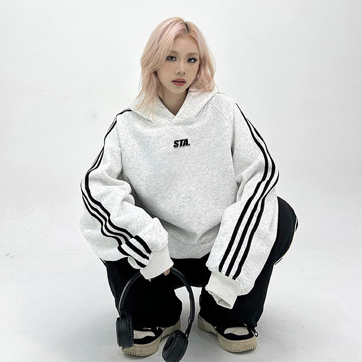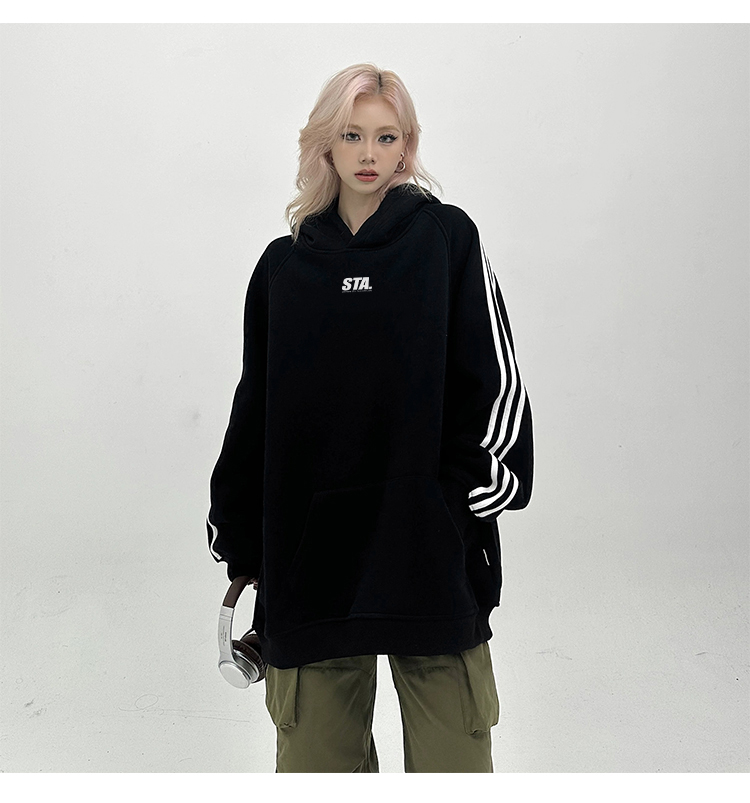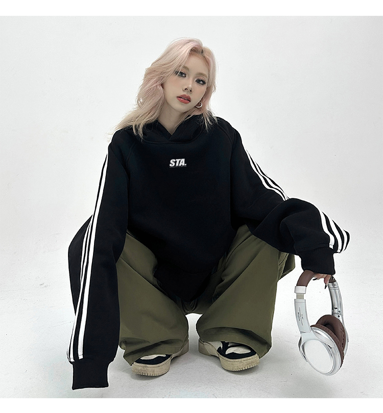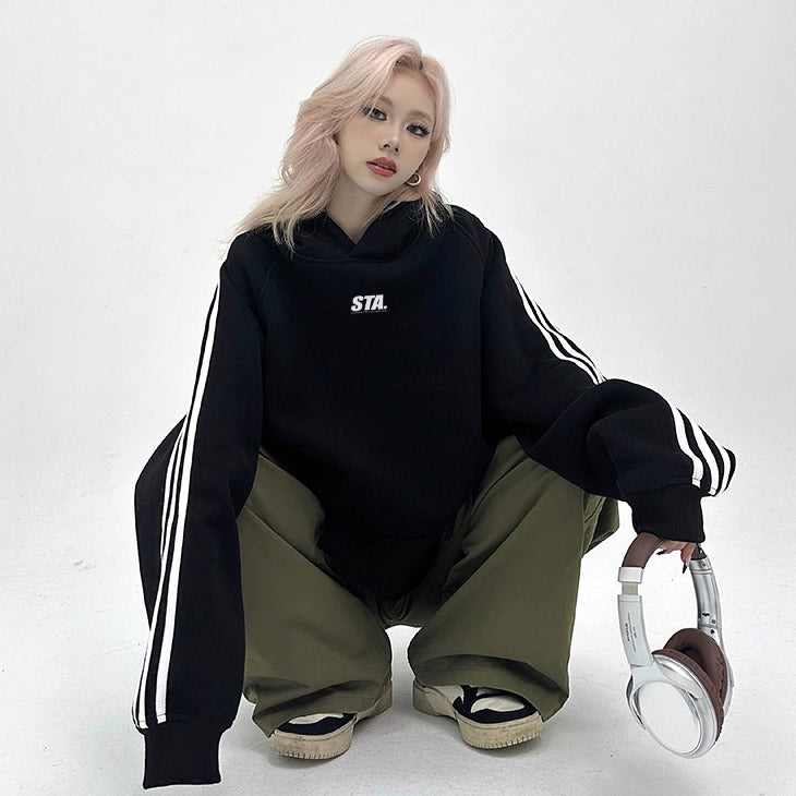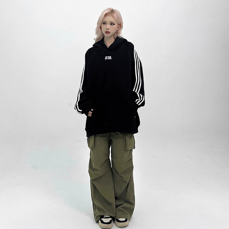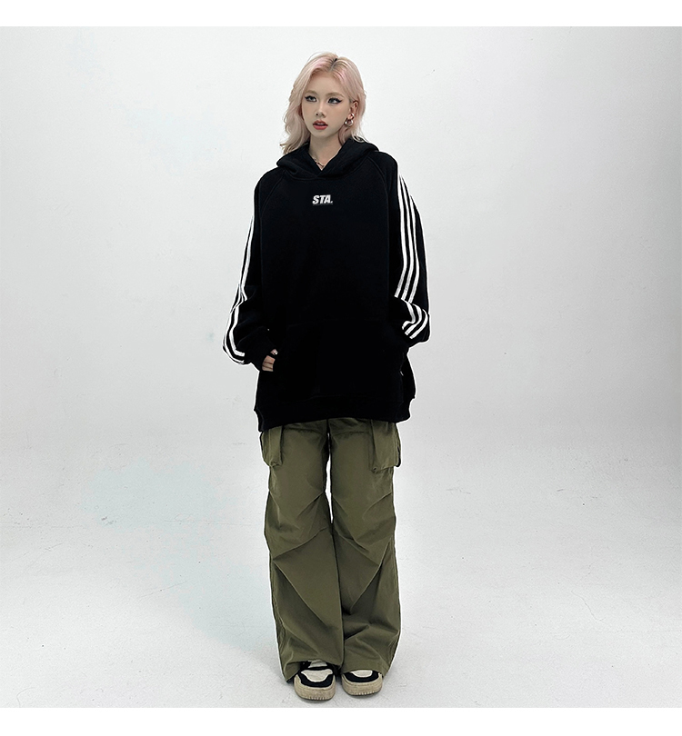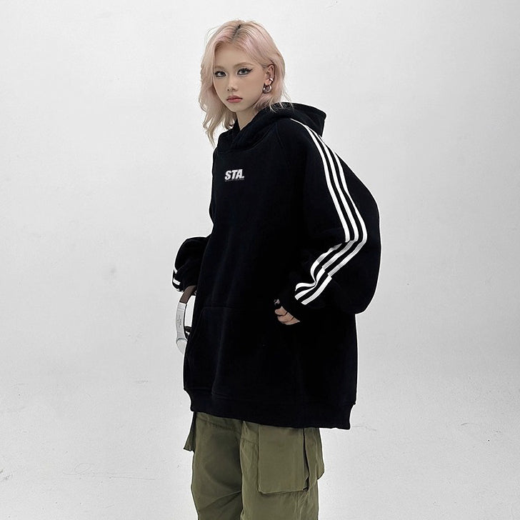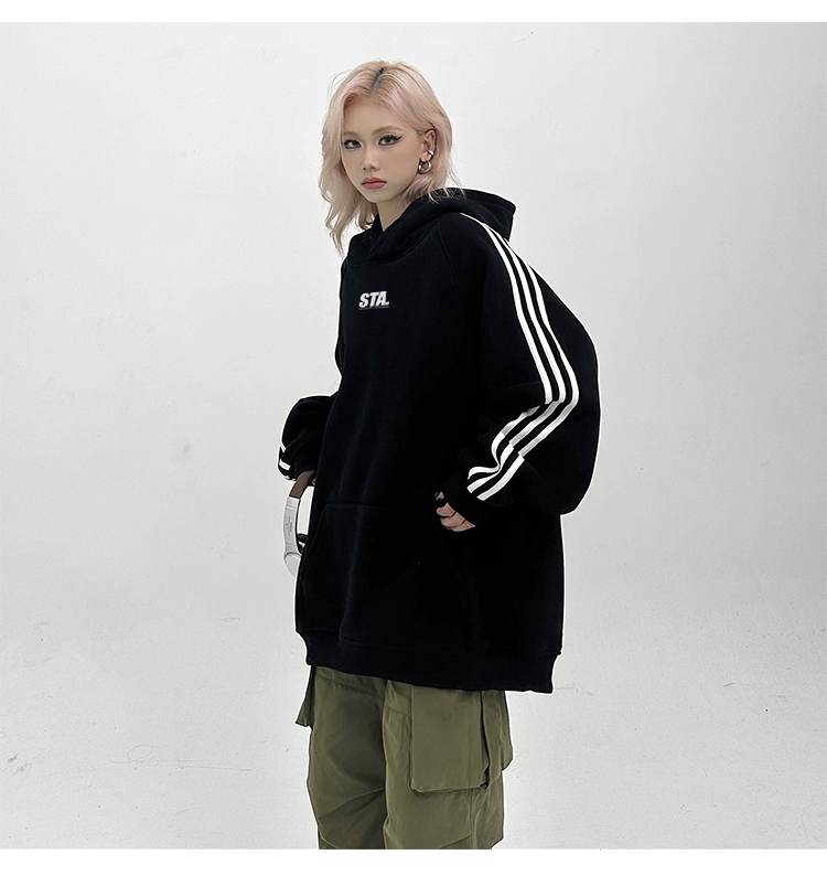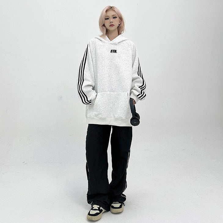 【商品名】【トップス】3ストライプ フード付きスウェット ユニセックス ゆったり ストリートスポーツ パーカー【FCシリーズ】