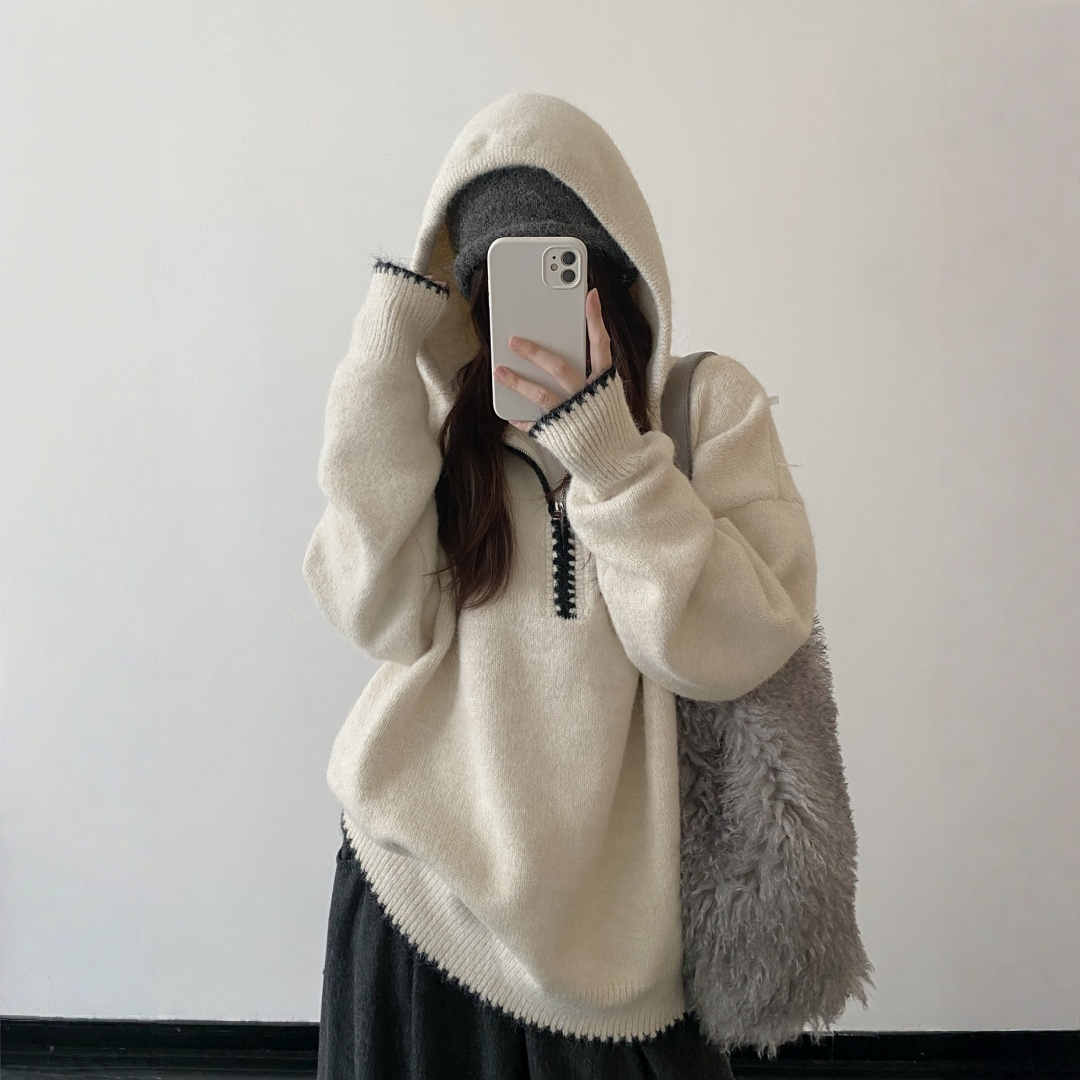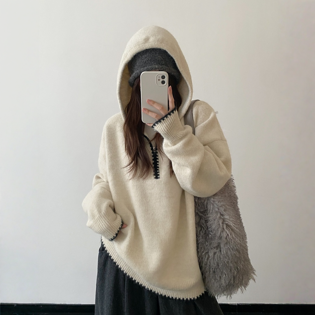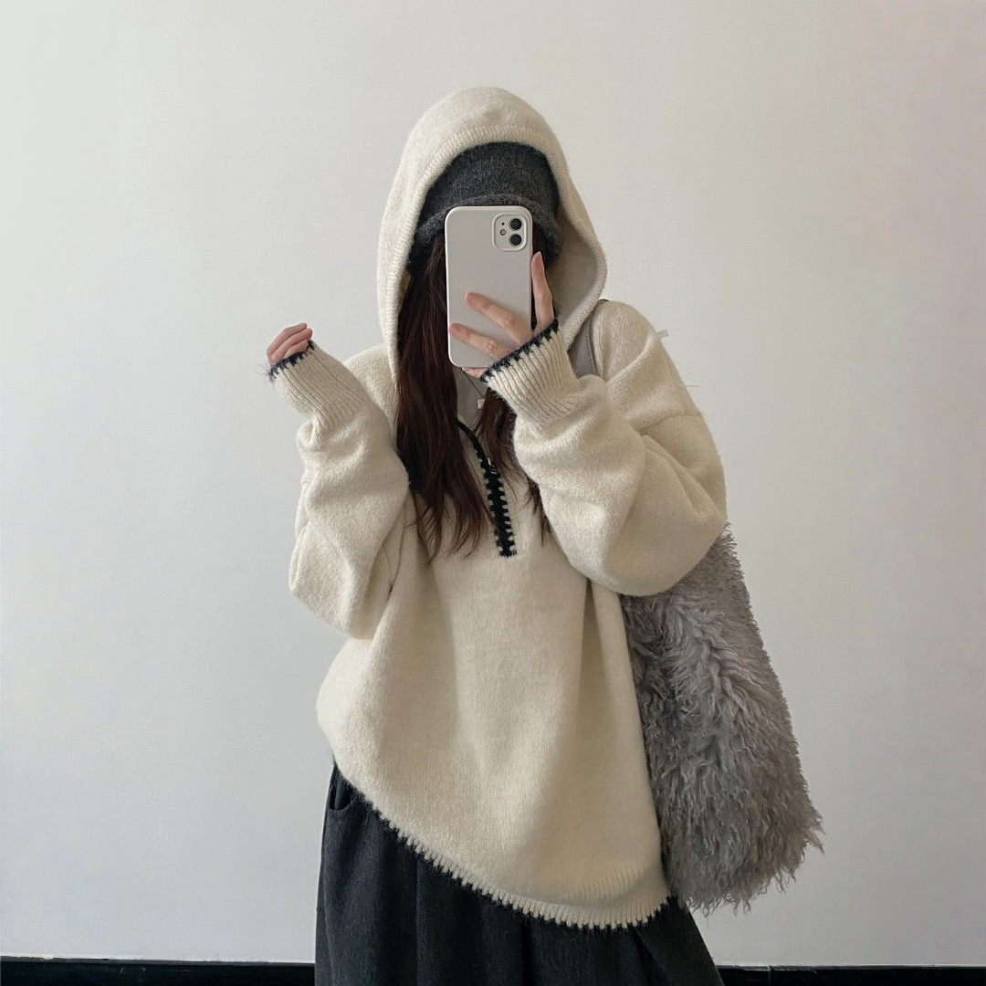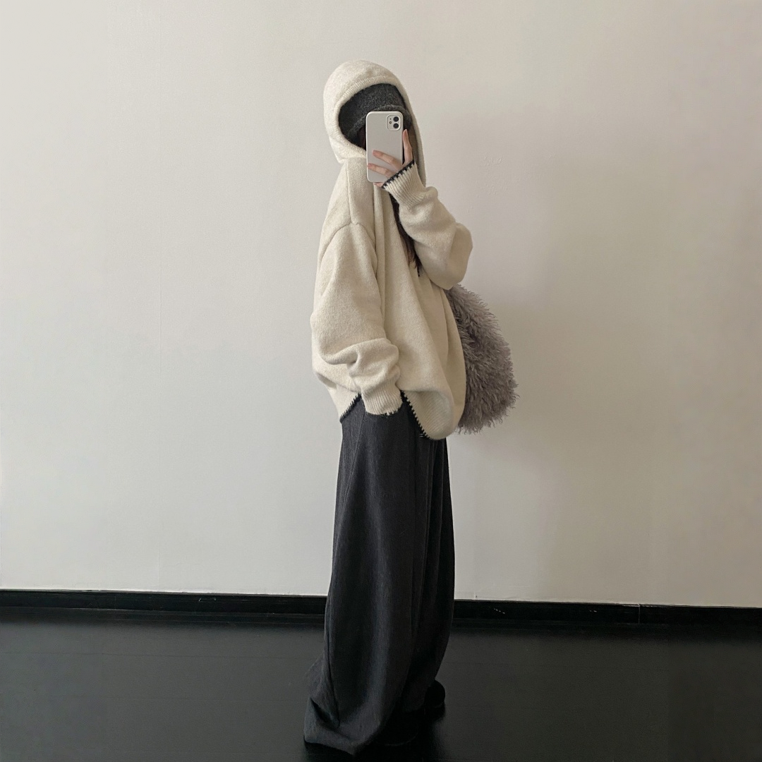 【トップス】ルーズ感 春 秋 冬 フード付き ニット セーター 【FCシリーズ】