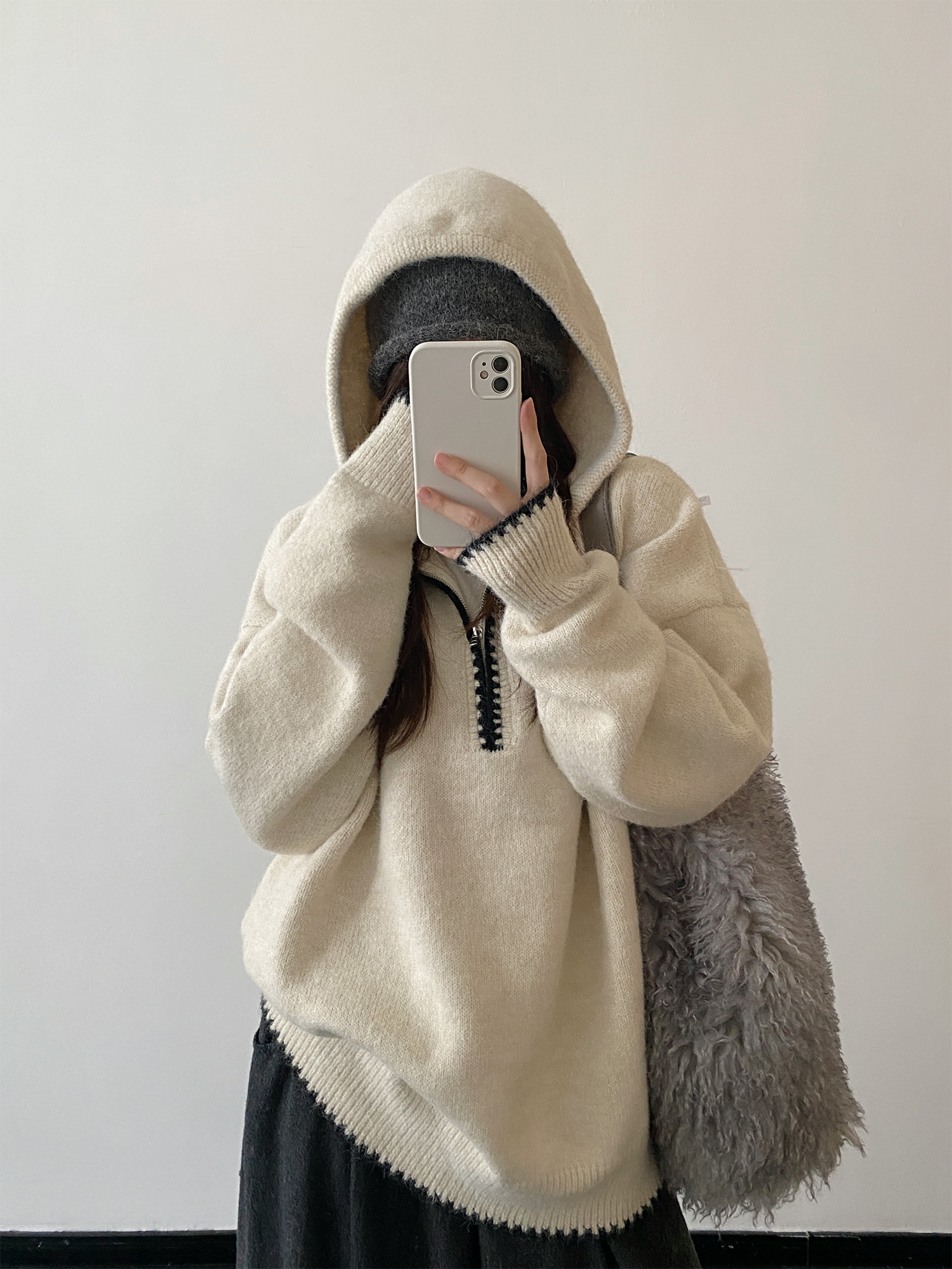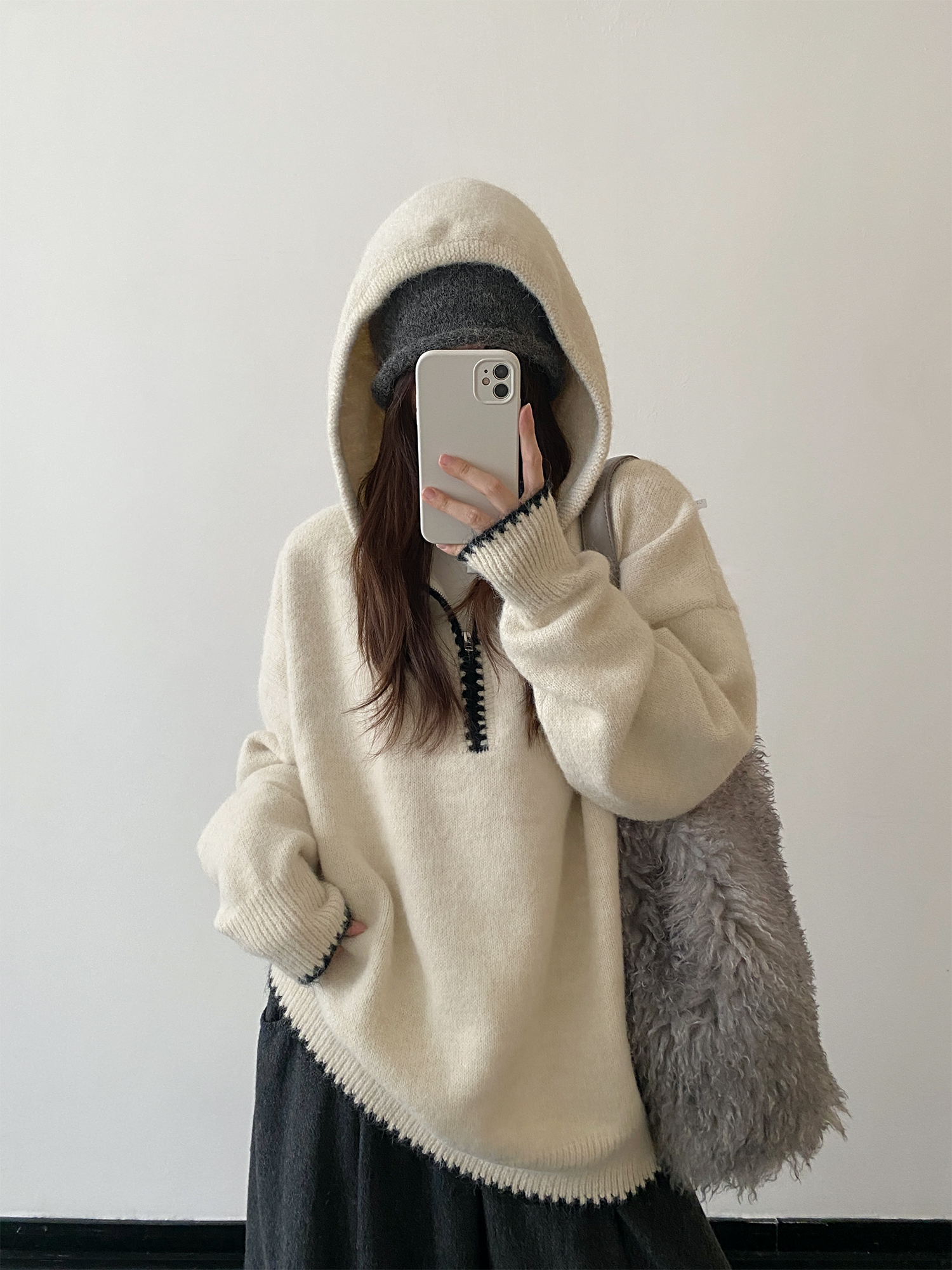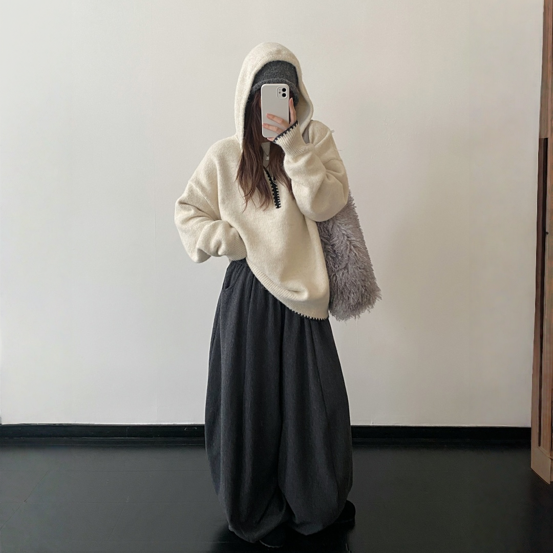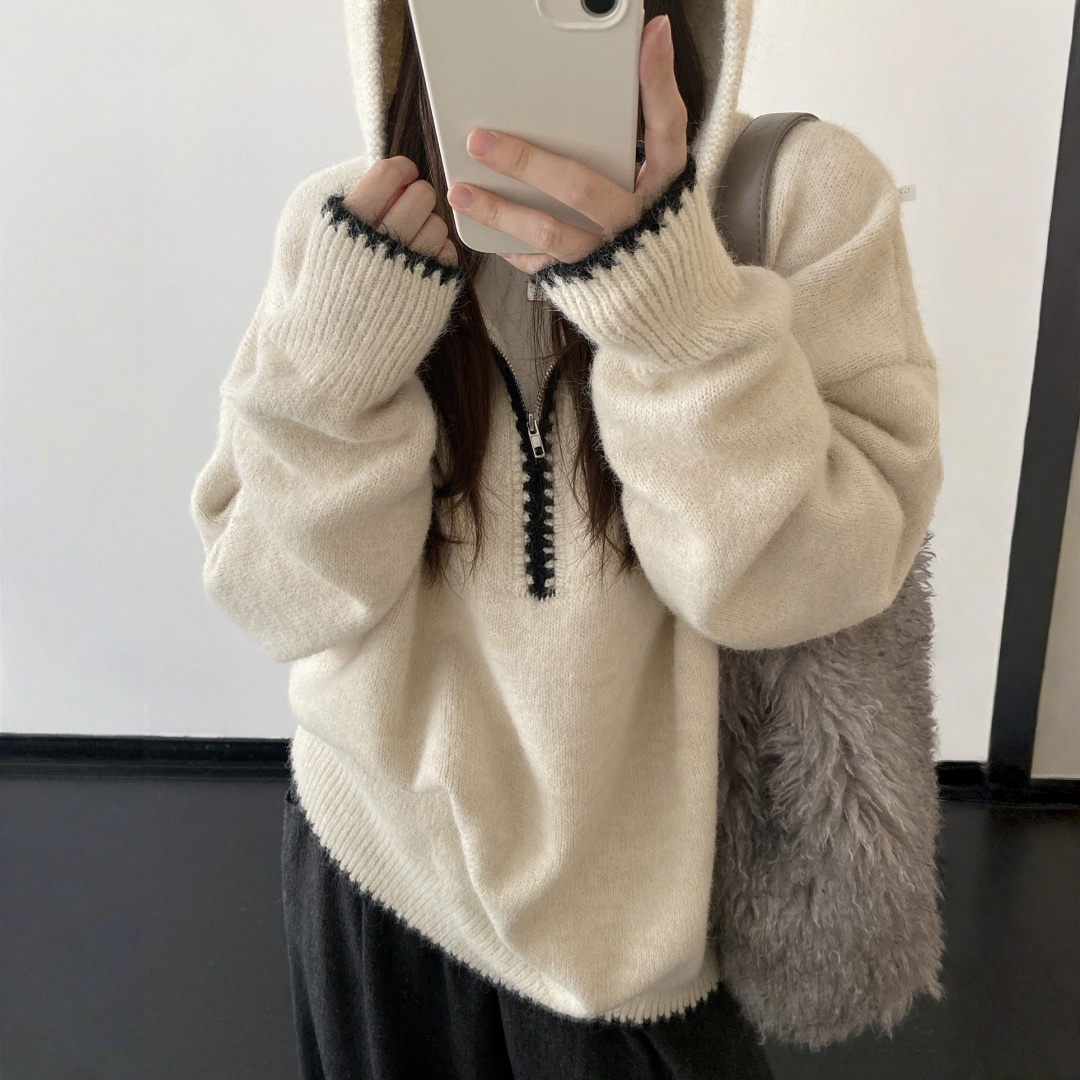 【トップス】ルーズ感 春 秋 冬 フード付き ニット セーター 【FCシリーズ】