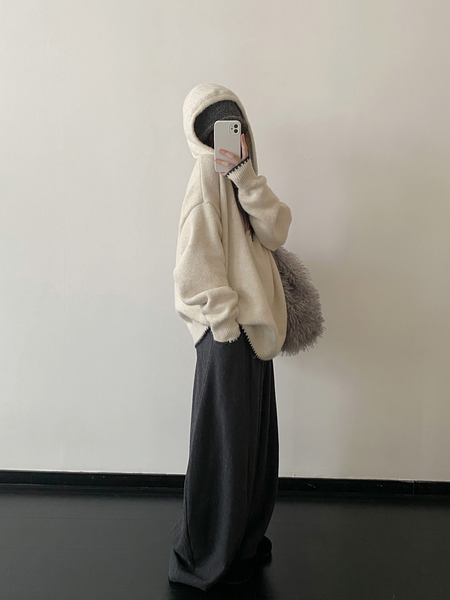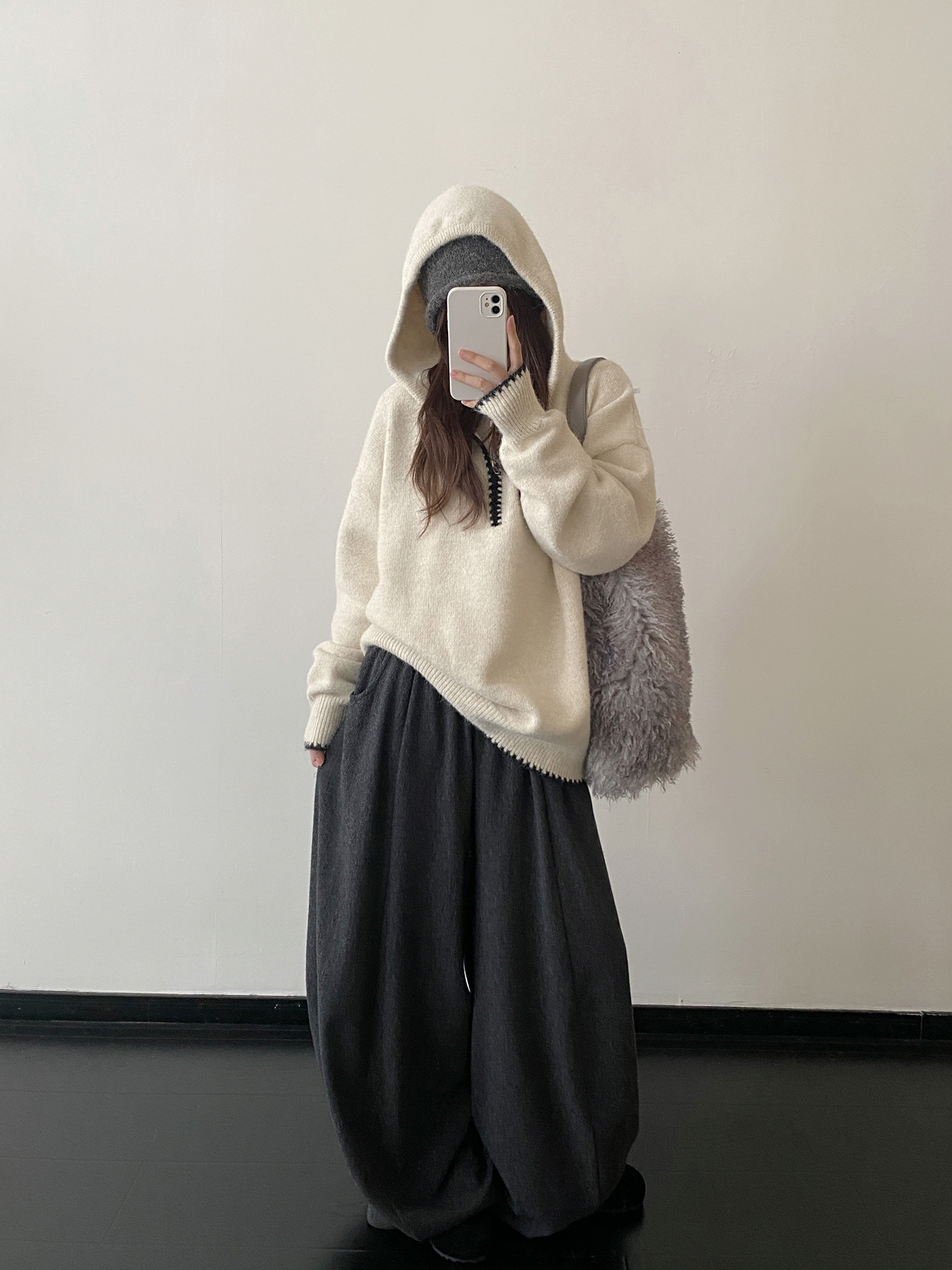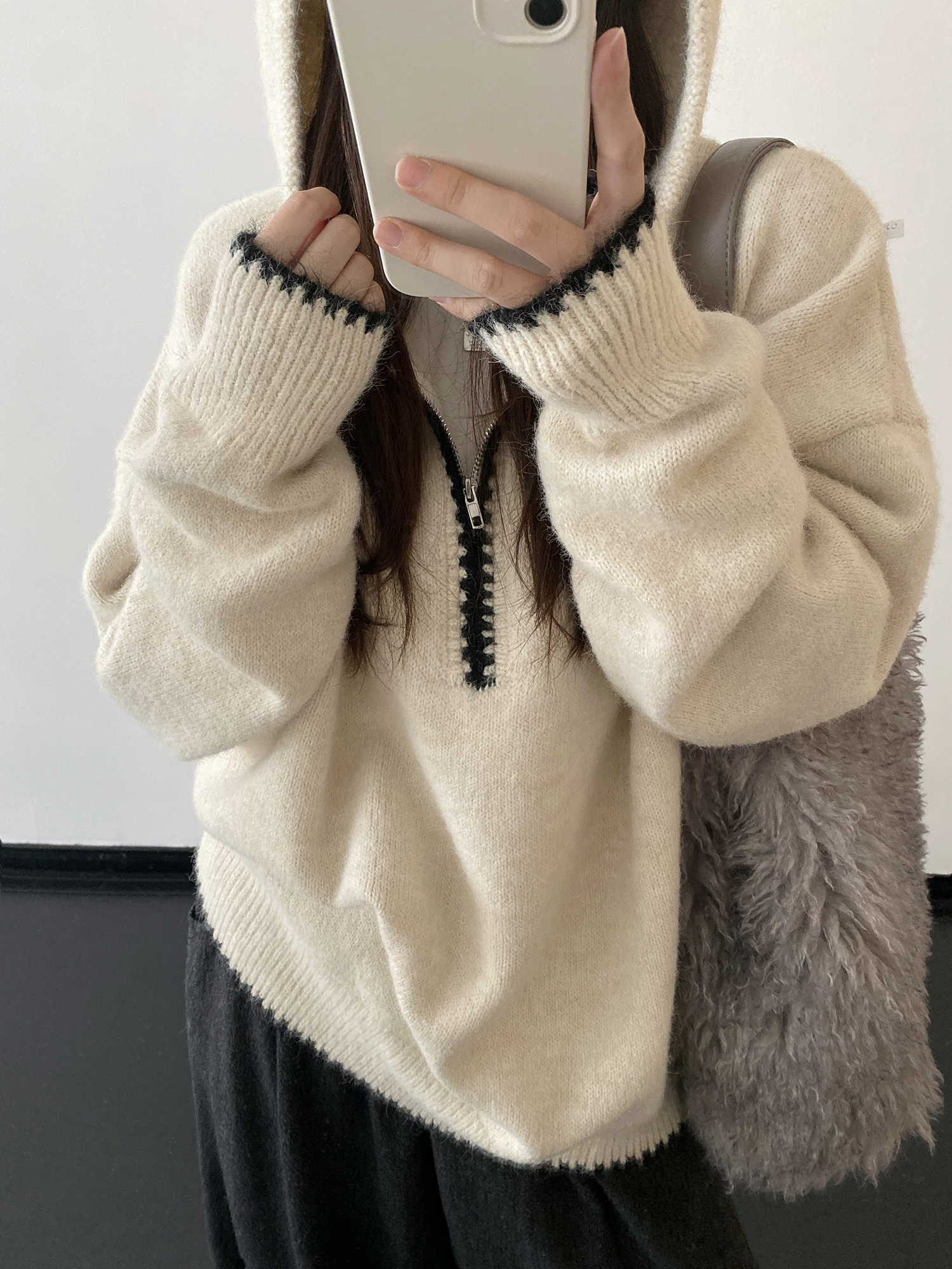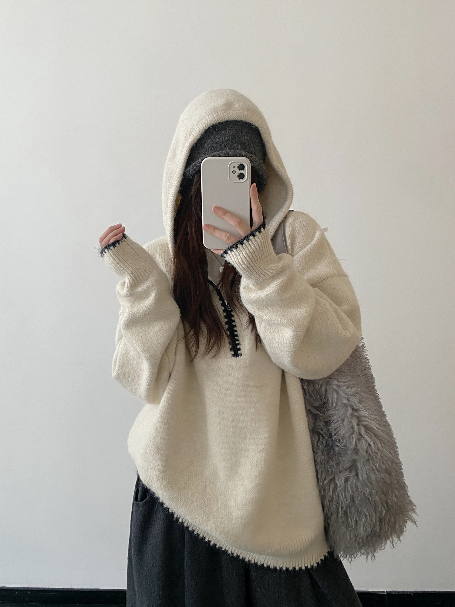 【トップス】ルーズ感 春 秋 冬 フード付き ニット セーター 【FCシリーズ】