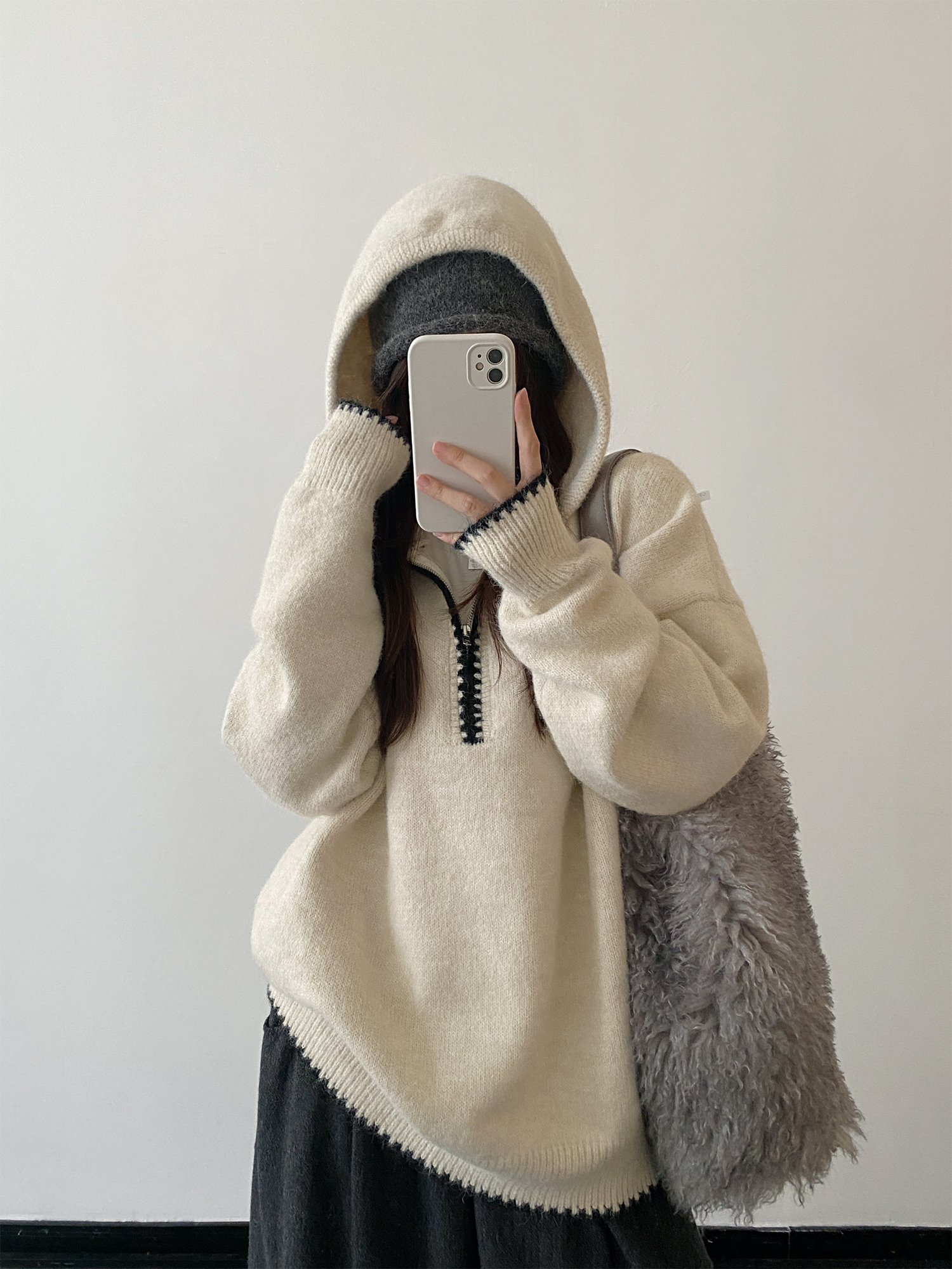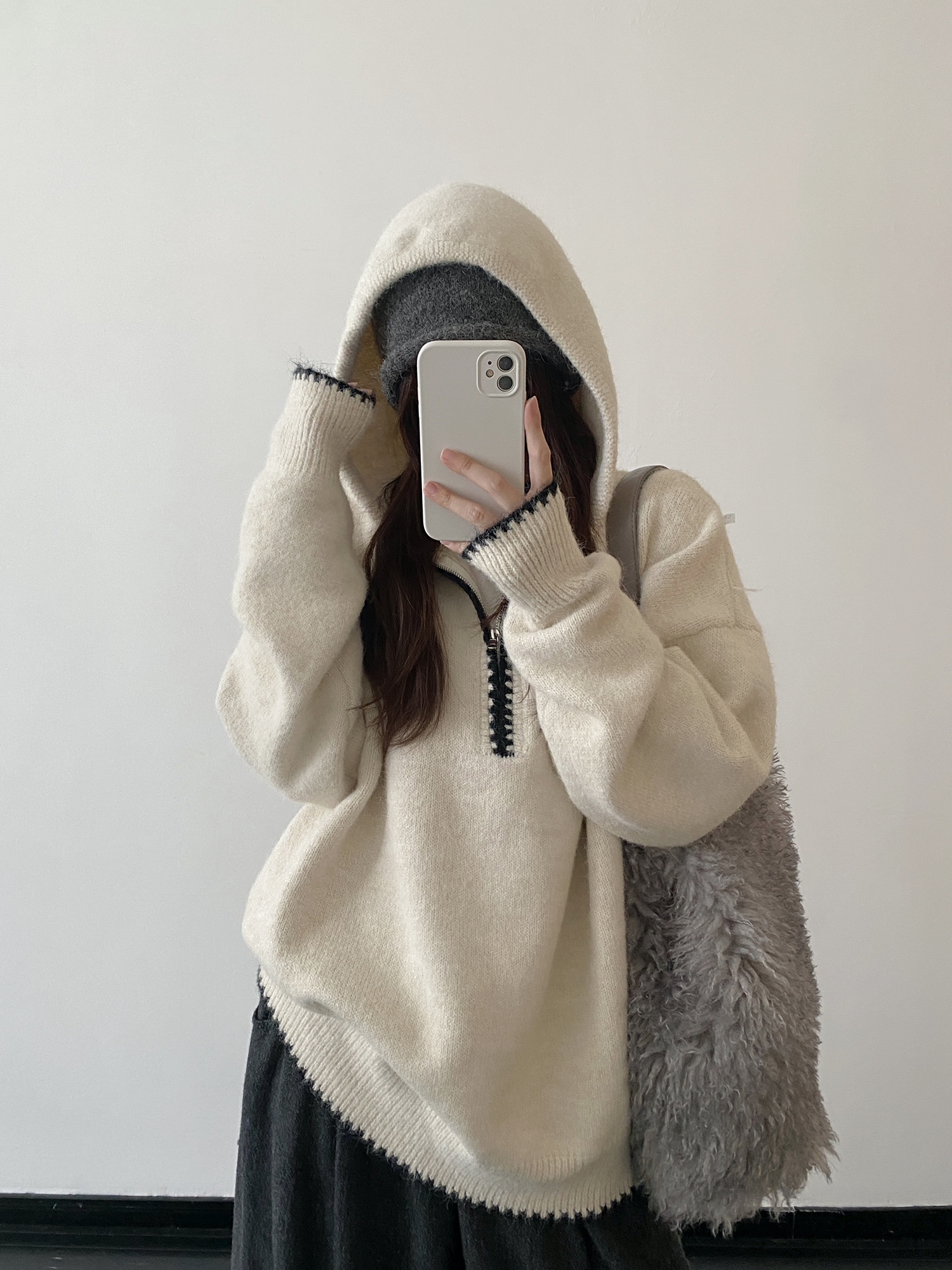 【商品名】【トップス】ルーズ感 春 秋 冬 フード付き ニット セーター 【FCシリーズ】