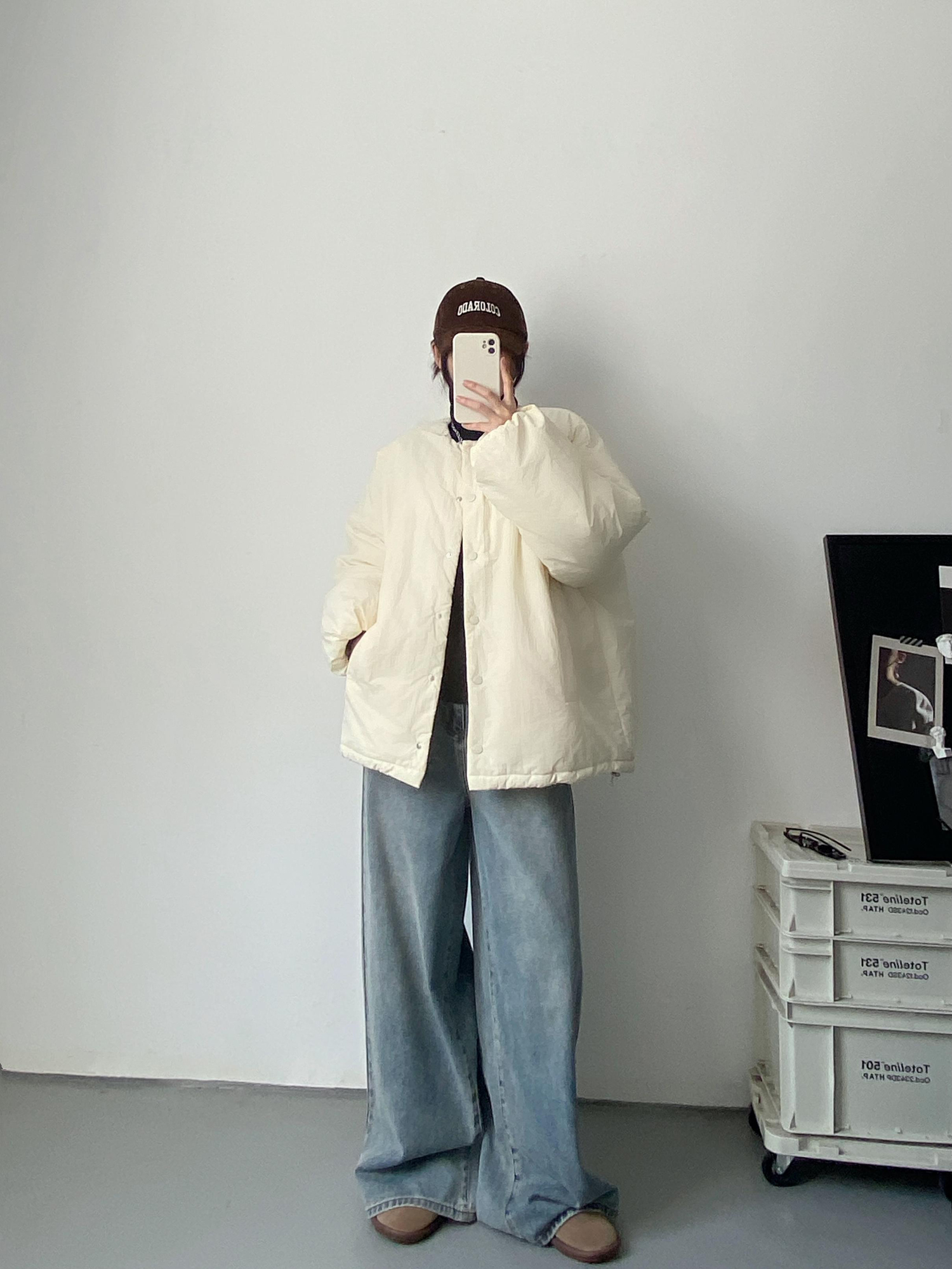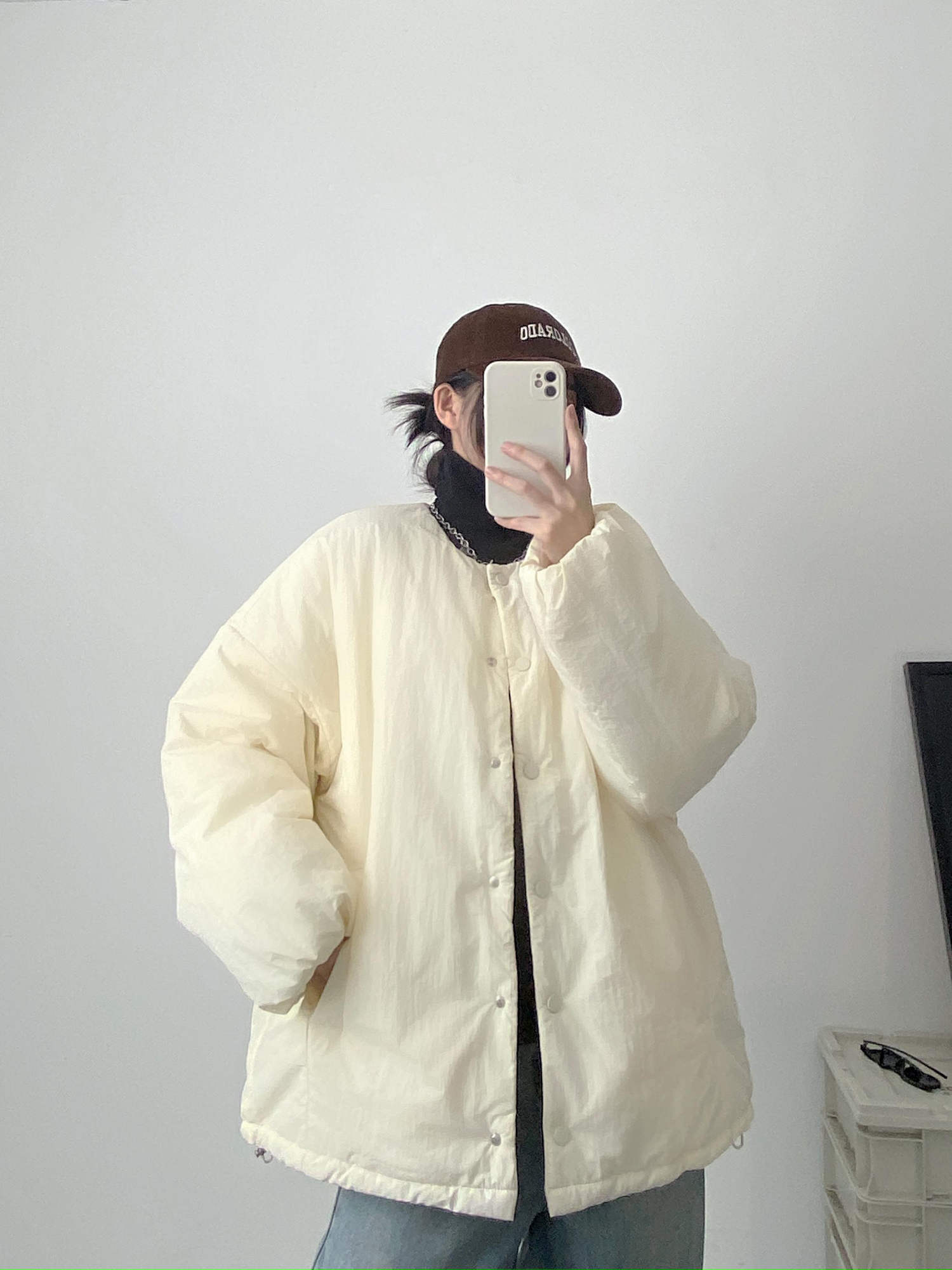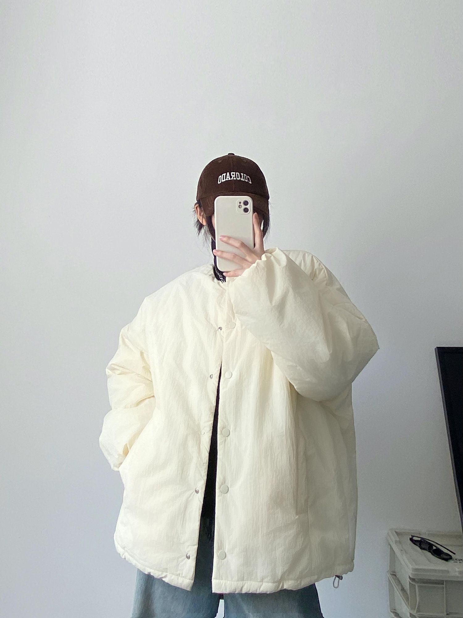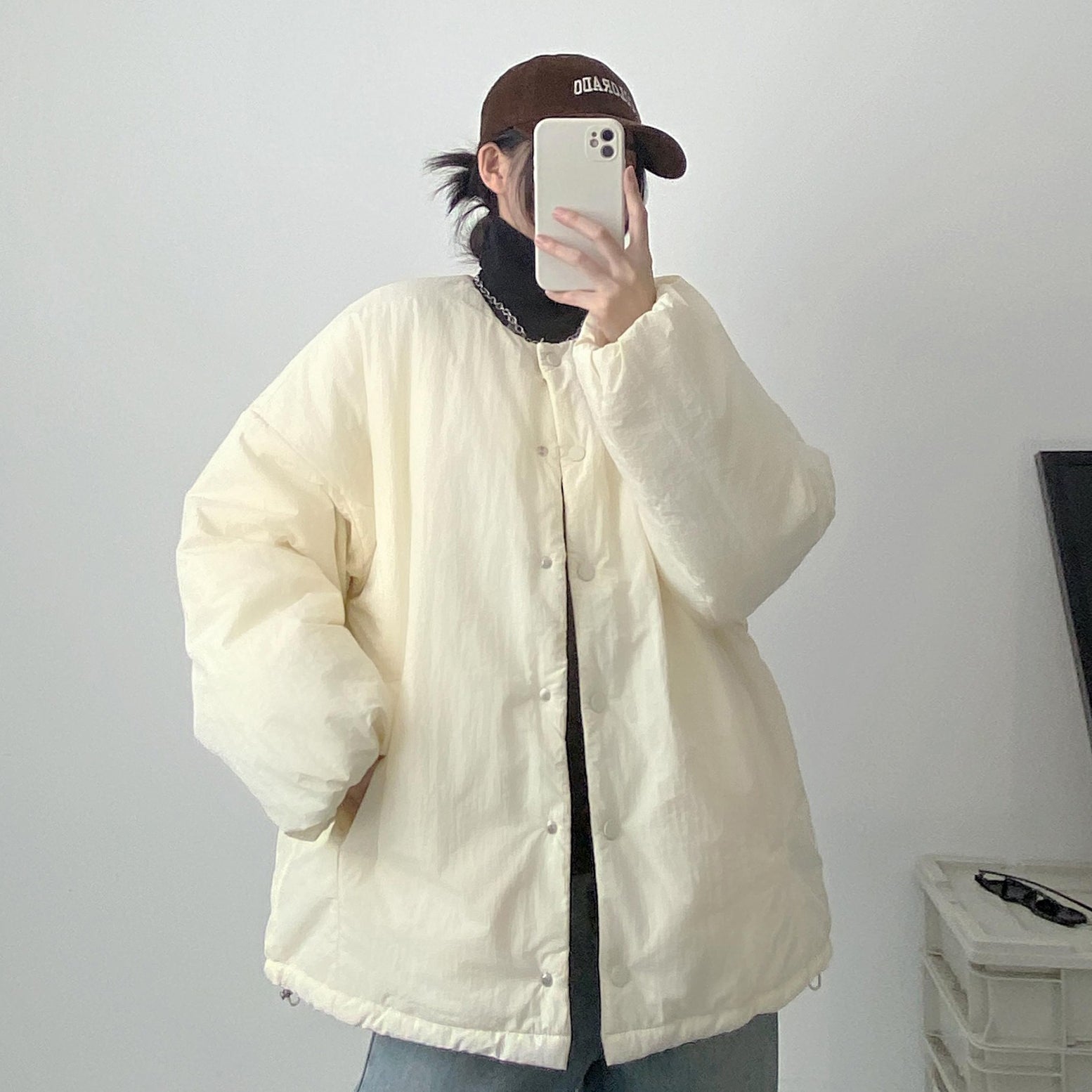 【商品名】【アウター】 秋冬 ゆったり あったか 綿入れコート 丸首 中綿ジャケット【FCシリーズ】