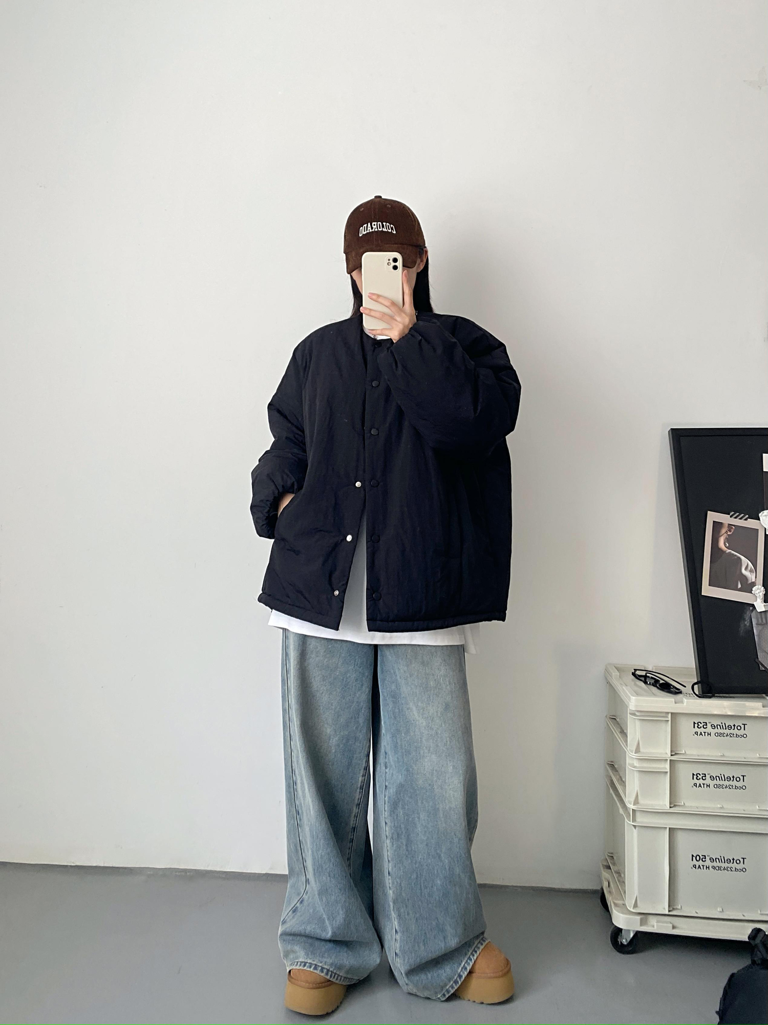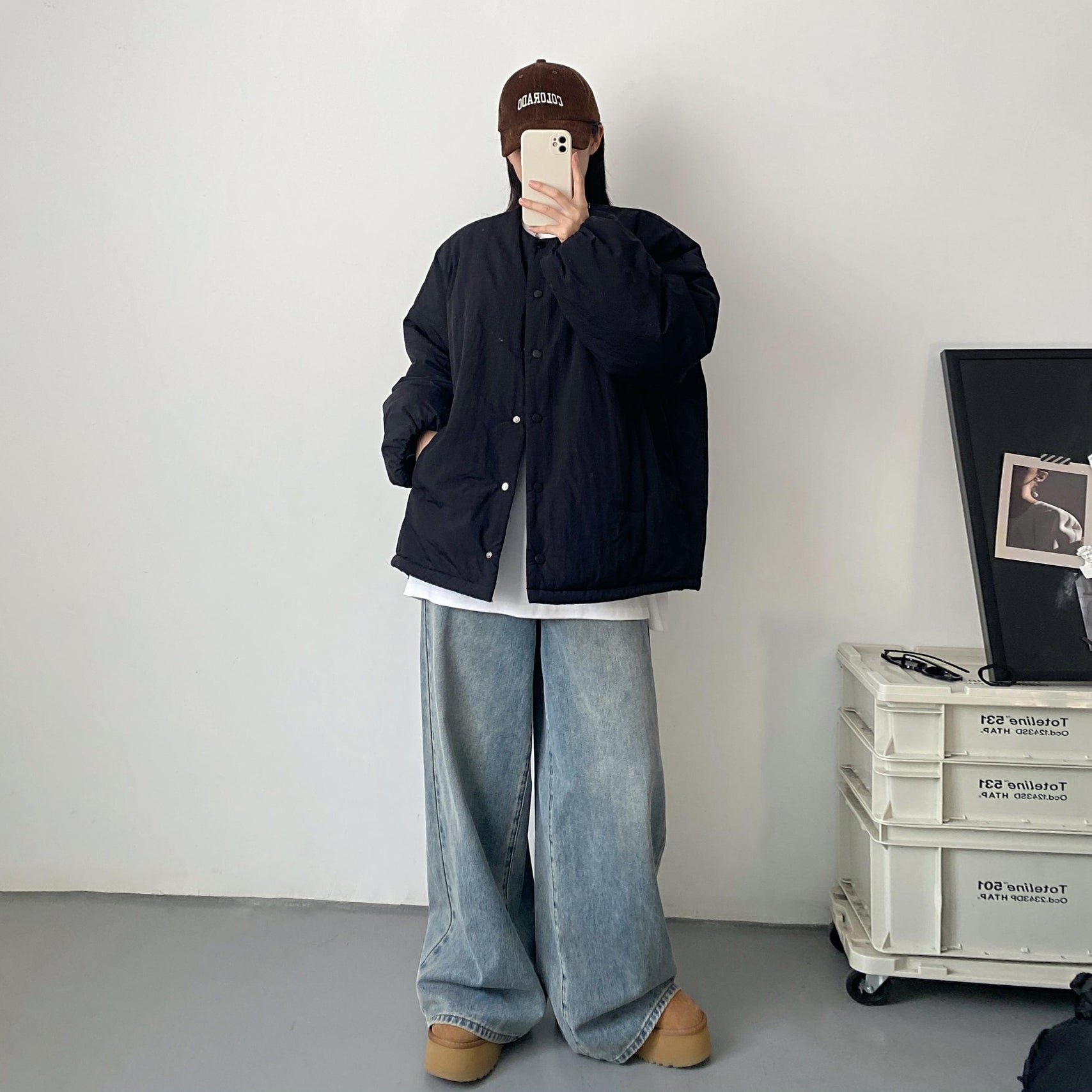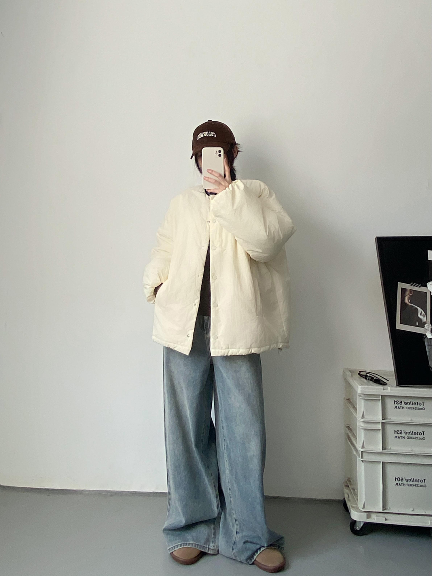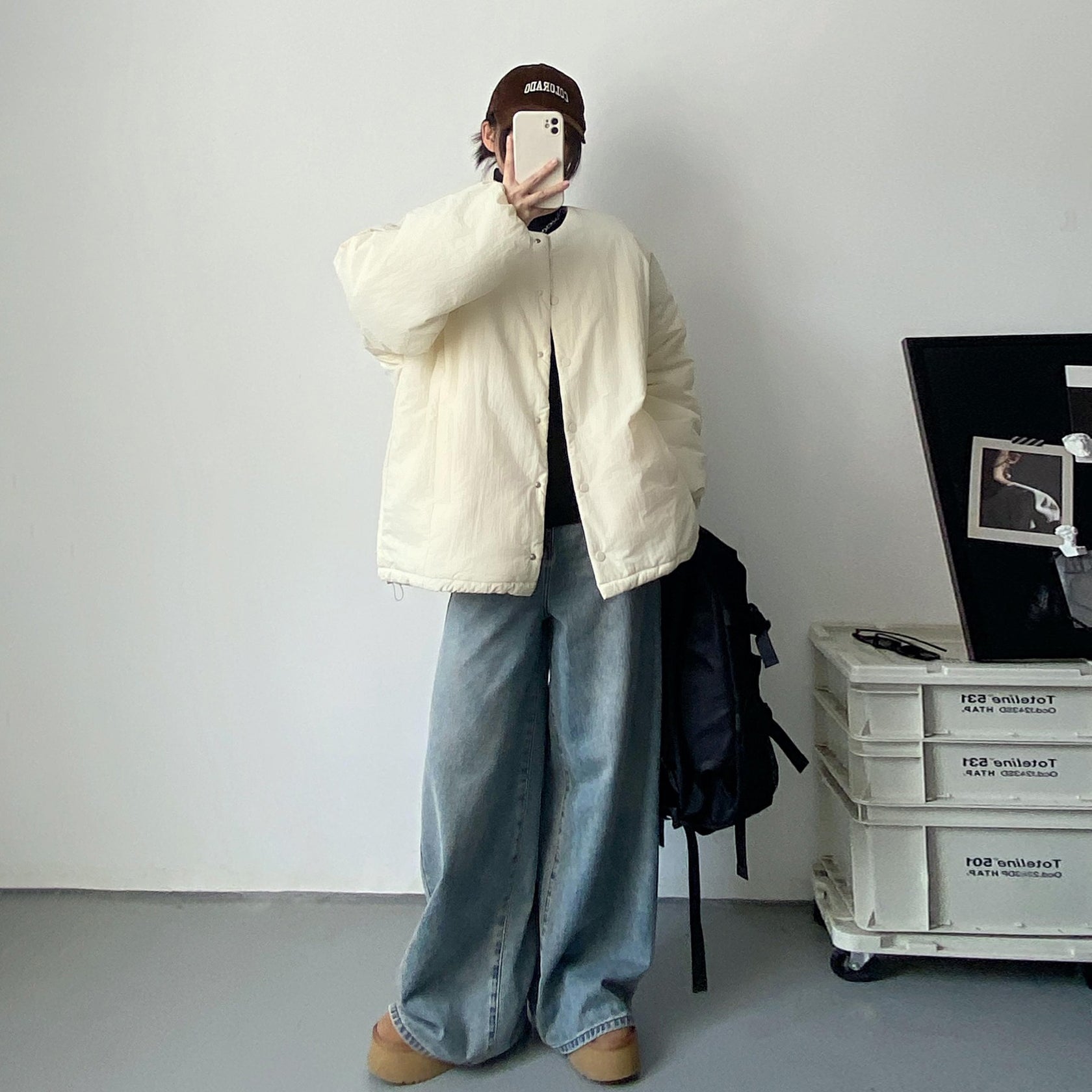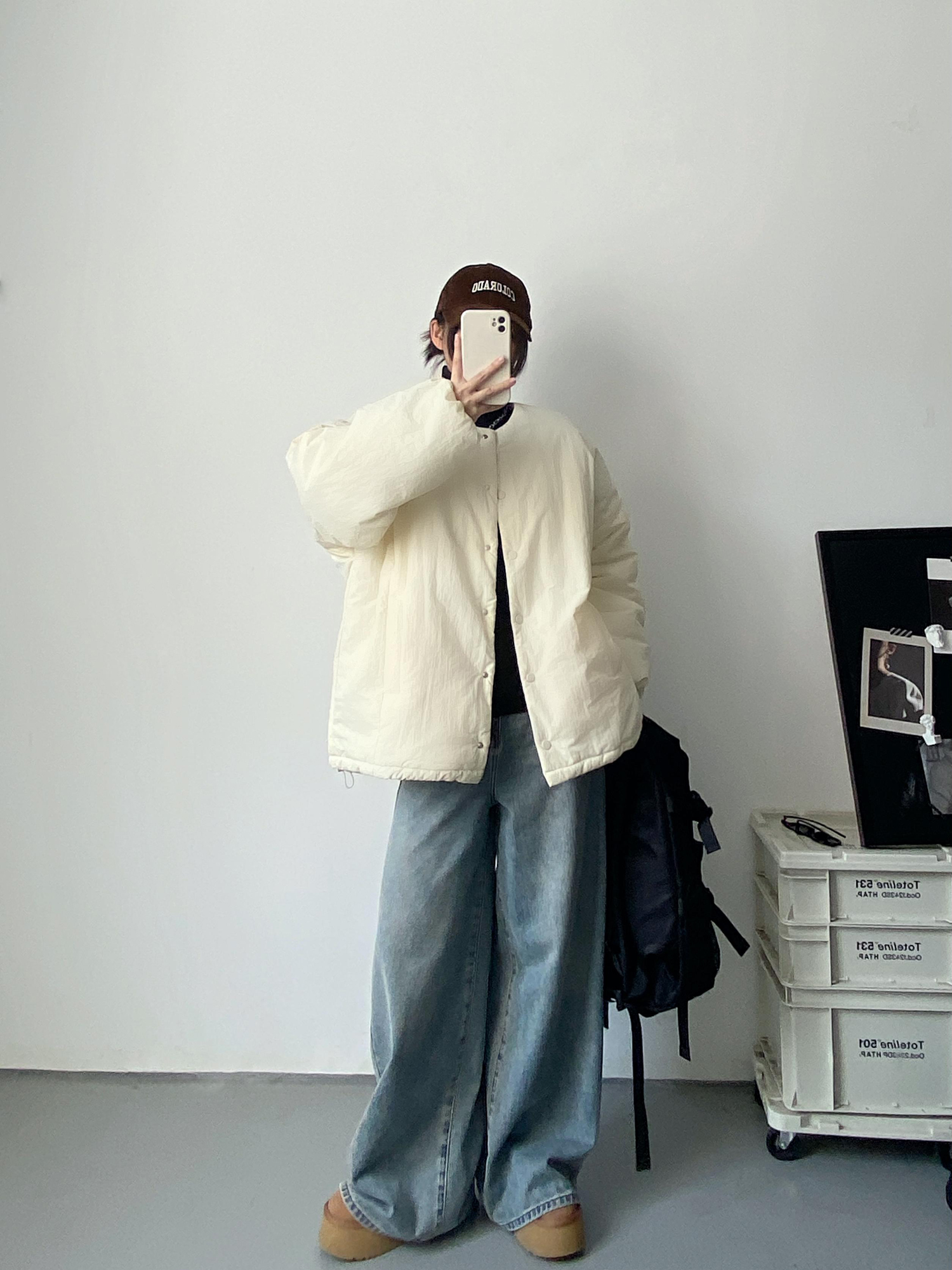 【アウター】 秋冬 ゆったり あったか 綿入れコート 丸首 中綿ジャケット【FCシリーズ】