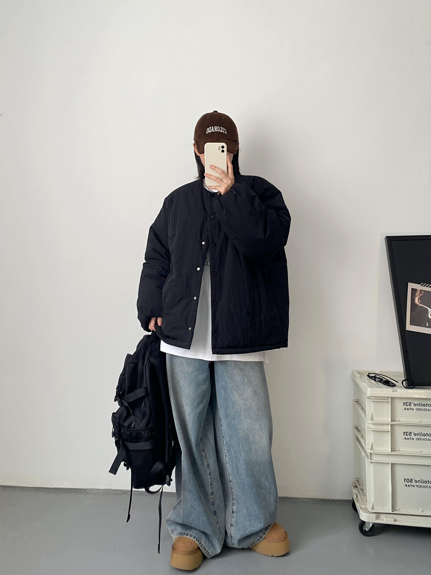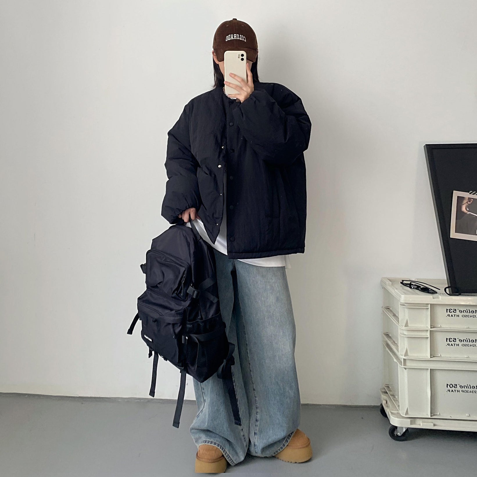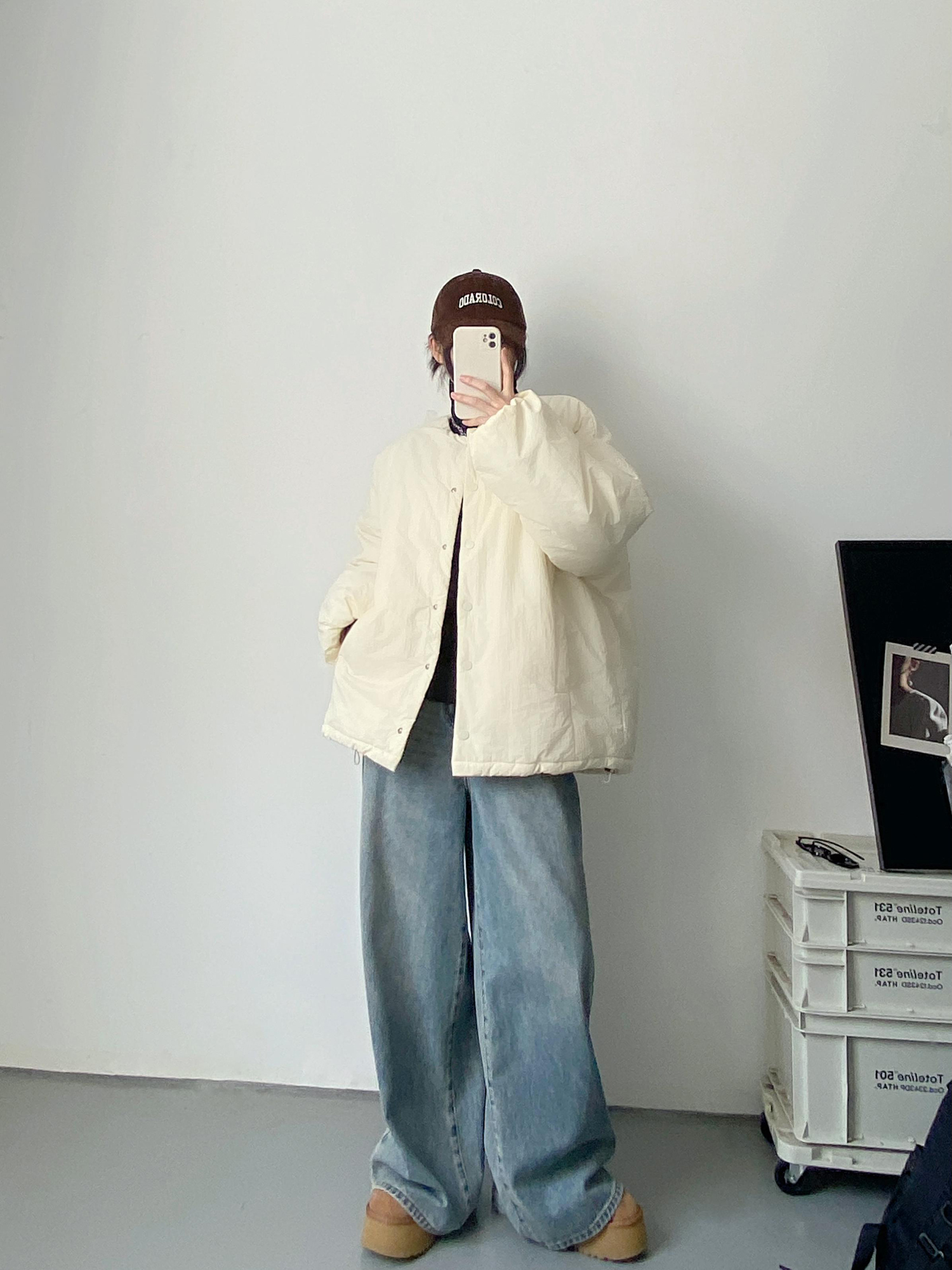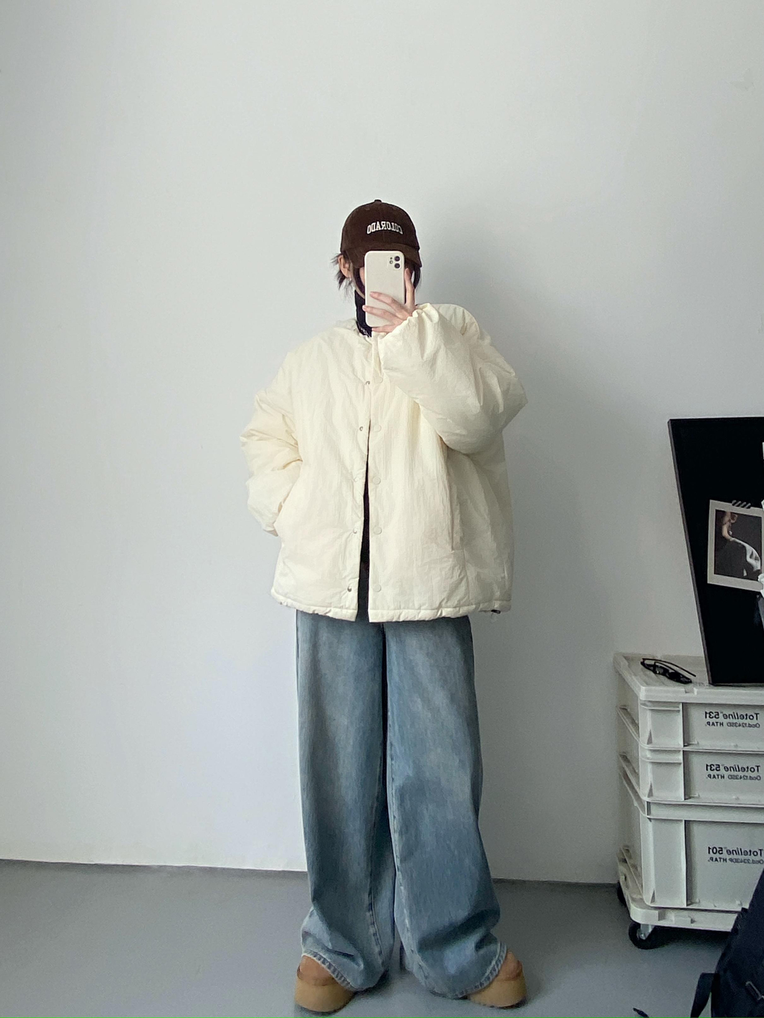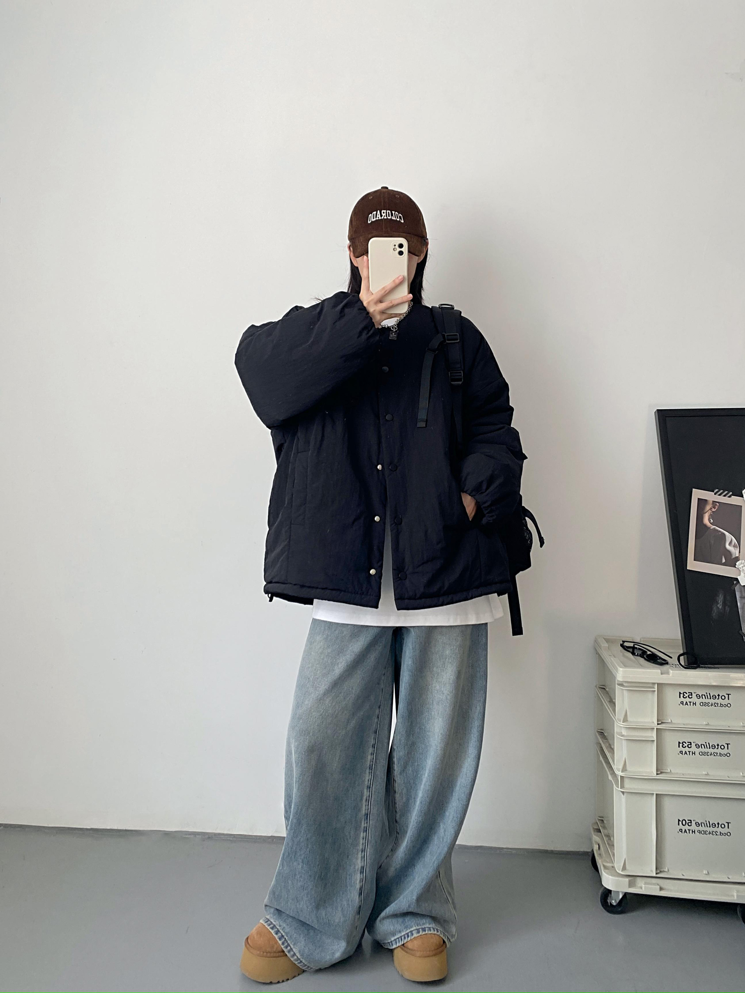 【アウター】 秋冬 ゆったり あったか 綿入れコート 丸首 中綿ジャケット【FCシリーズ】