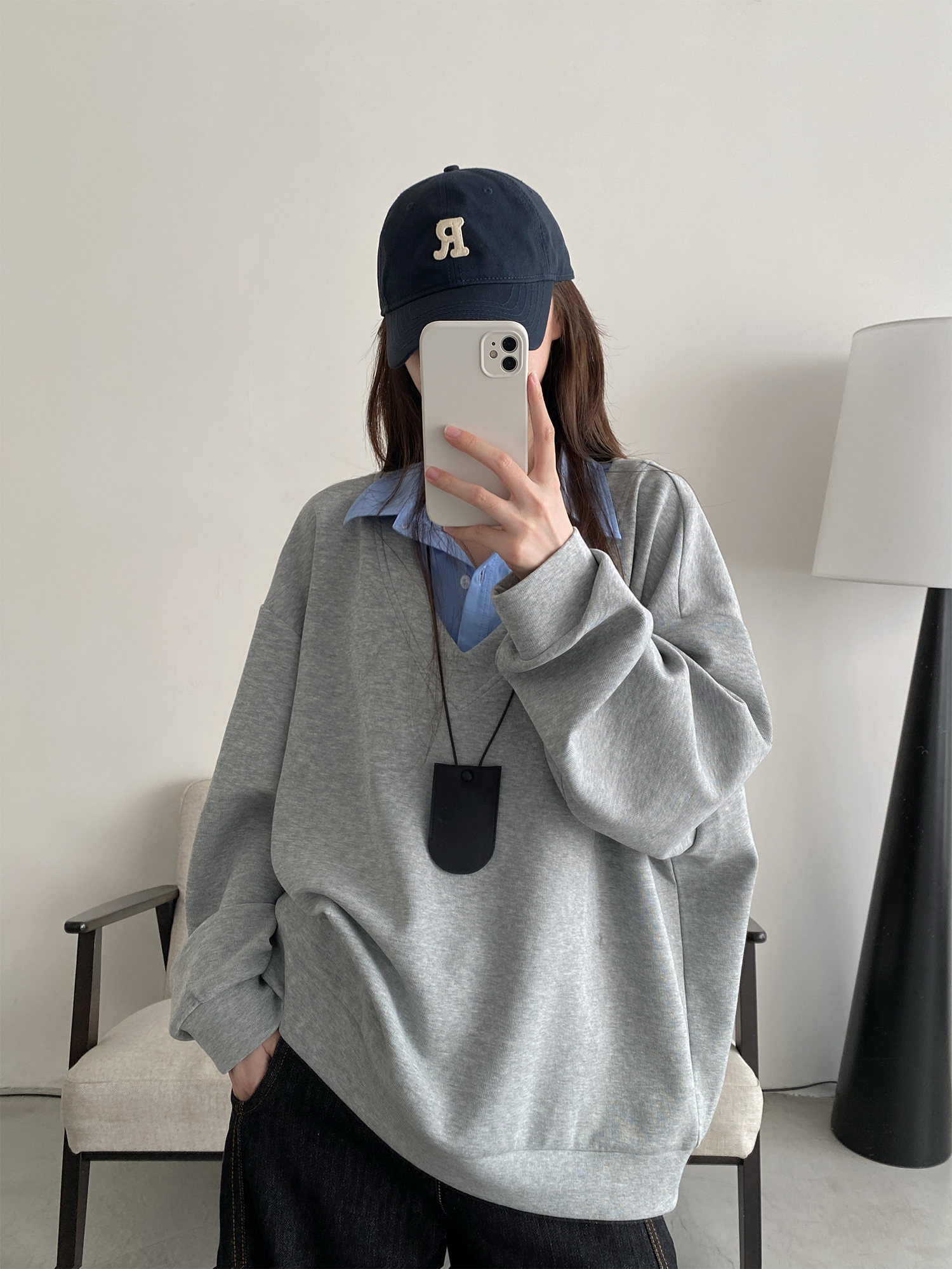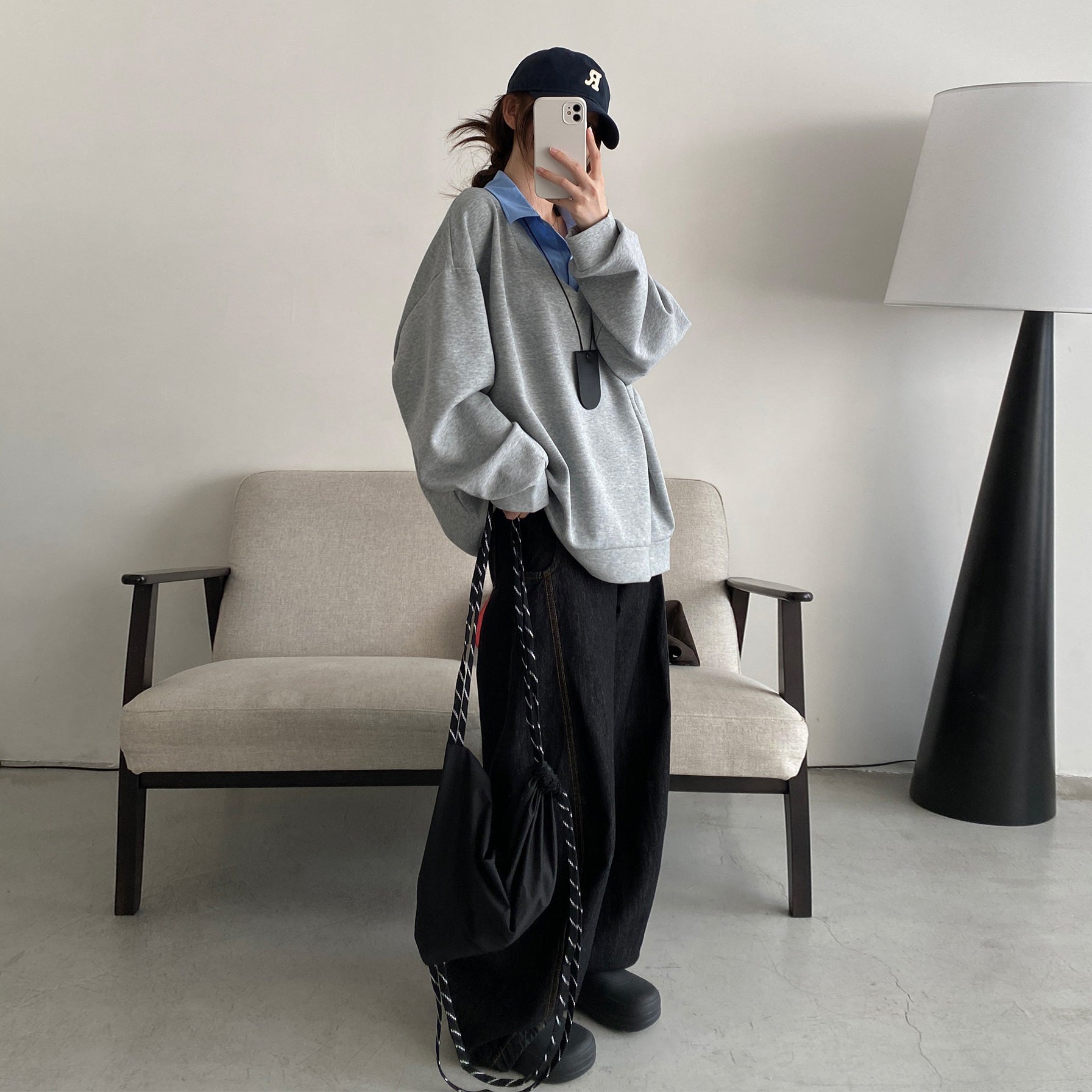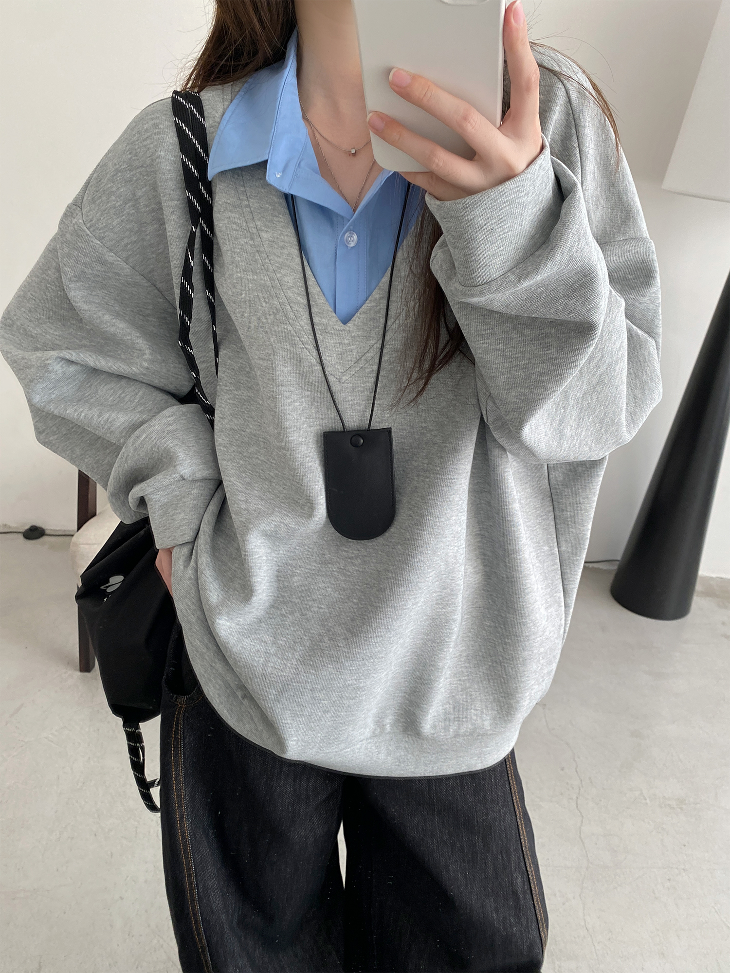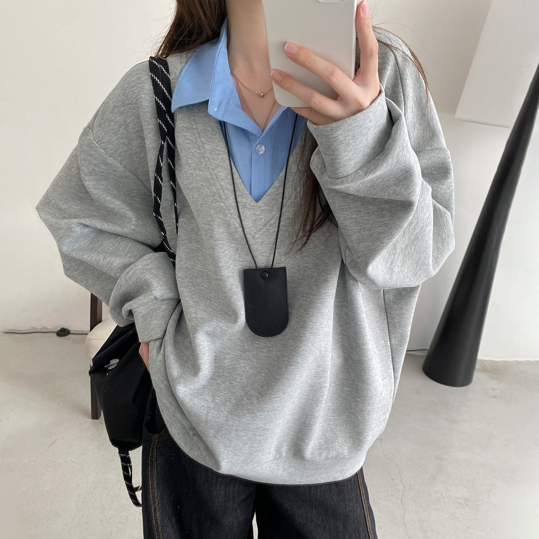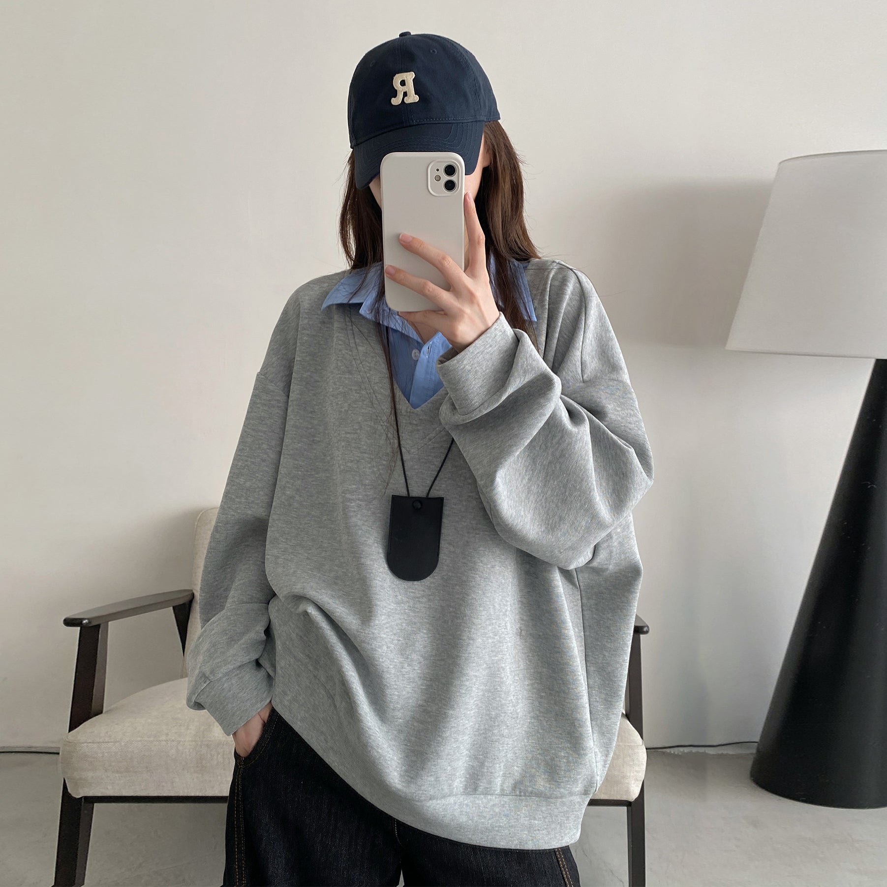 【トップス】レイヤード風 配色切り替え プルオーバースウェット レディース ゆったり カジュアル 春秋 パーカー【FCシリーズ】