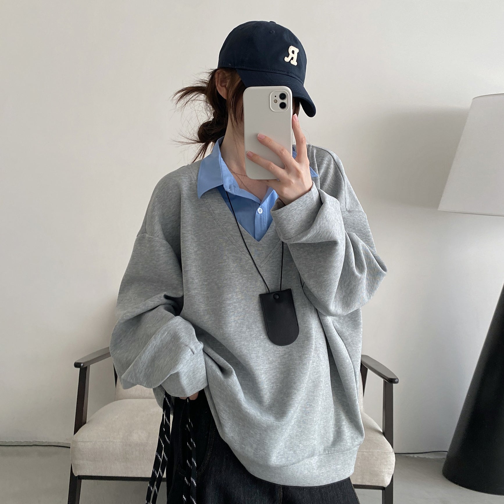 【トップス】ふんわり柔らか♪ 韓国風 ルーズ ニットセーター レディース 秋冬 ゆったりVネック プルオーバー【JZシリーズ】