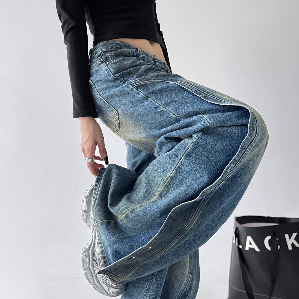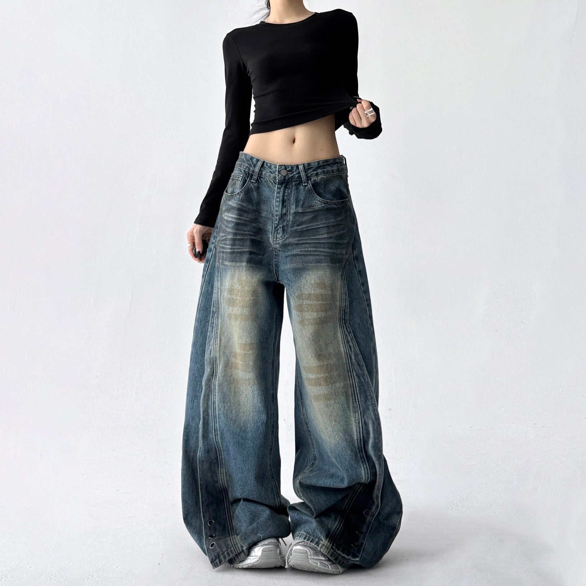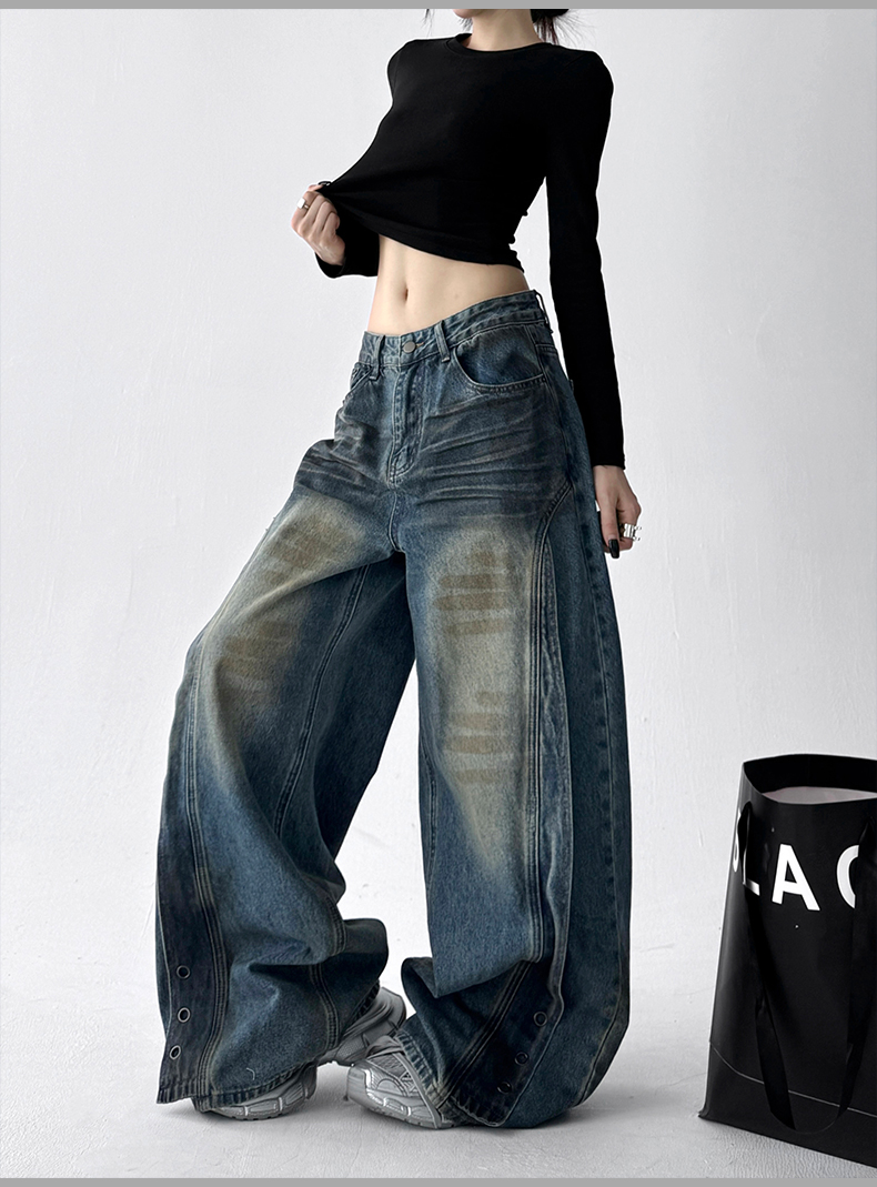 【ボトムス】デニム ハイウエスト ジーンズ 春秋 レディース ワイドストリートパンツ【FCシリーズ】