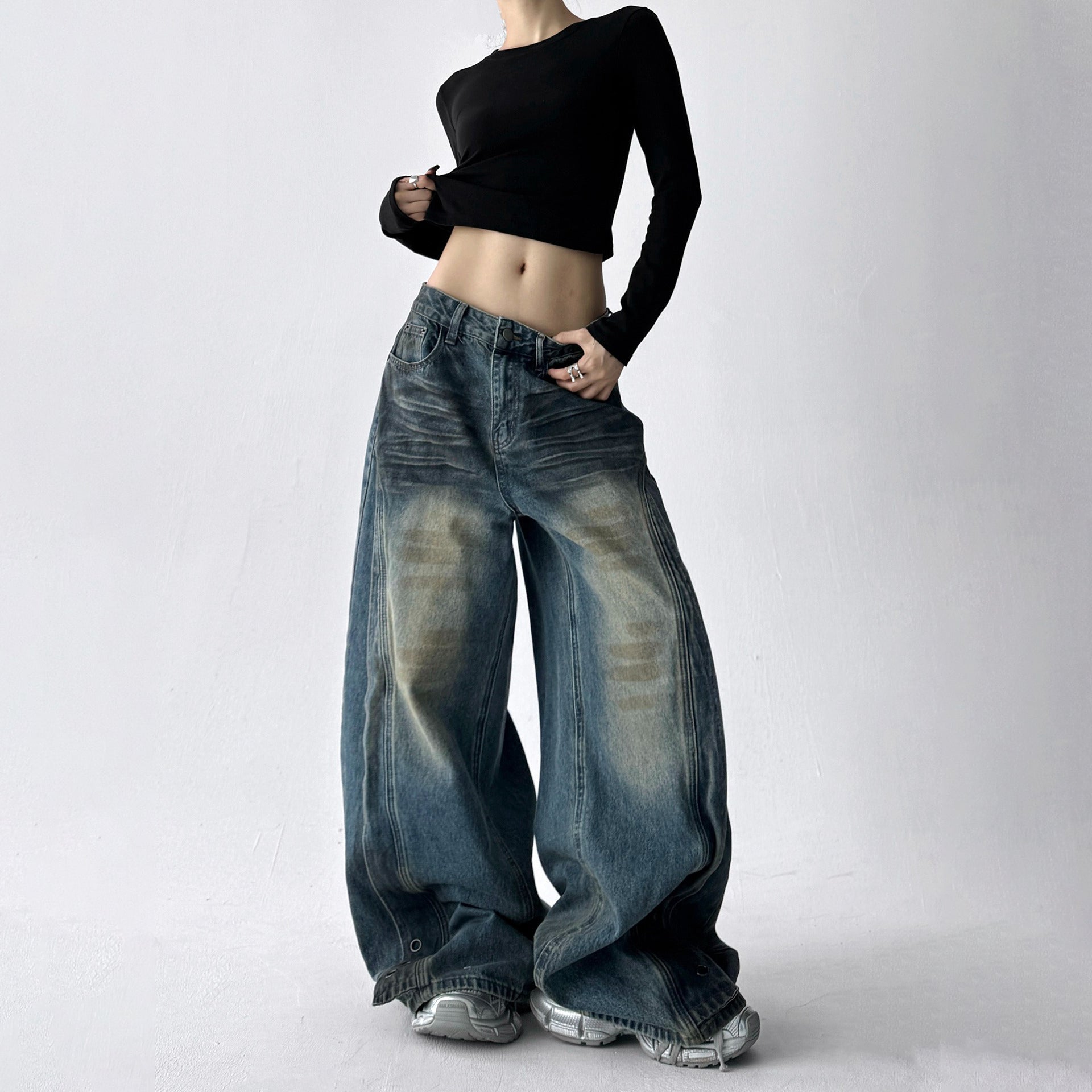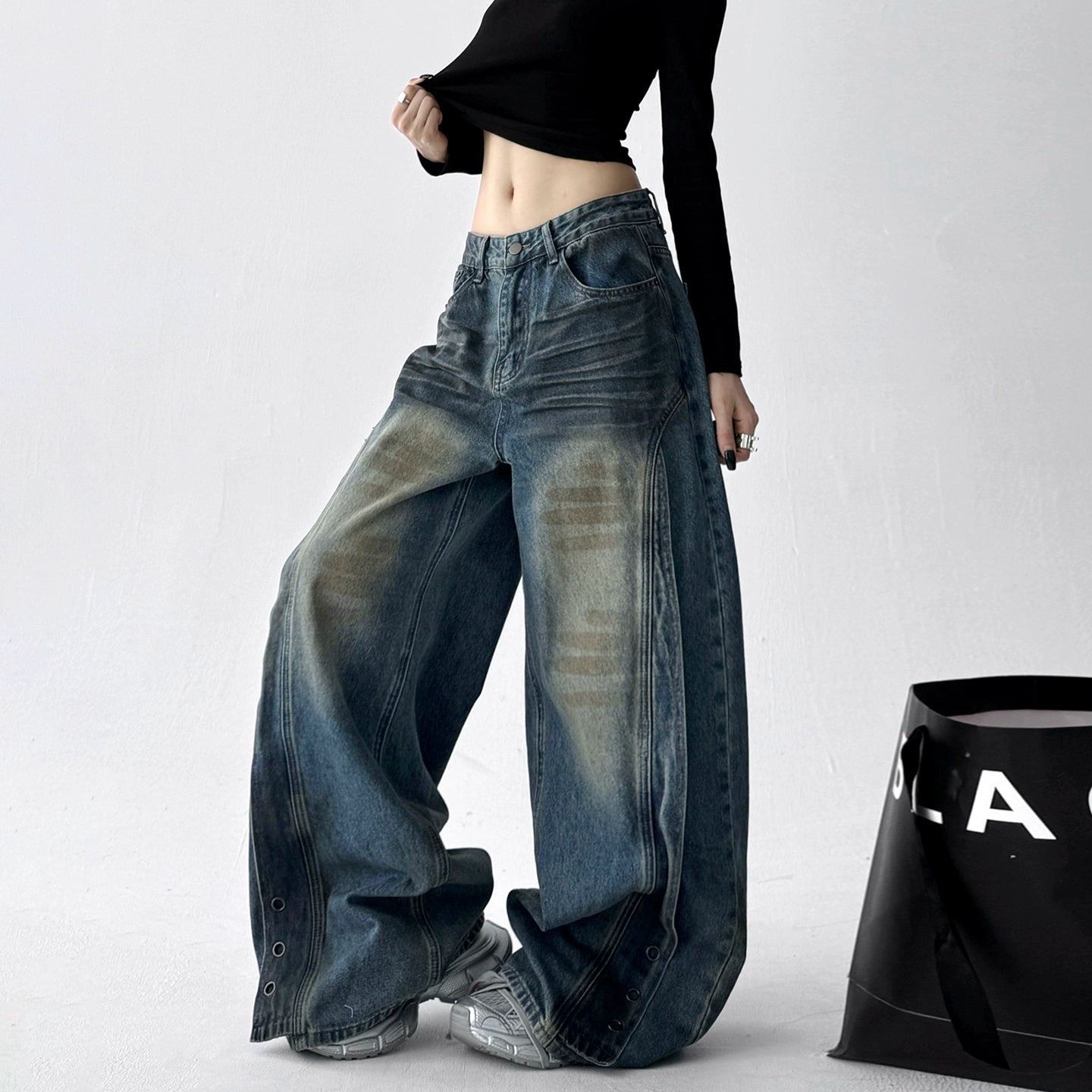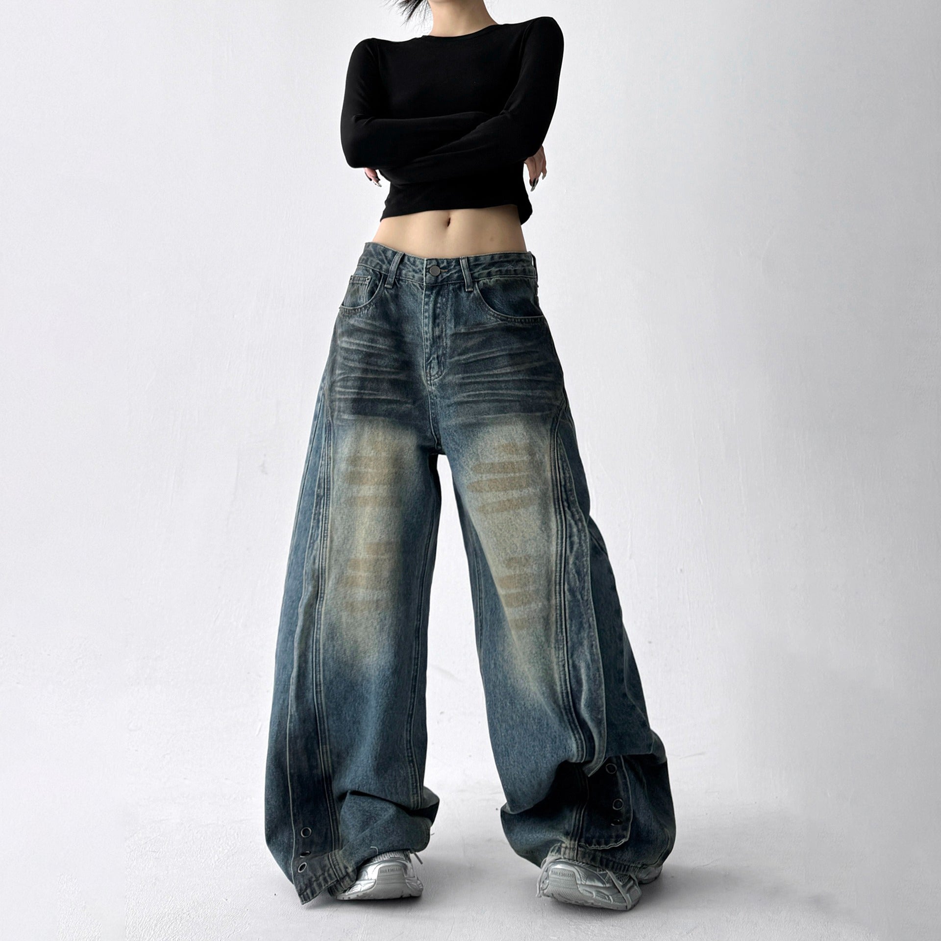 【商品名】【ボトムス】デニム ハイウエスト ジーンズ 春秋 レディース ワイドストリートパンツ【FCシリーズ】