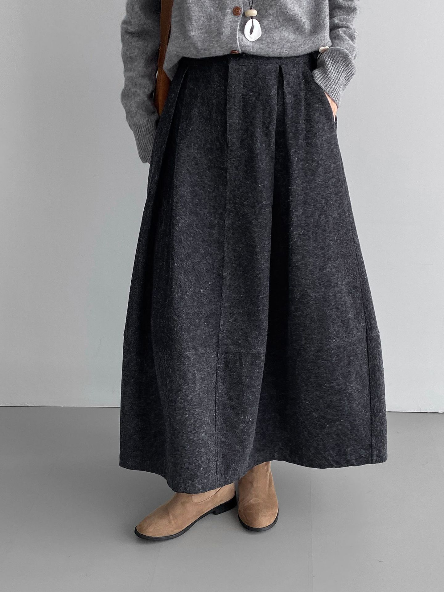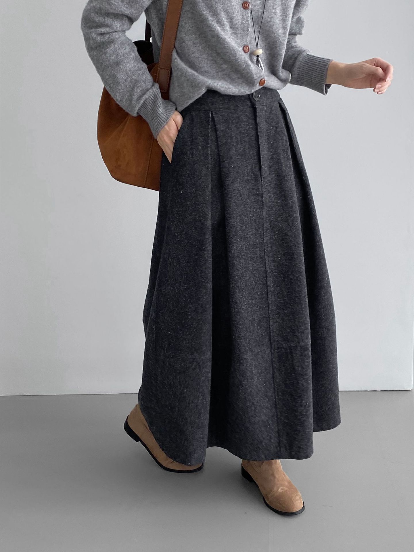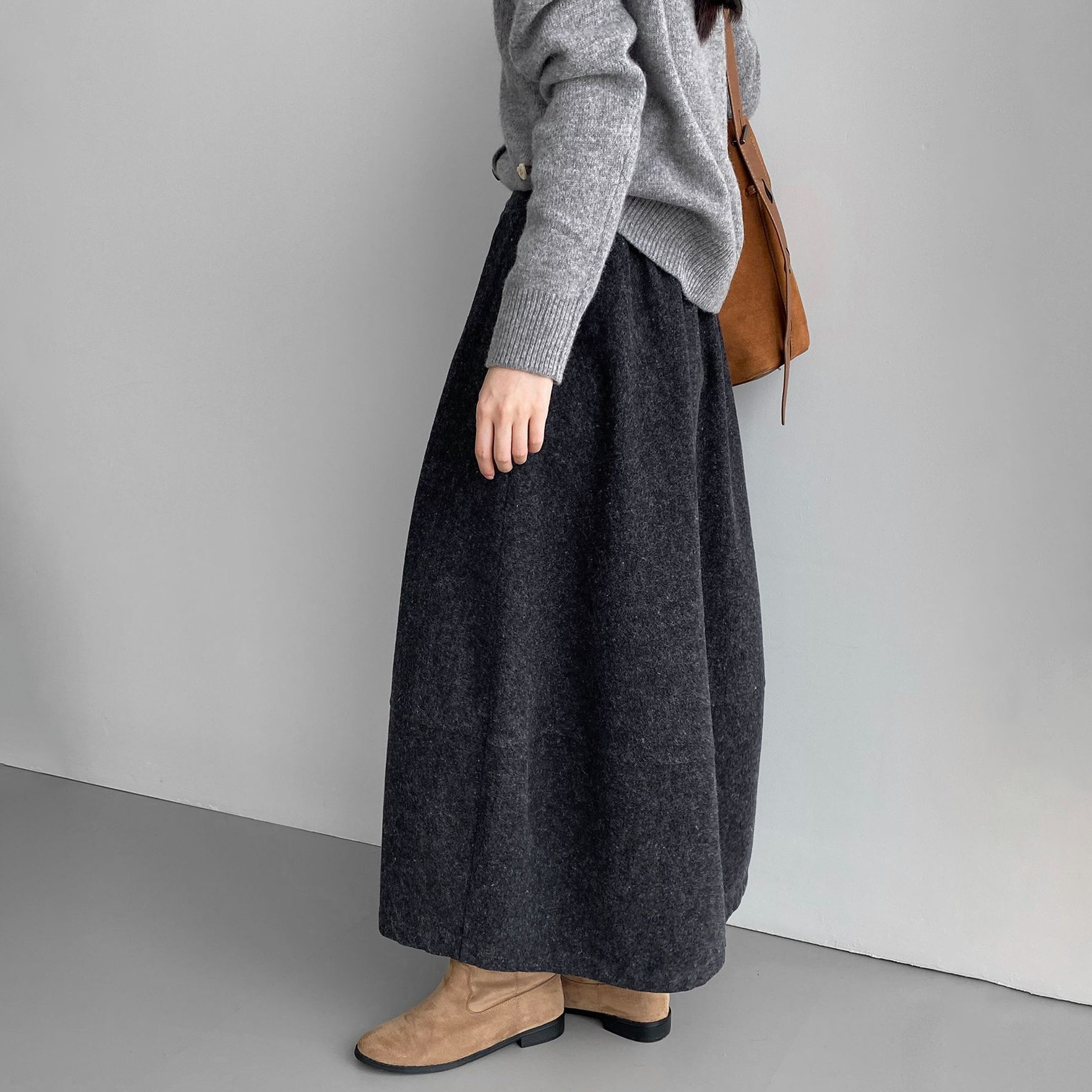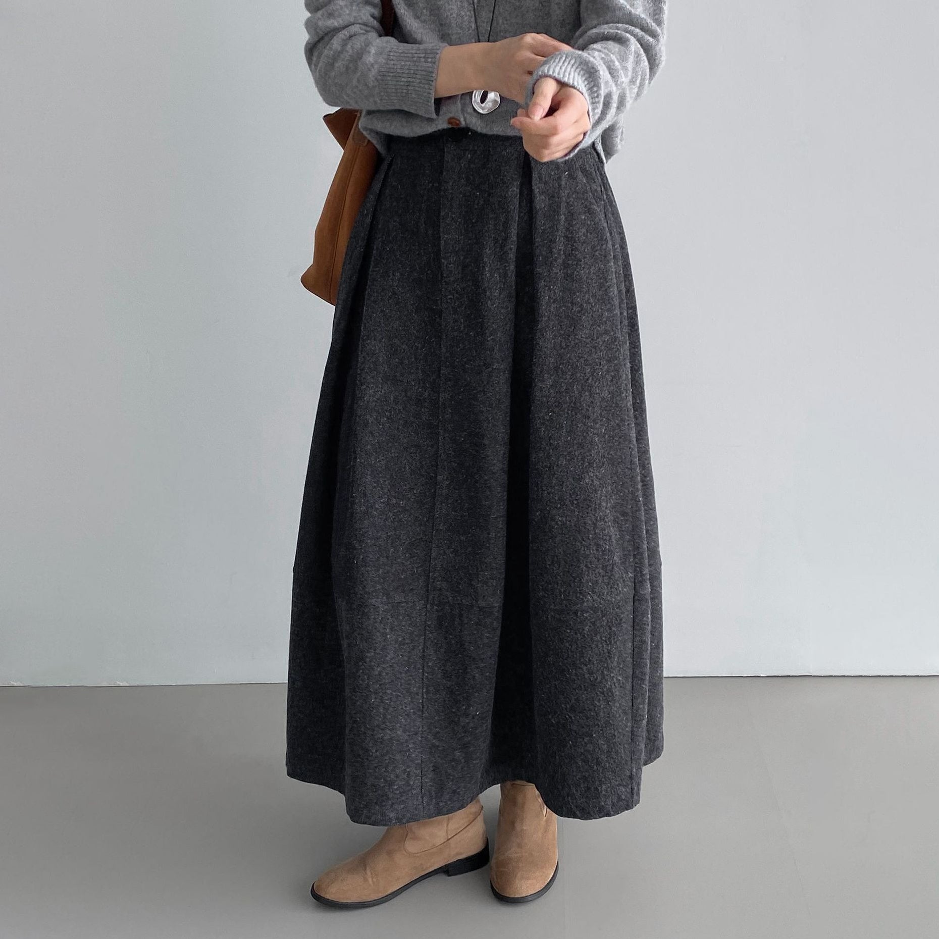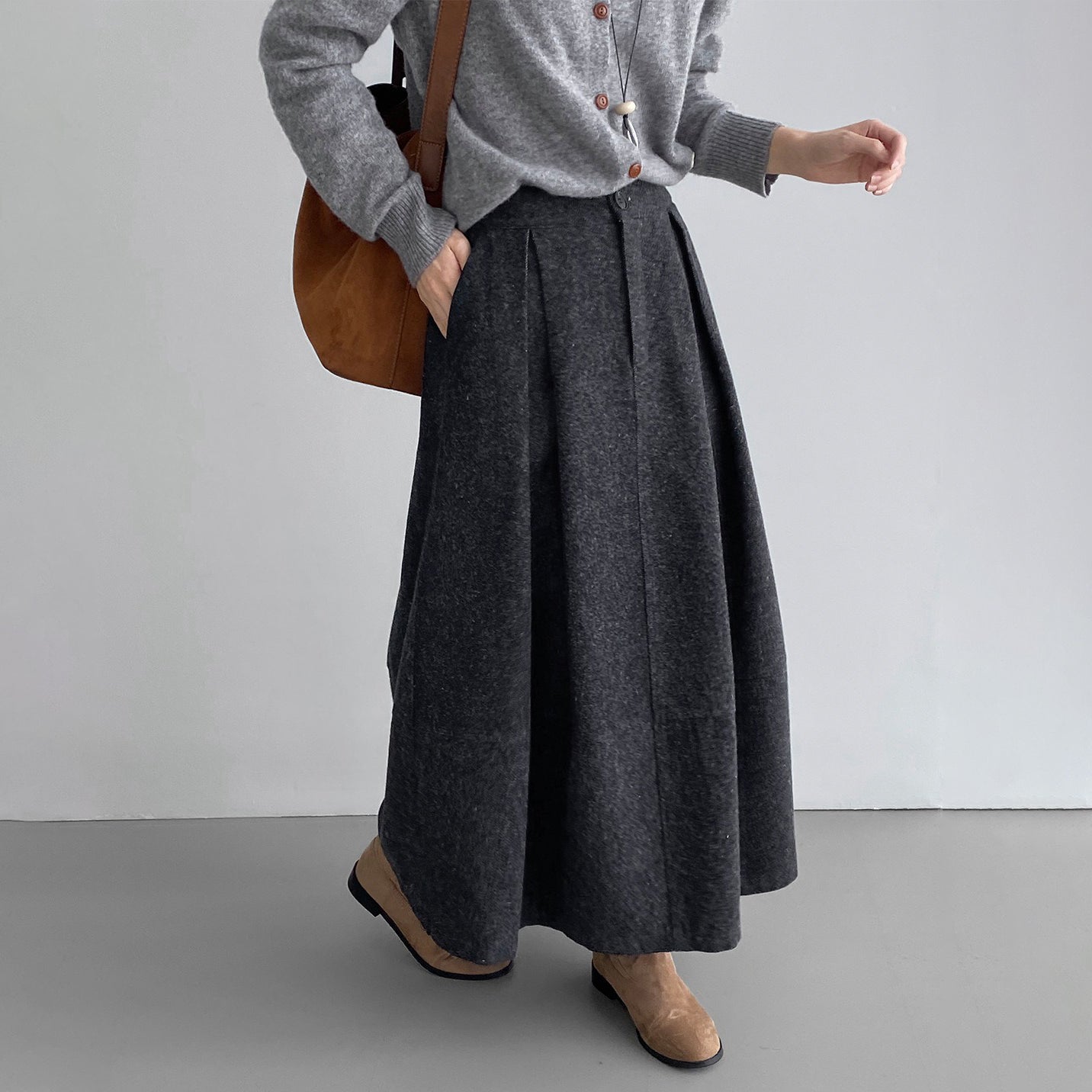 【ボトムス】ウール風 バルーンスカート 気質Aライン プリーツ入り【JZシリーズ】