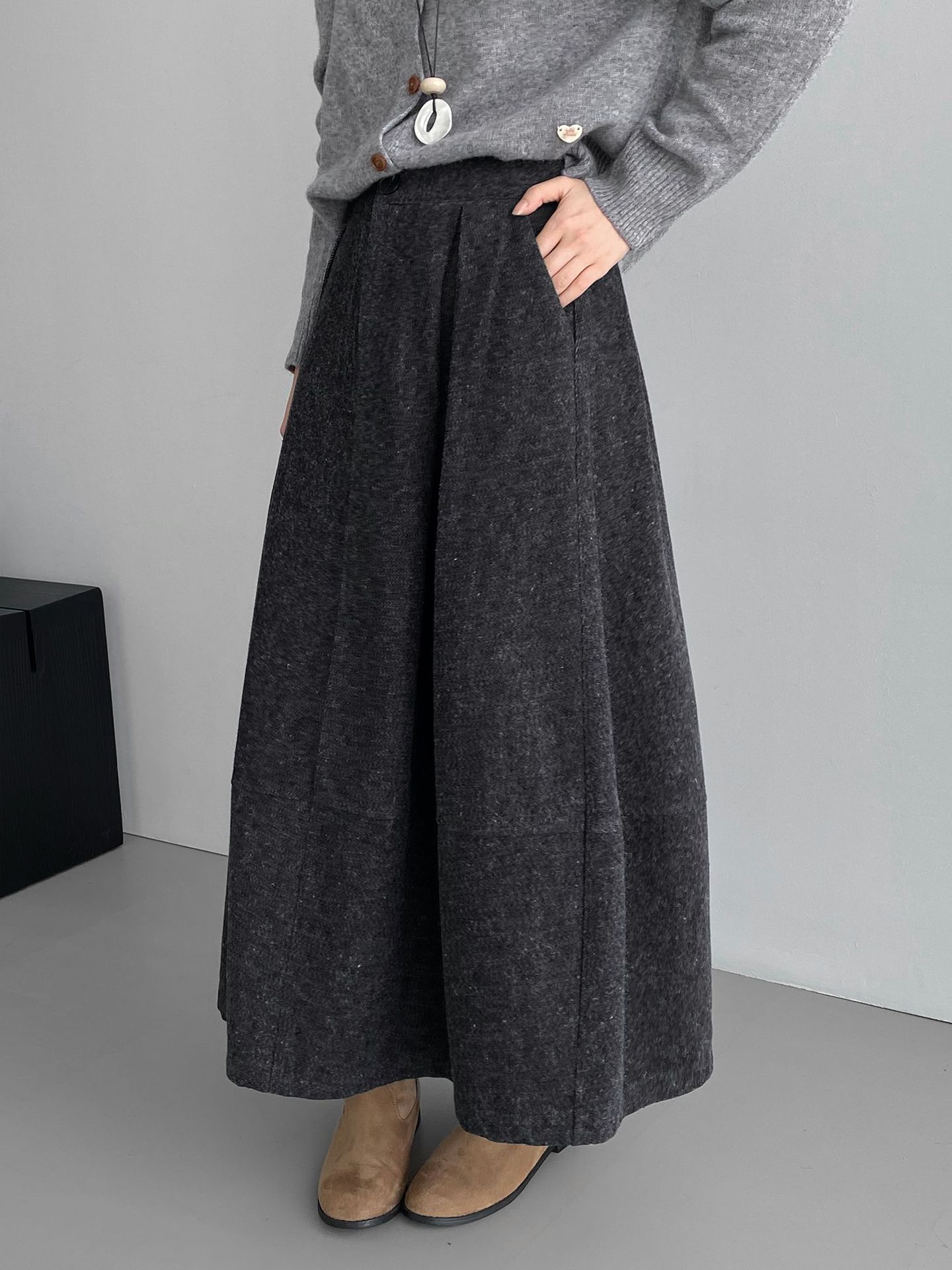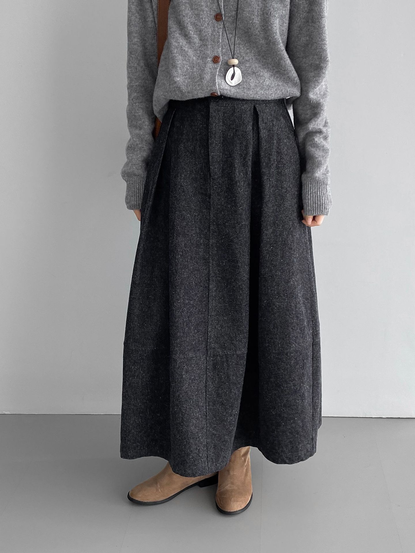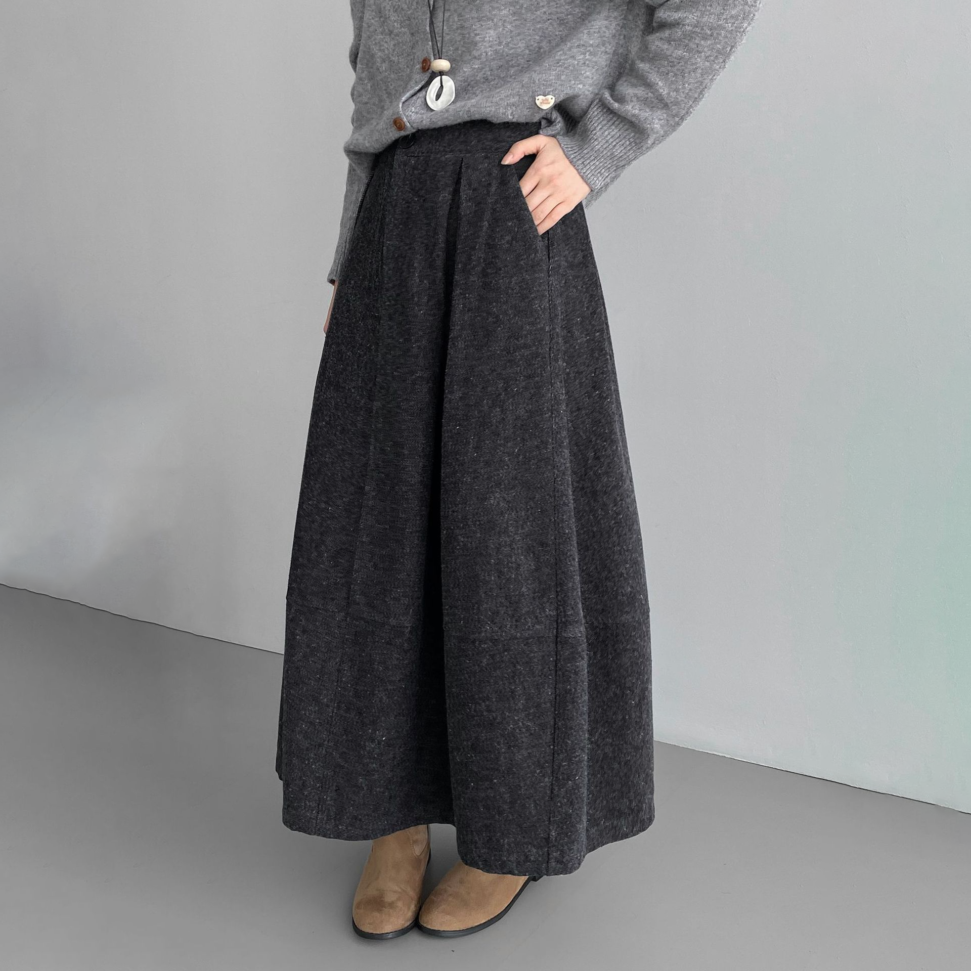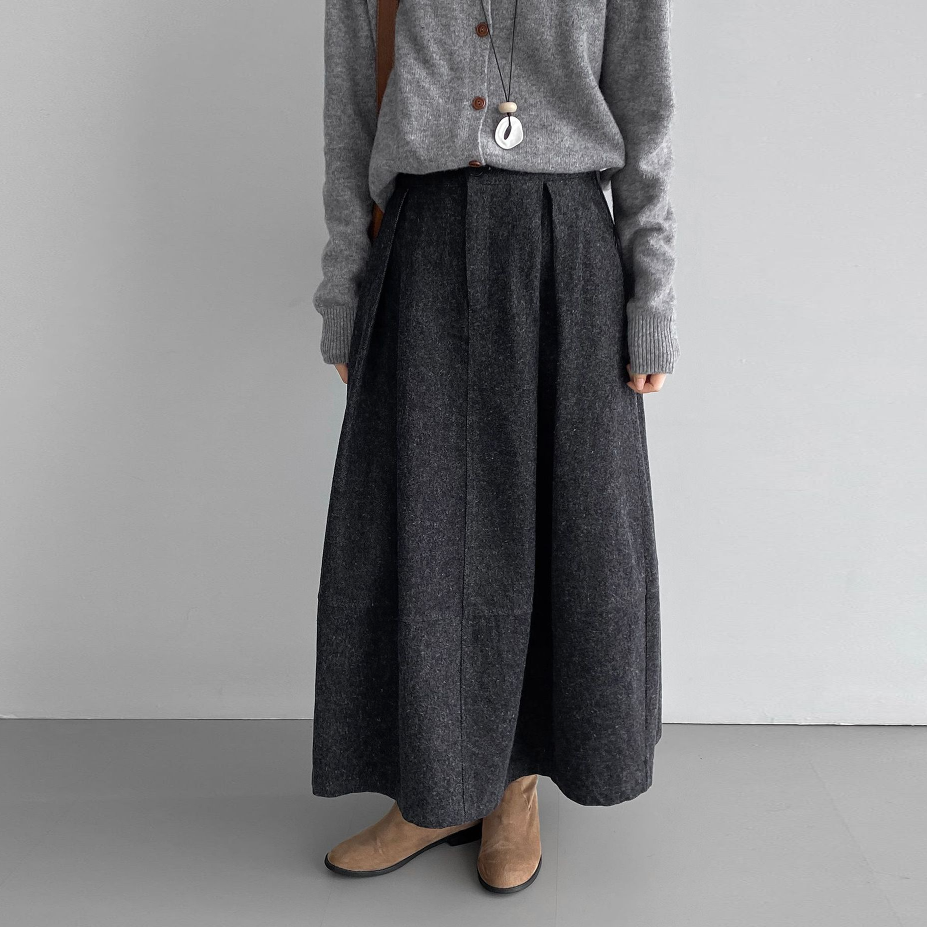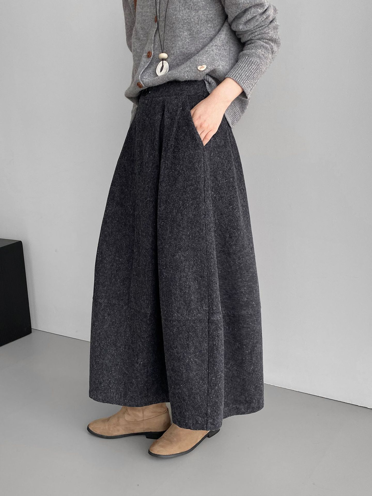【ボトムス】ウール風 バルーンスカート 気質Aライン プリーツ入り【JZシリーズ】