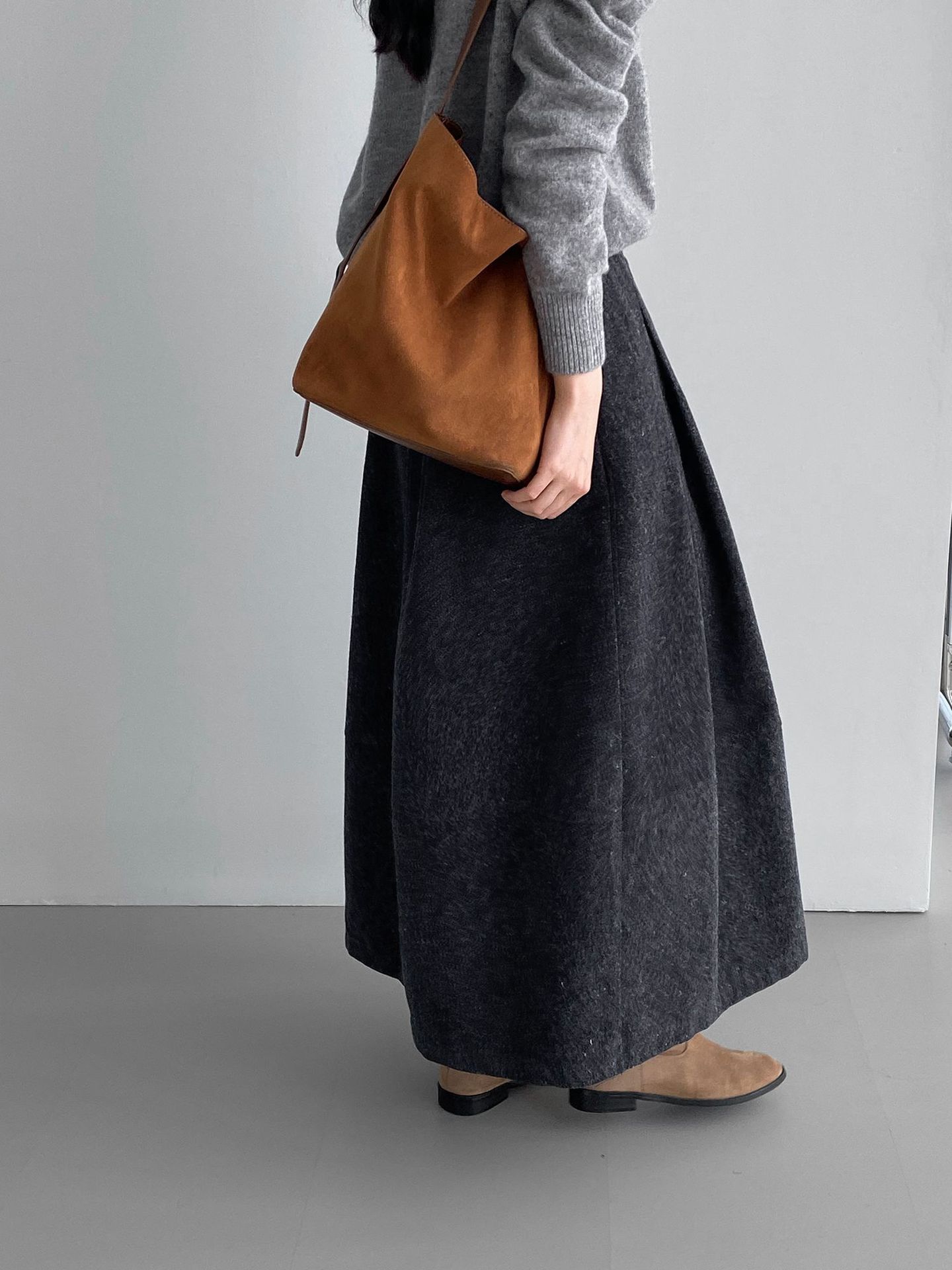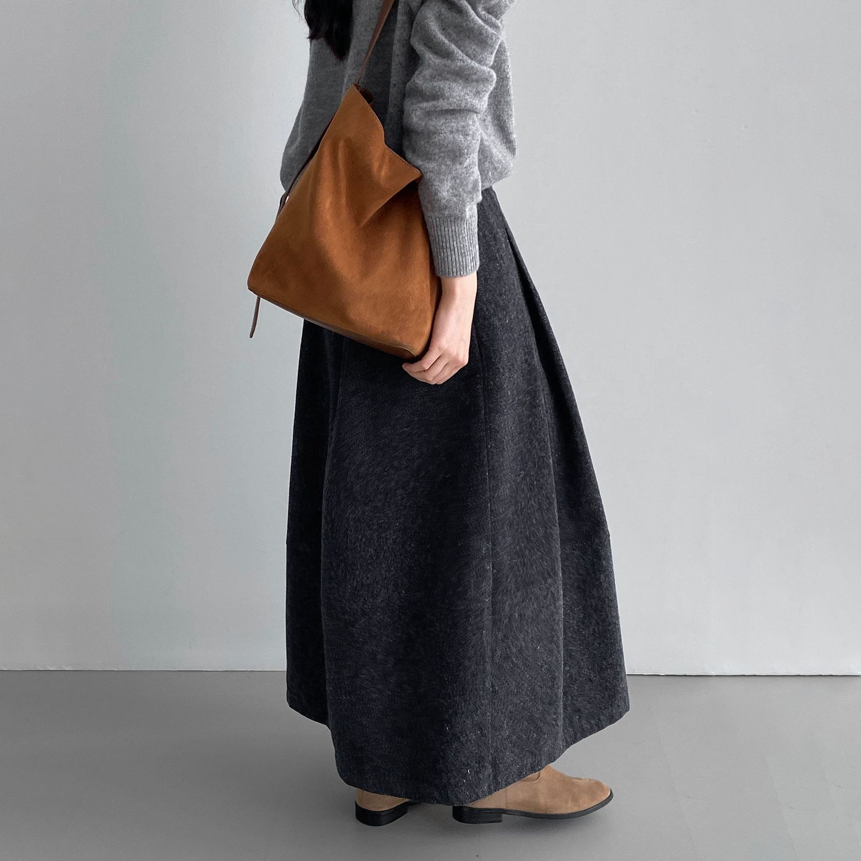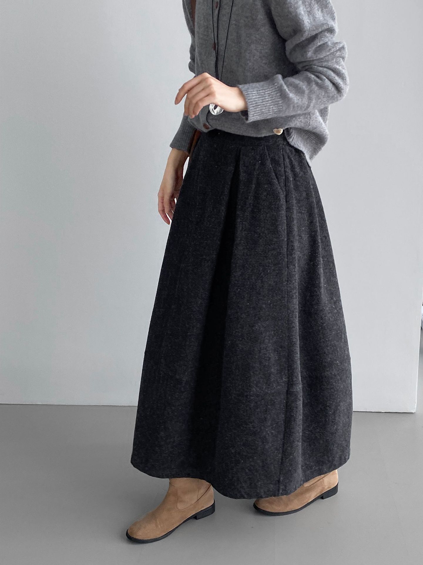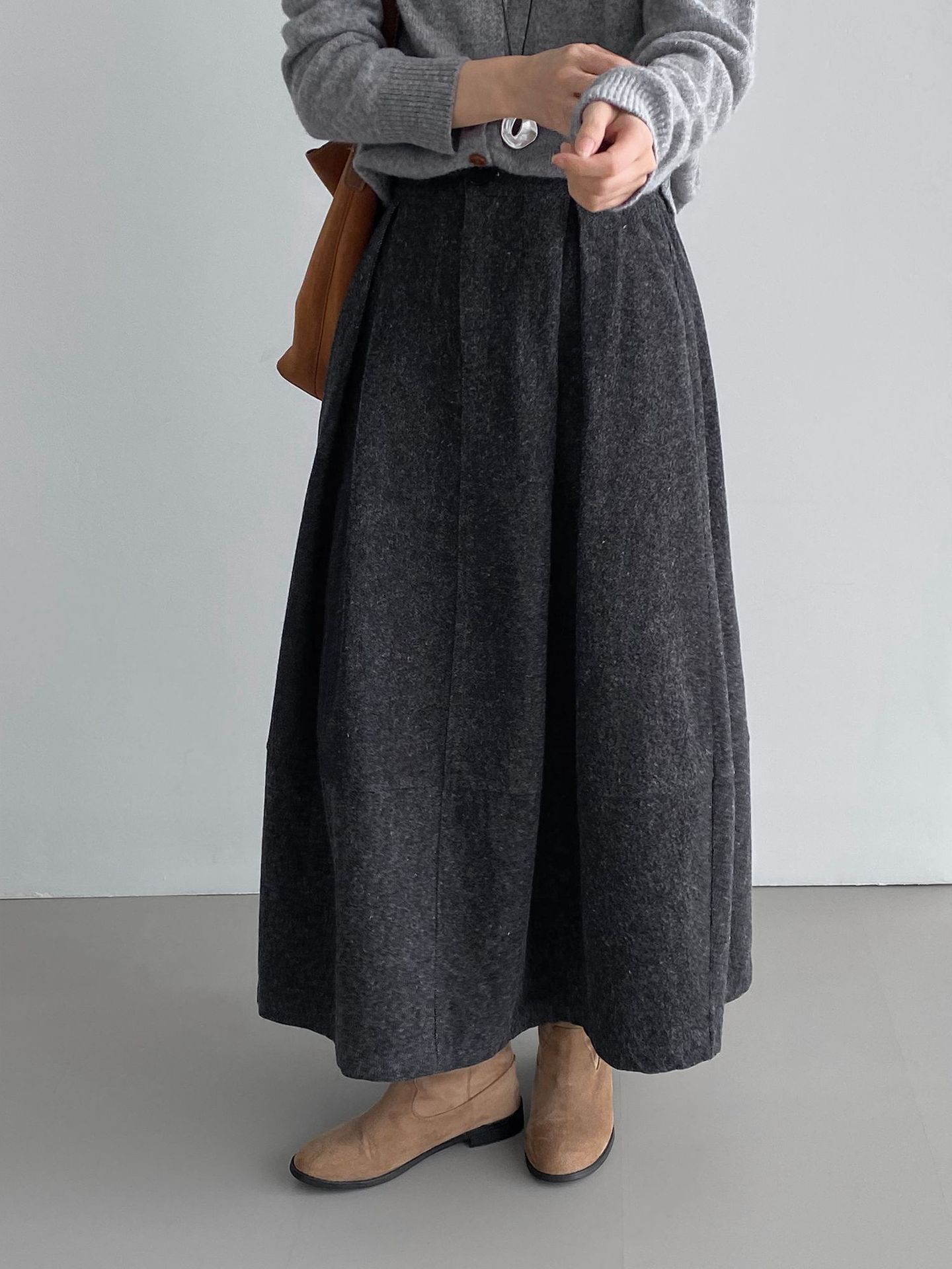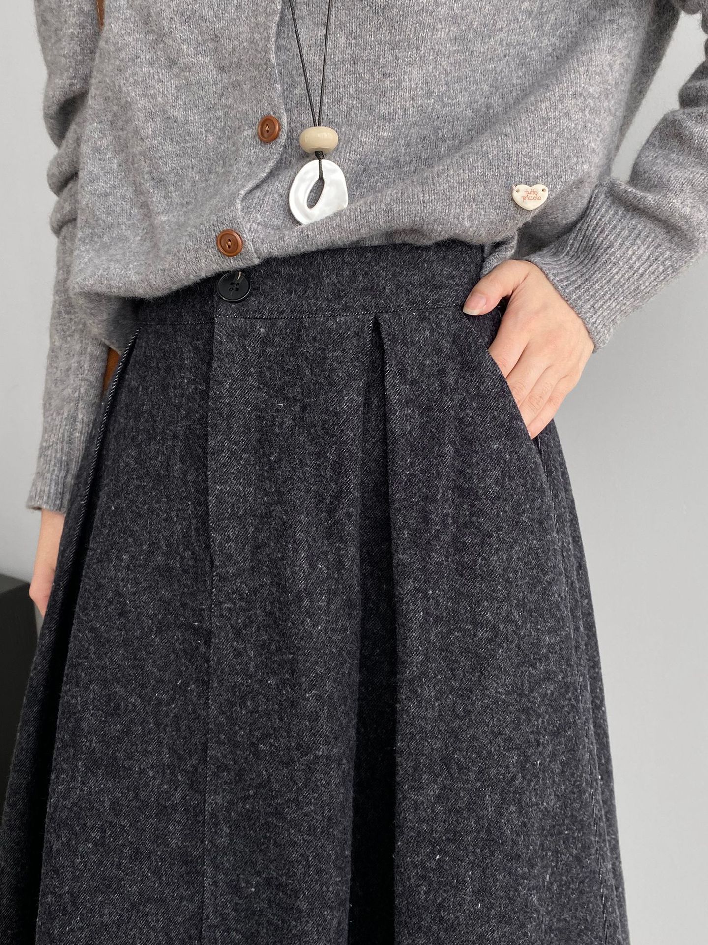 【ボトムス】ウール風 バルーンスカート 気質Aライン プリーツ入り【JZシリーズ】