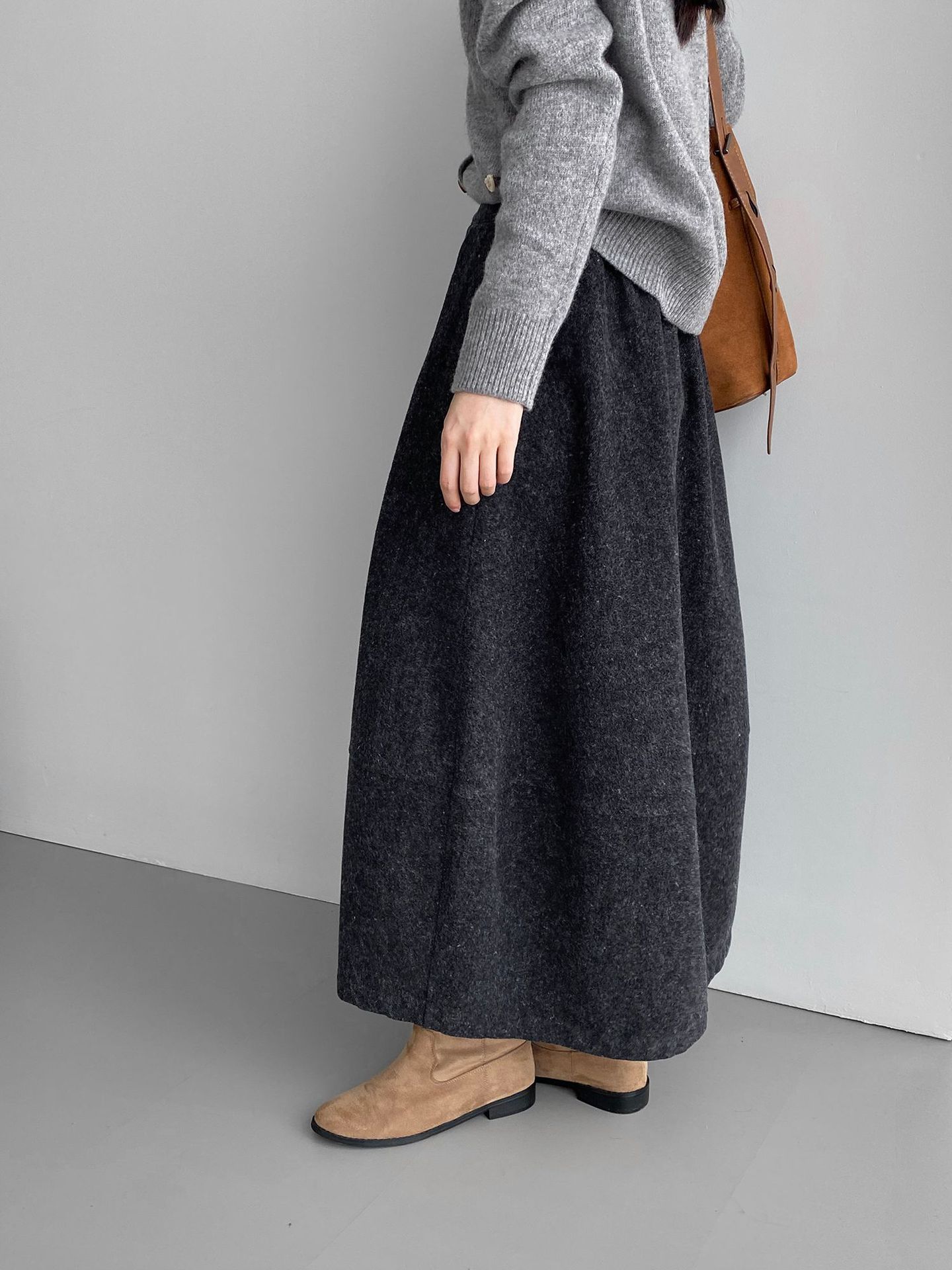【ボトムス】落ち感 細見え ウール裏起毛 Aラインロング スカート 【JZシリーズ】