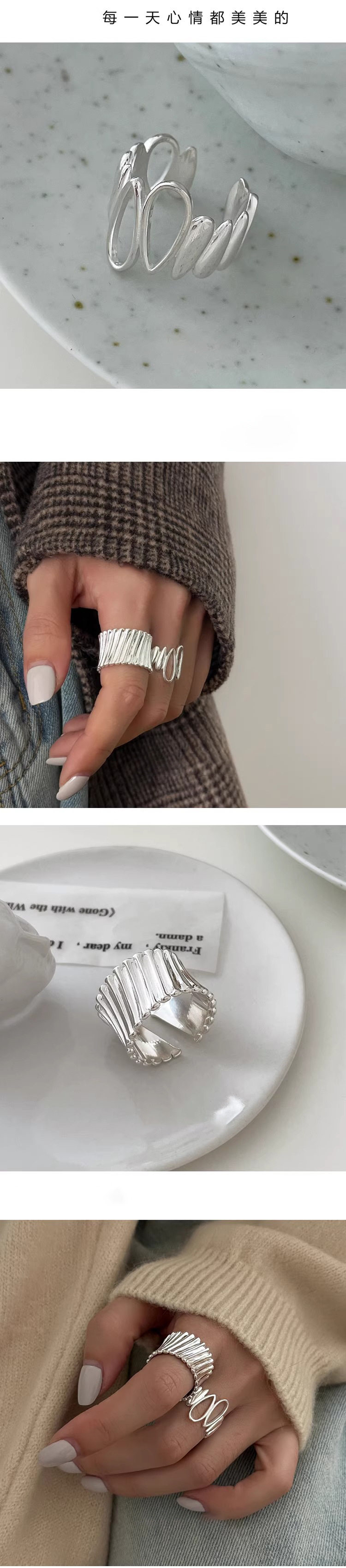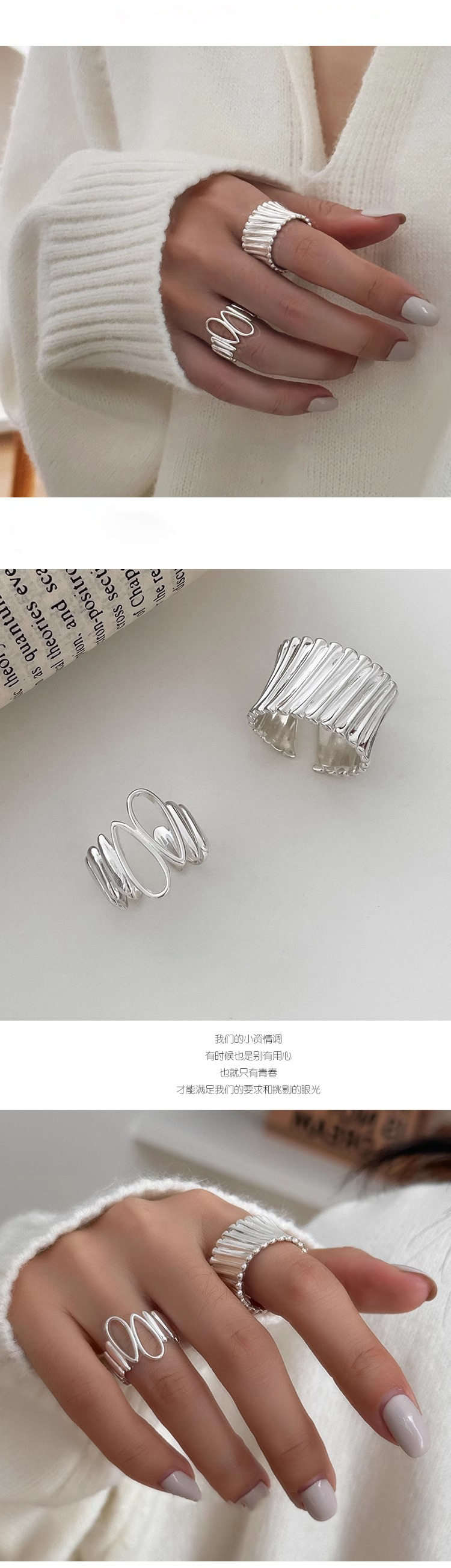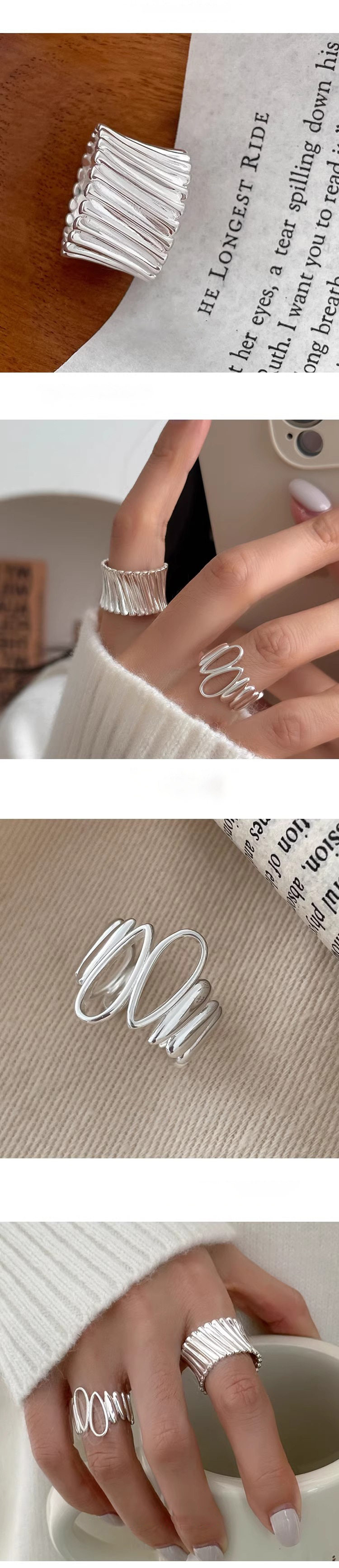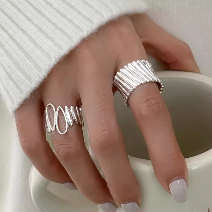 【グッズ】透かしデザイン 不規則な 雫モチーフリング 春 秋 冬 夏 オープンリング 2点セット 【JZシリーズ】