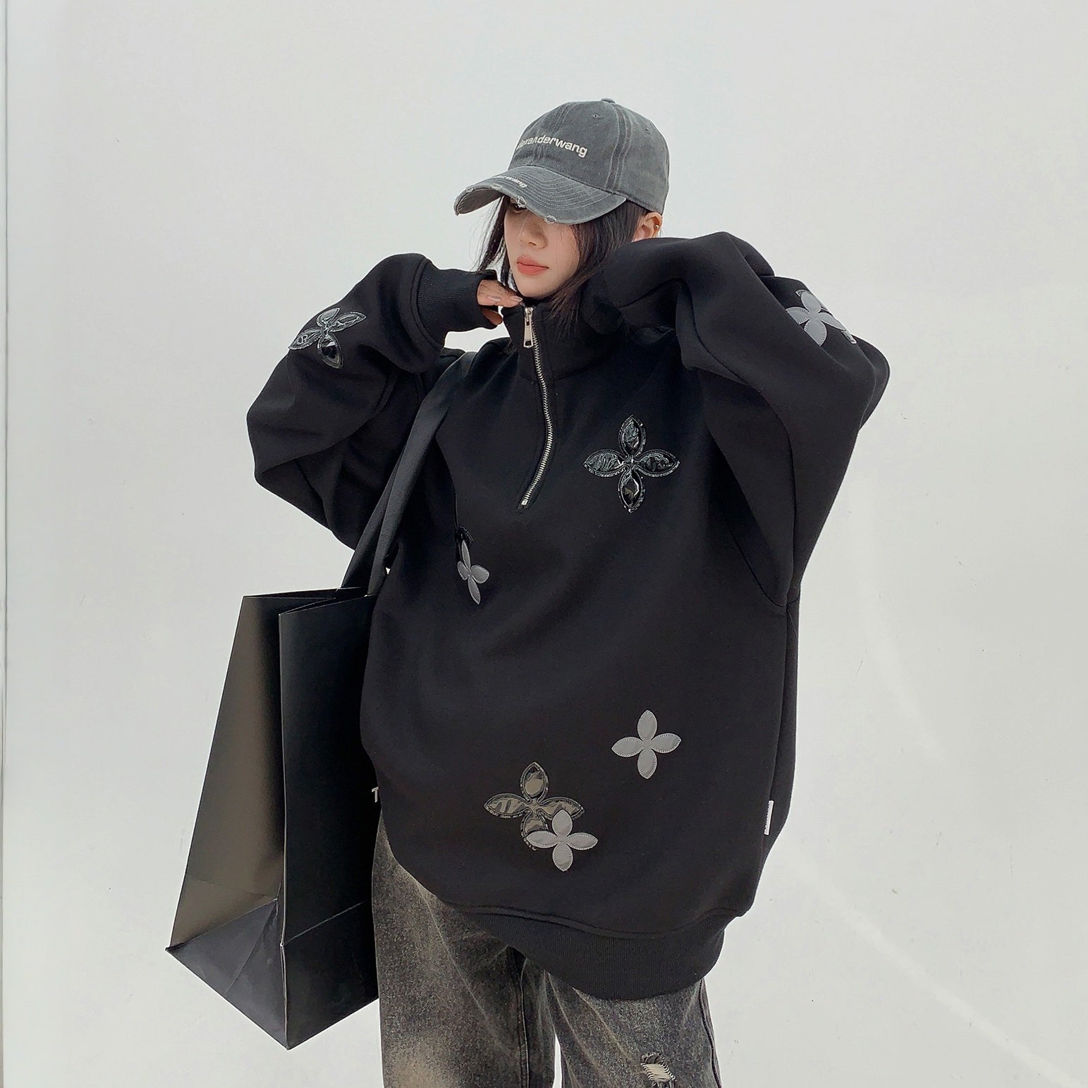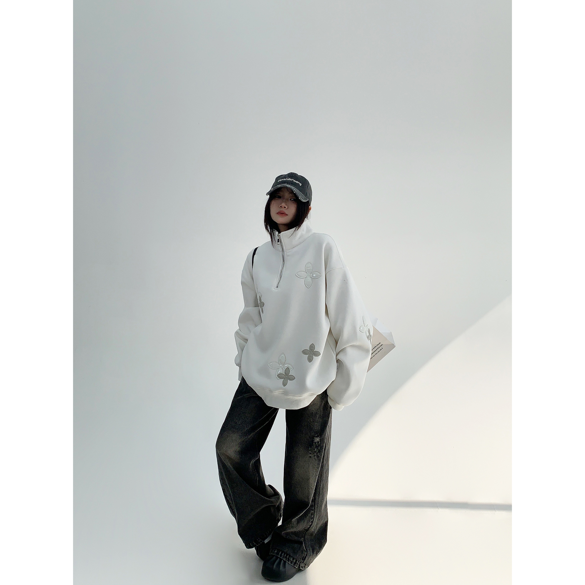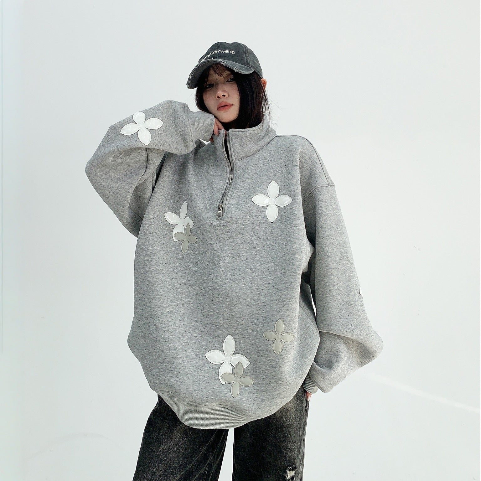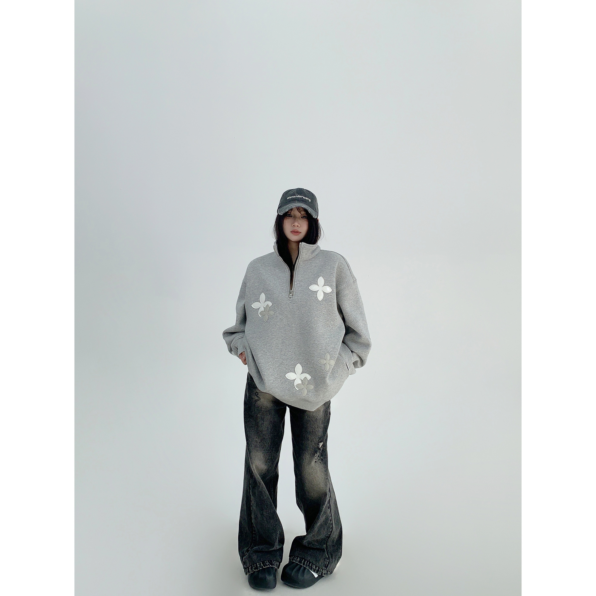 【トップス】リラックス感 ゆったりシルエット ダメージ加工 刺繍 春 秋 冬 フード付き パーカー 【FCシリーズ】