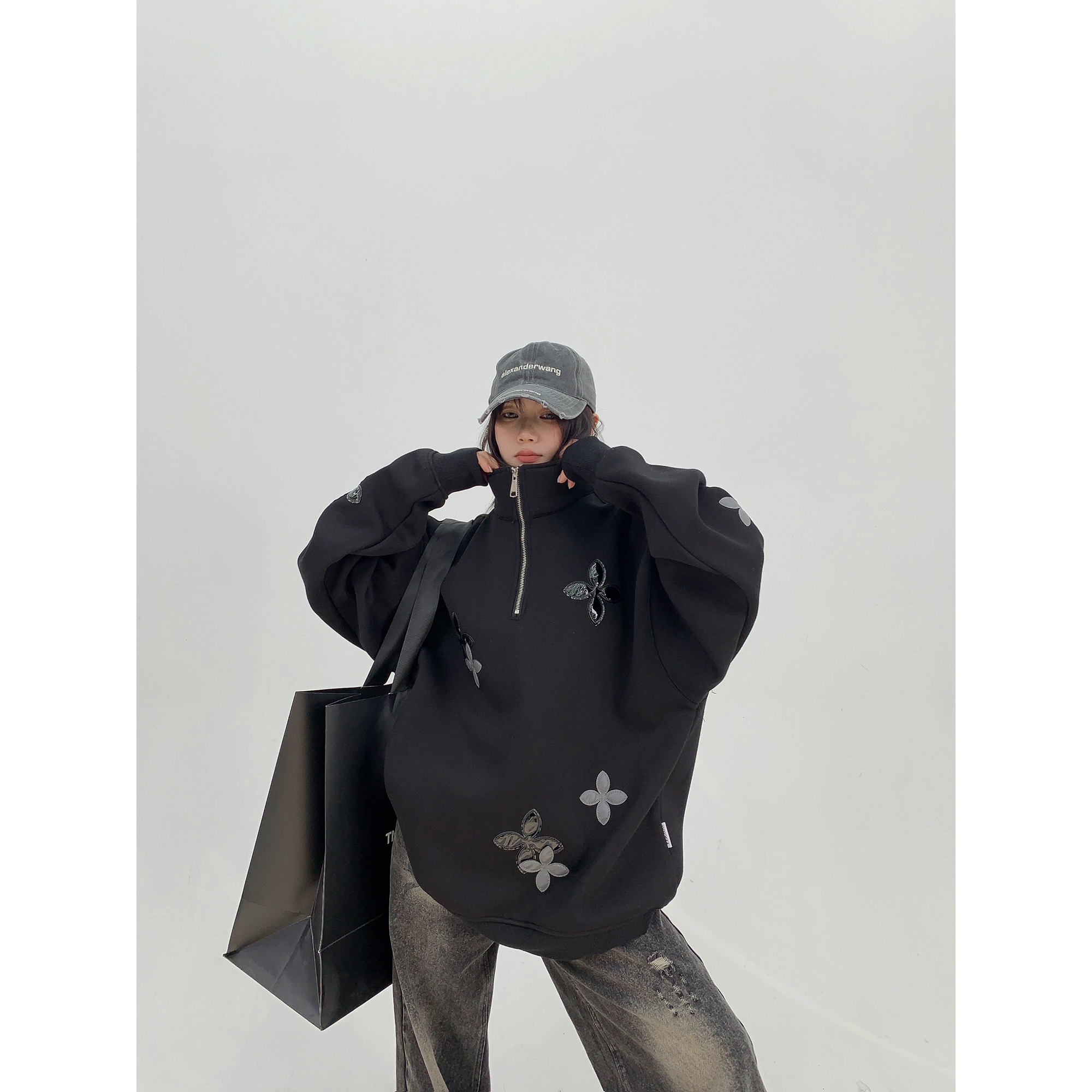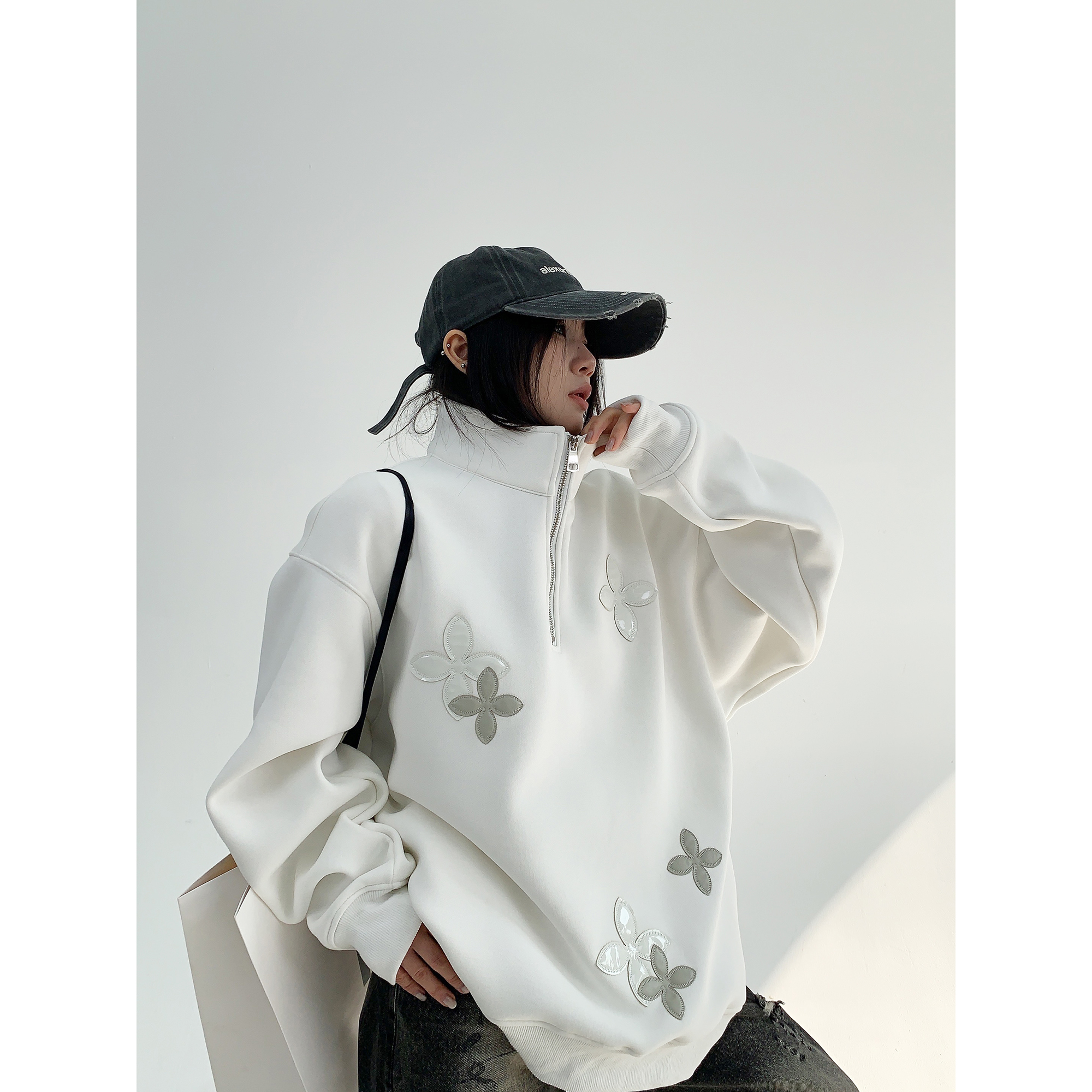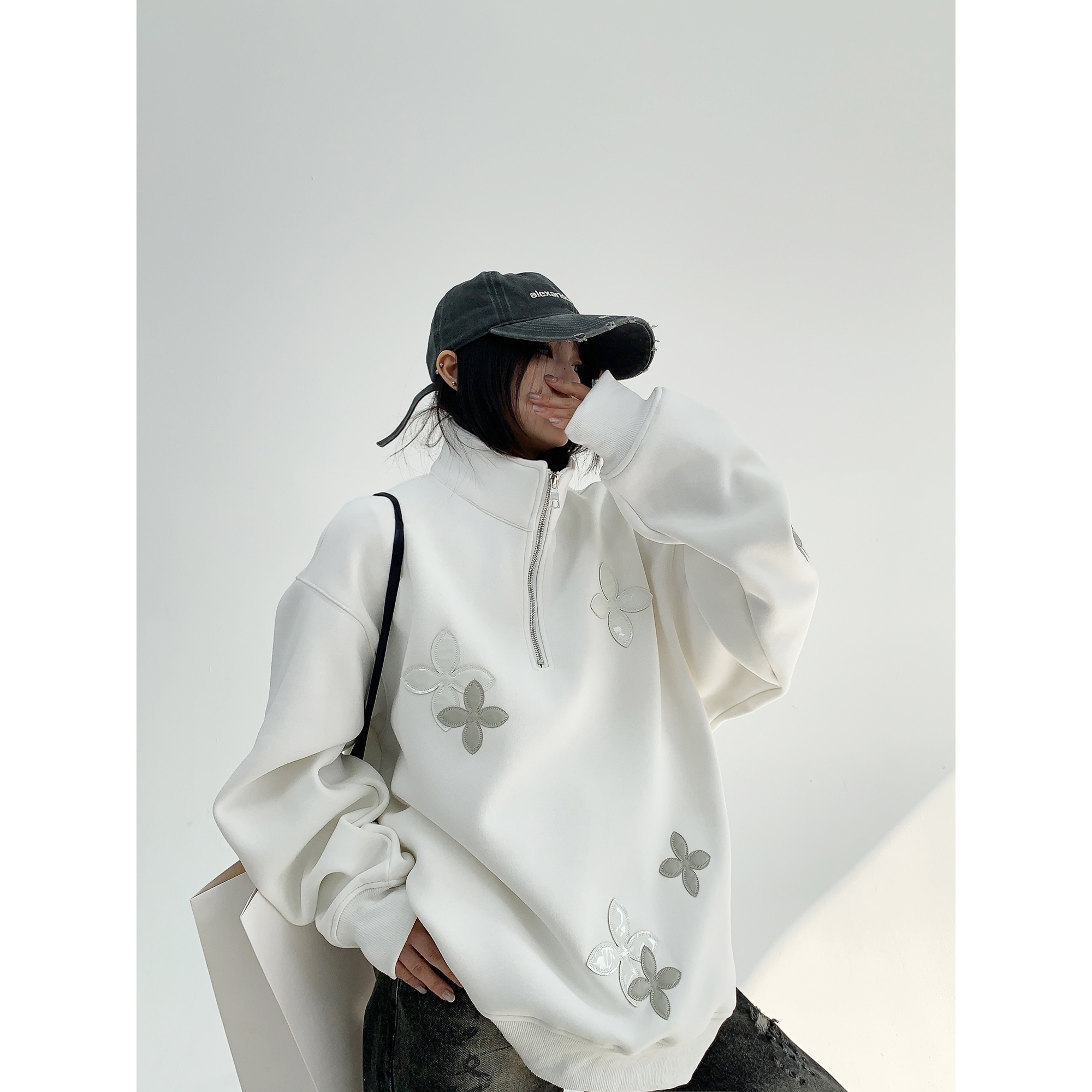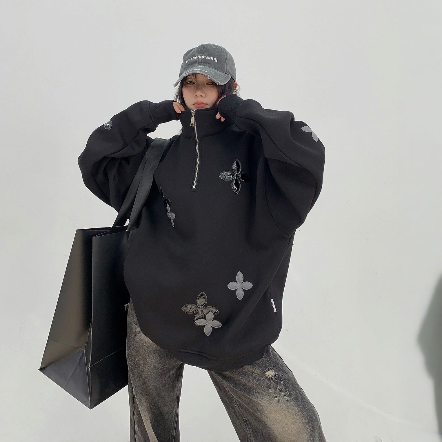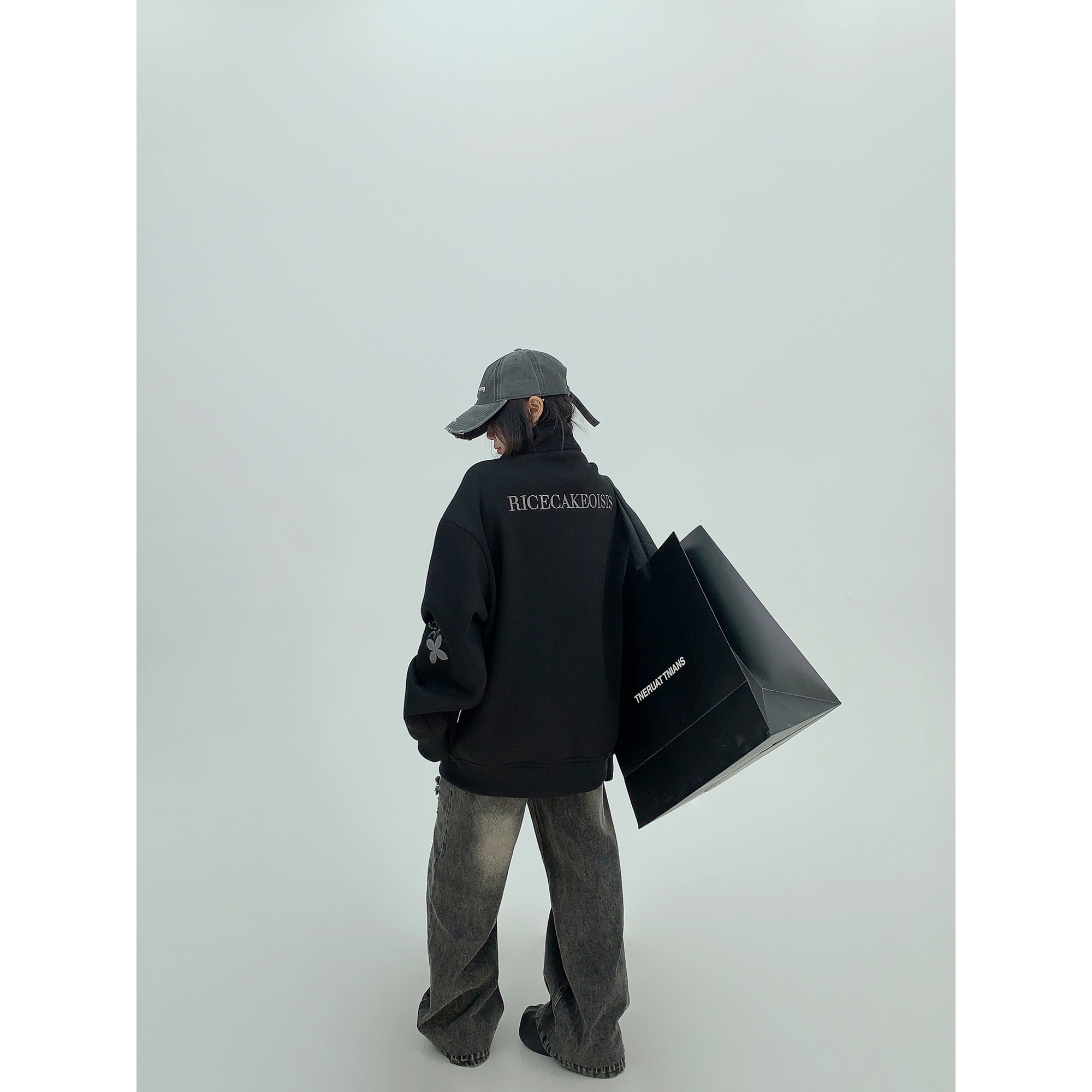 【トップス】リラックス感 ゆったりシルエット ダメージ加工 刺繍 春 秋 冬 フード付き パーカー 【FCシリーズ】