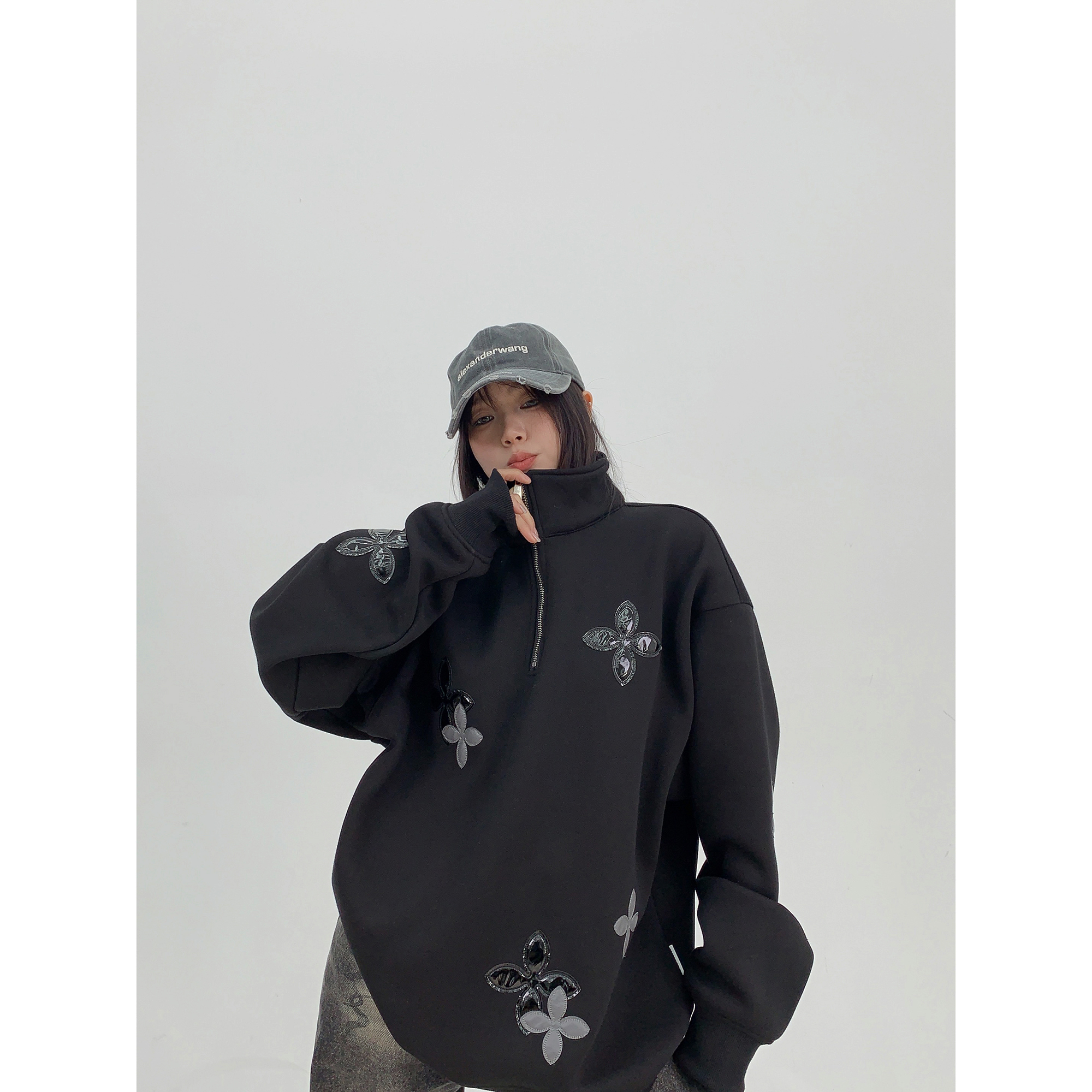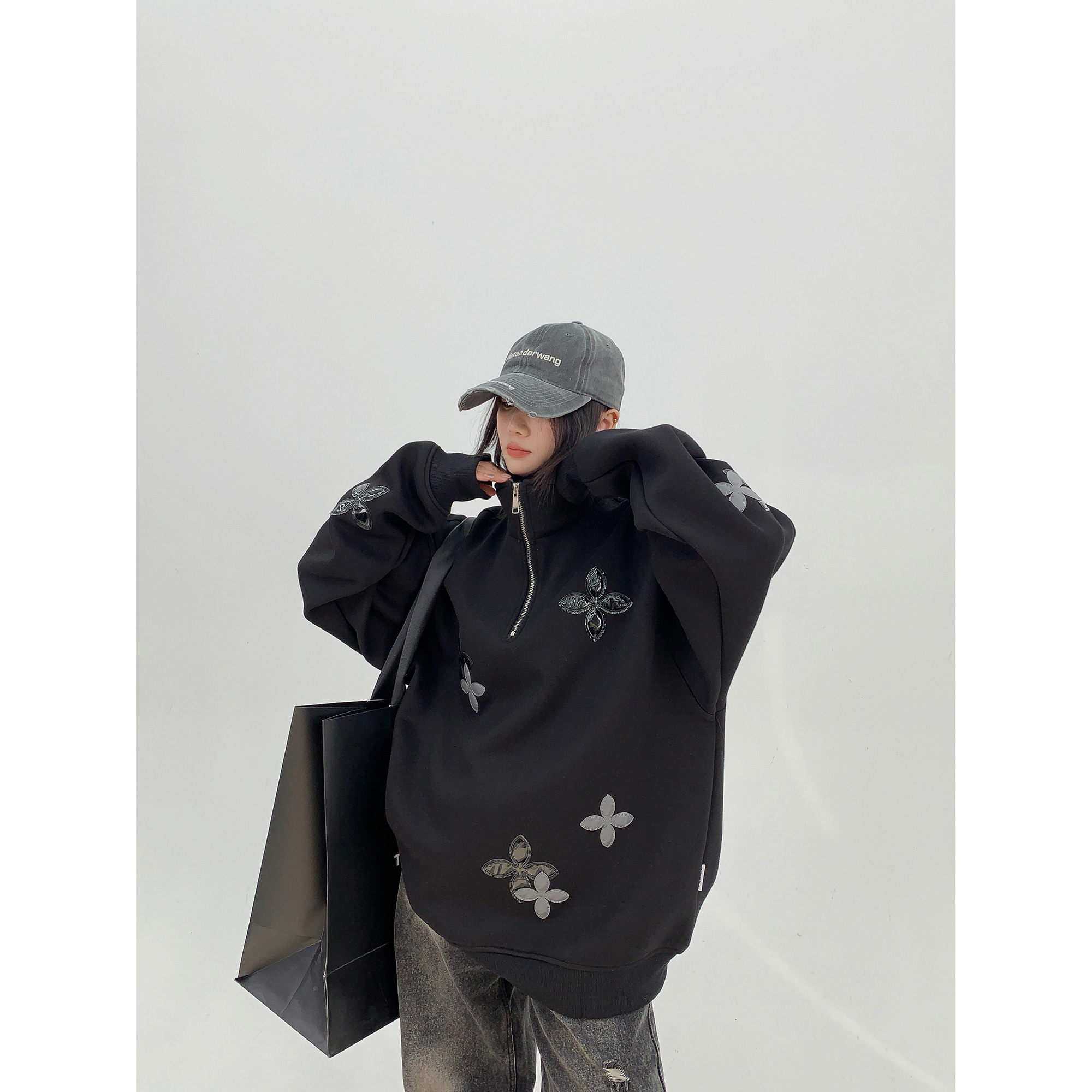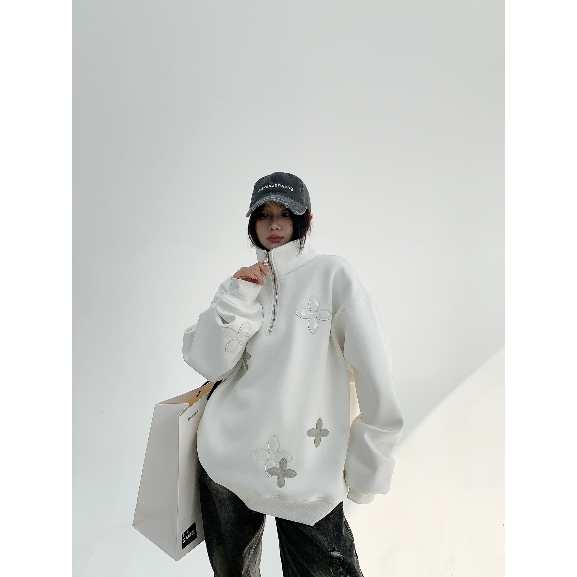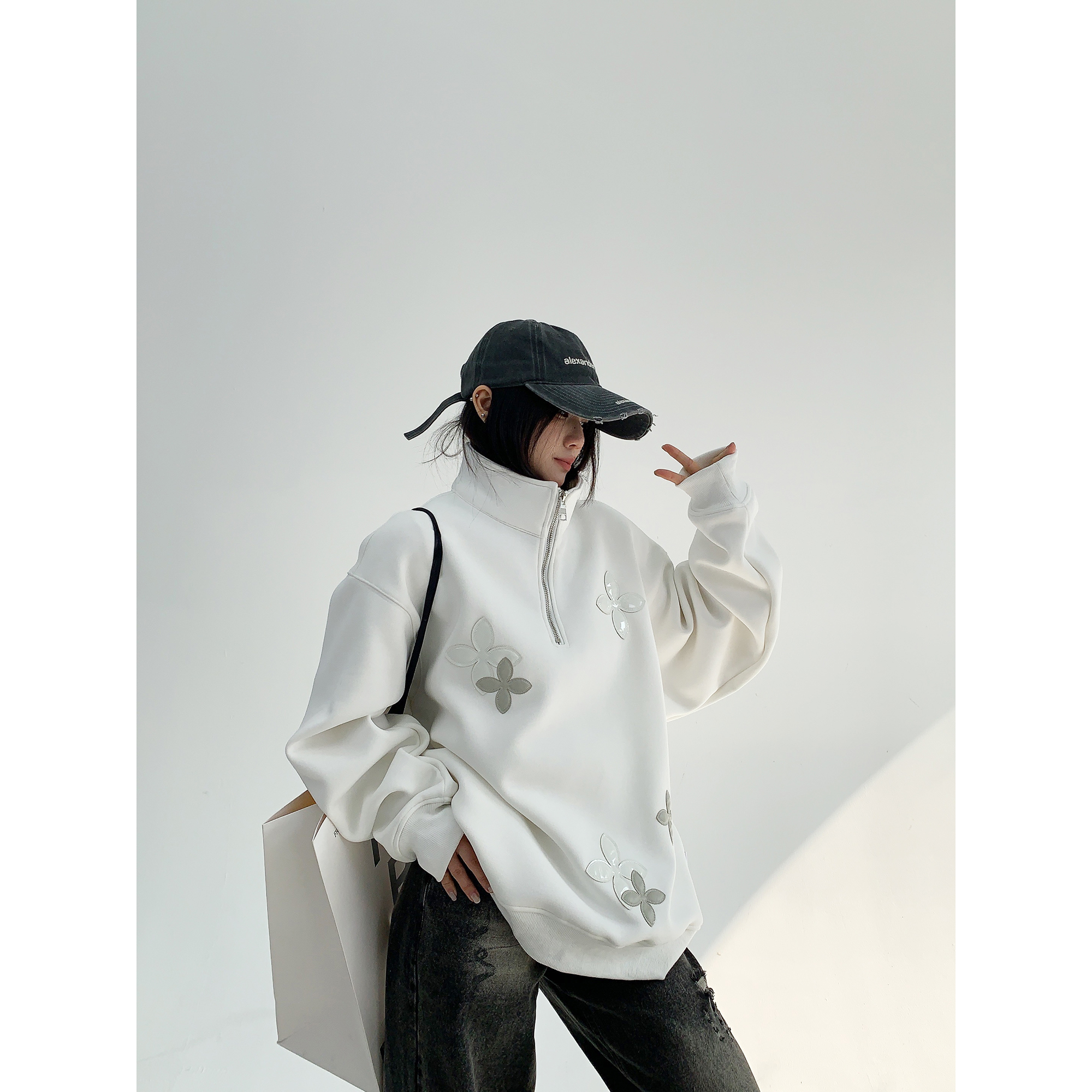 【トップス】リラックス感 ゆったりシルエット ダメージ加工 刺繍 春 秋 冬 フード付き パーカー 【FCシリーズ】