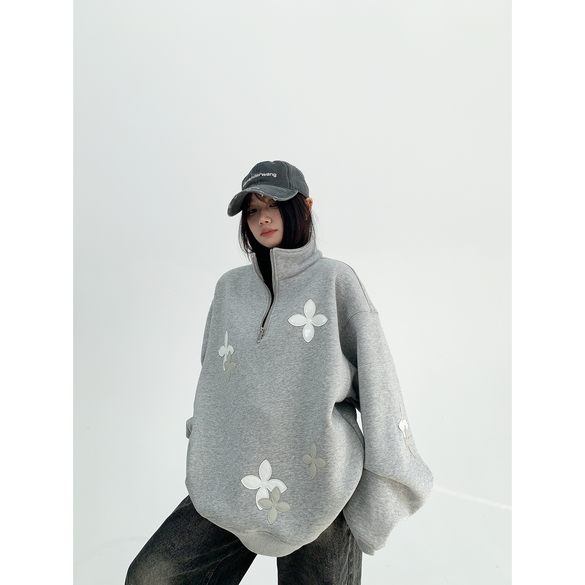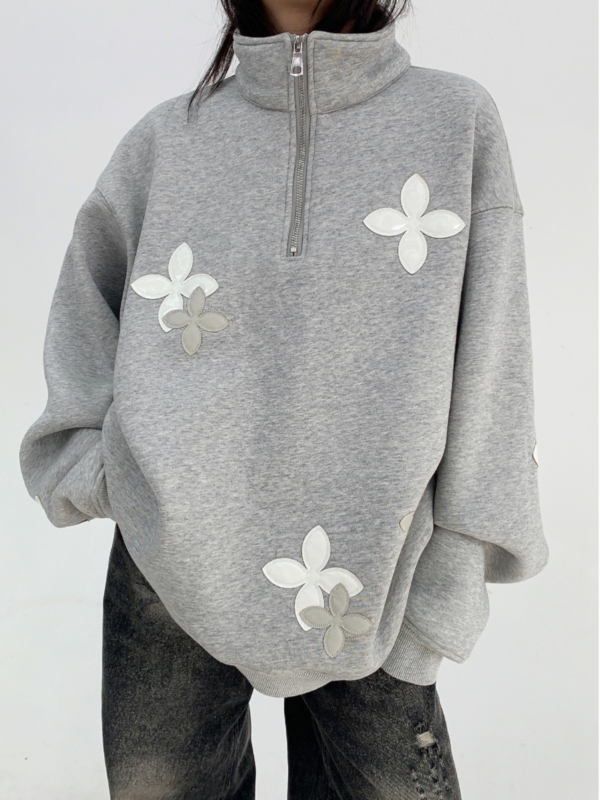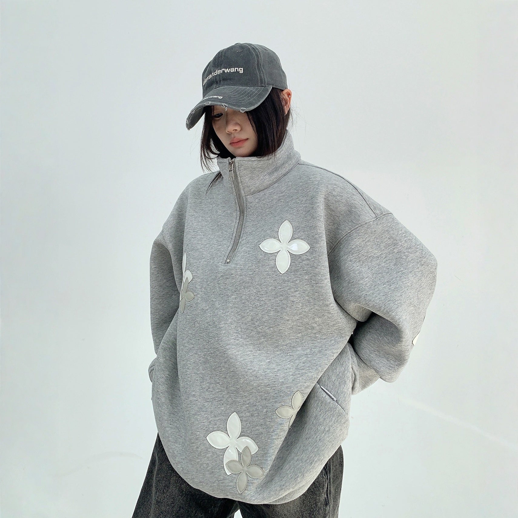 【商品名】【トップス】パッチレザー付きの ヘビーウェイト 春 秋 冬 スタンドネック パーカー 【FCシリーズ】