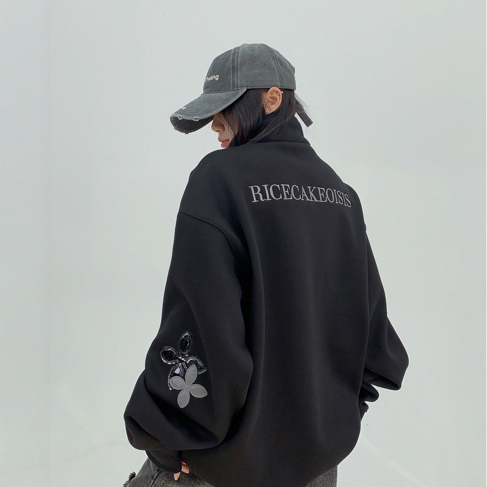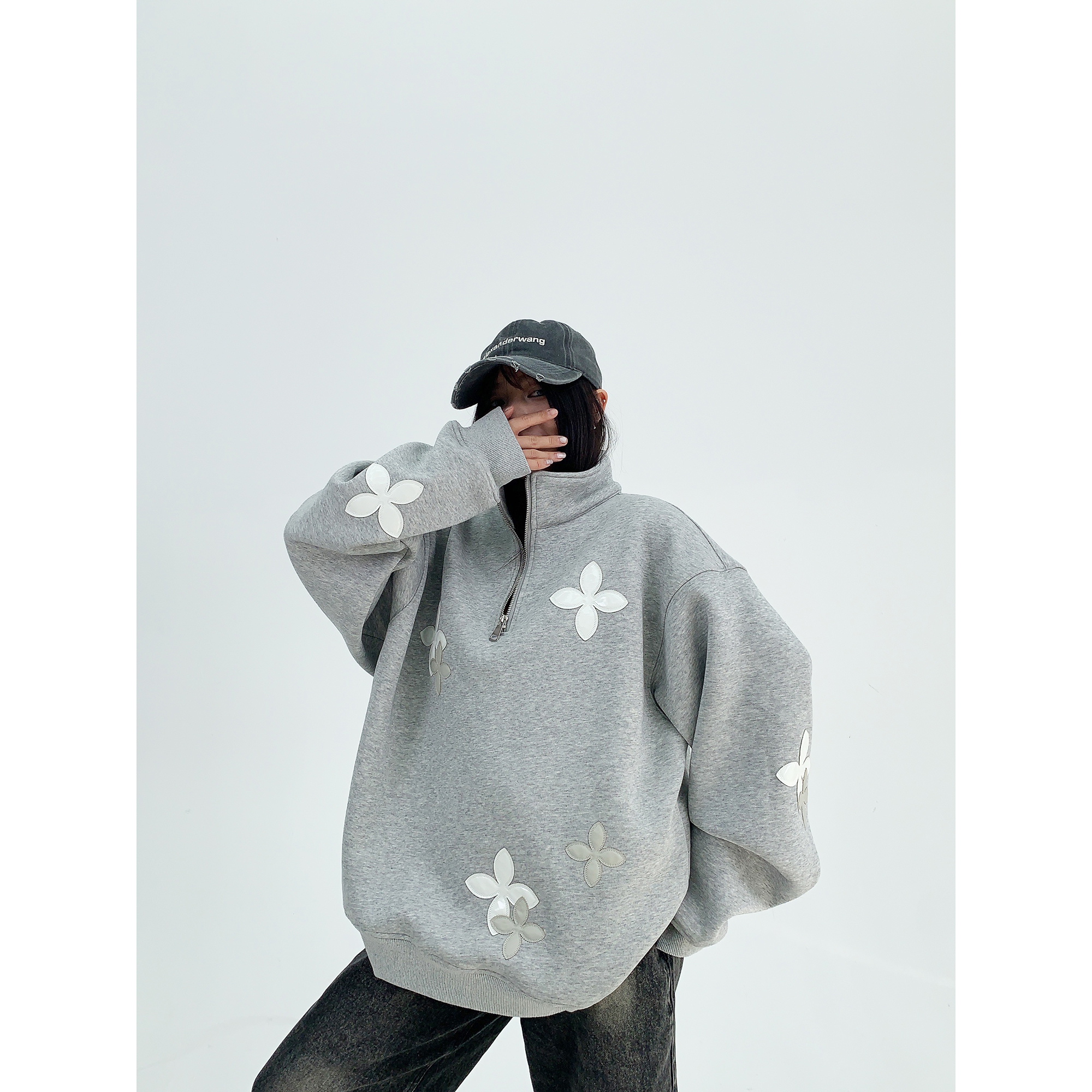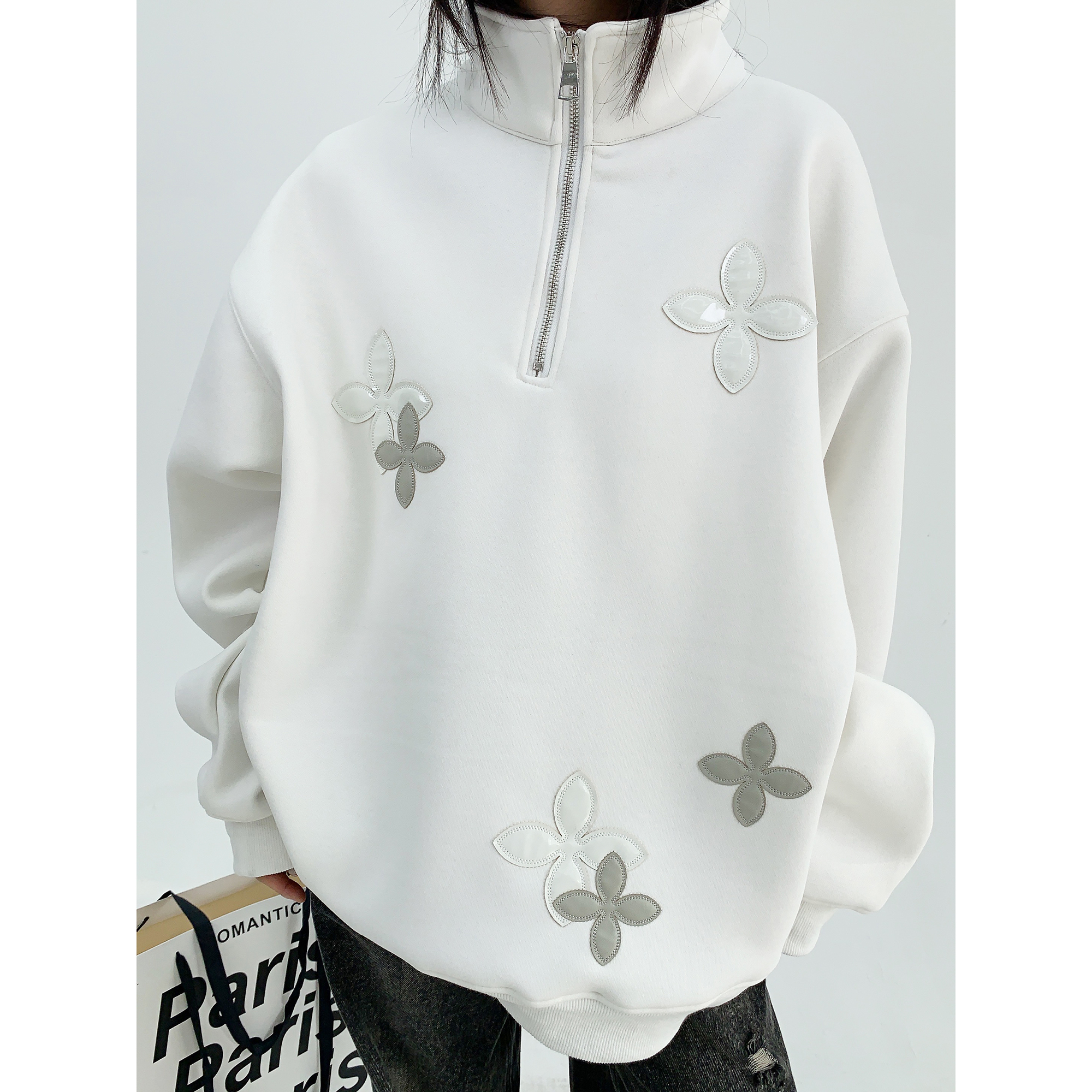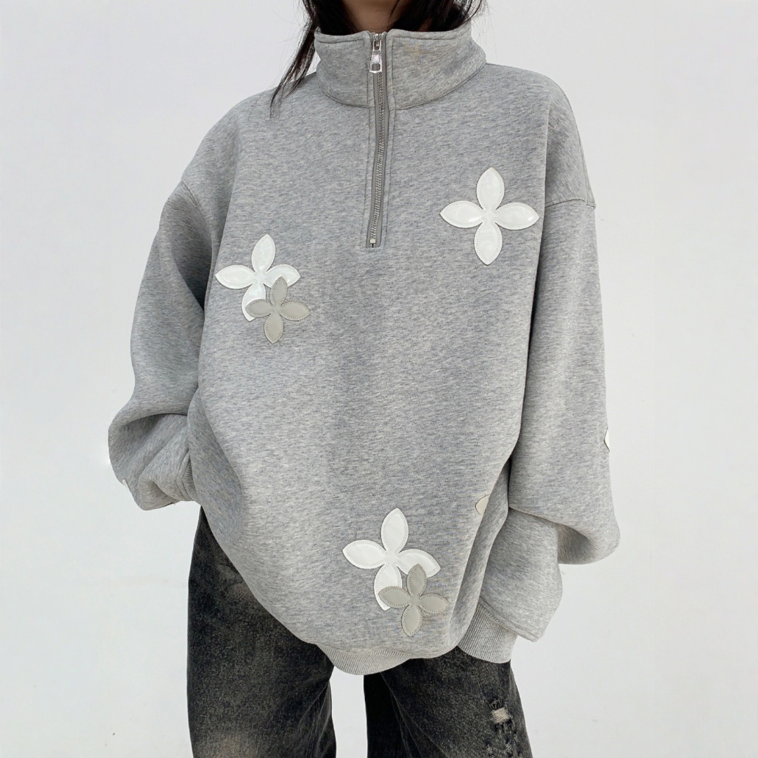 【商品名】【トップス】パッチレザー付きの ヘビーウェイト 春 秋 冬 スタンドネック パーカー 【FCシリーズ】