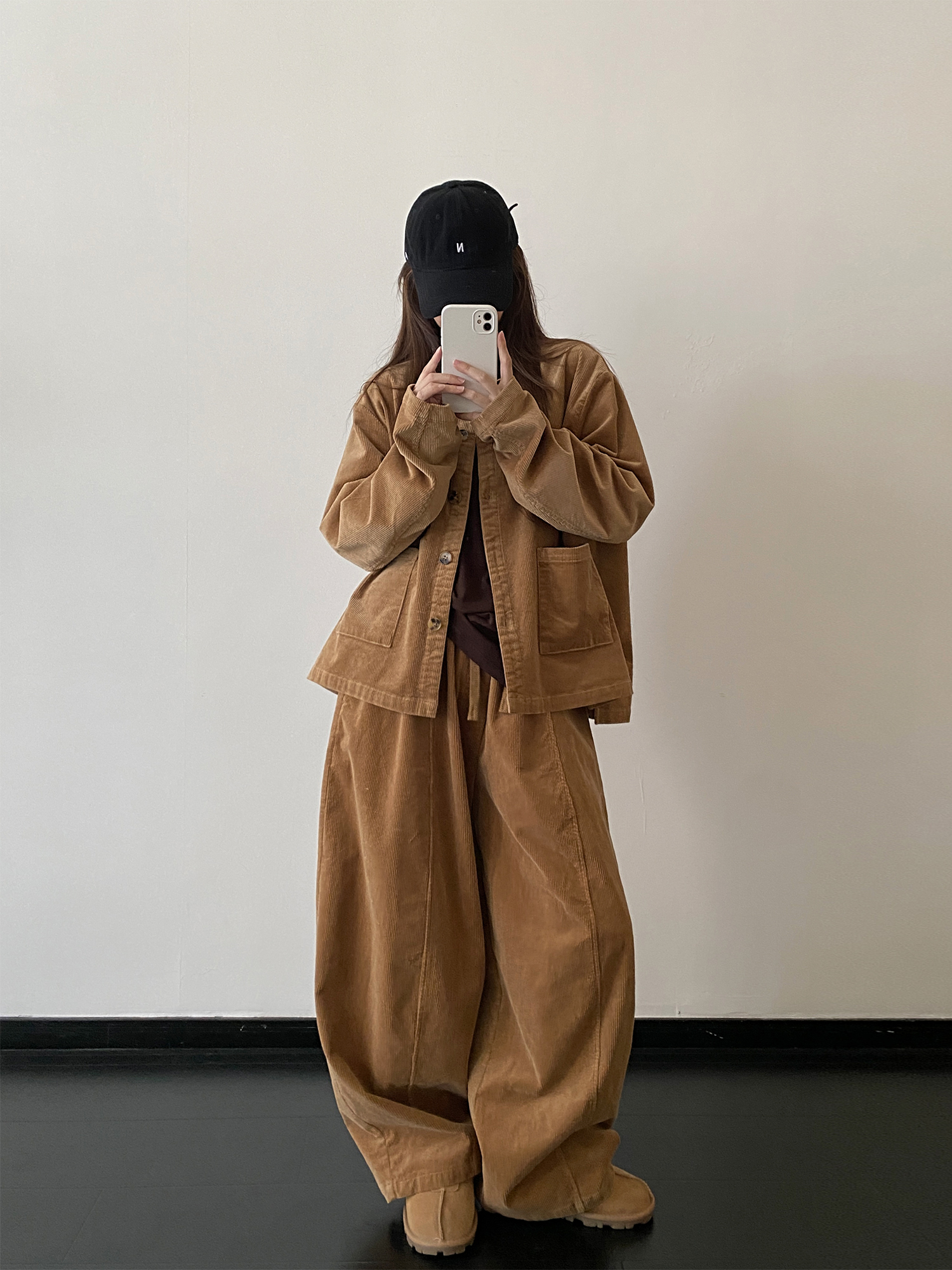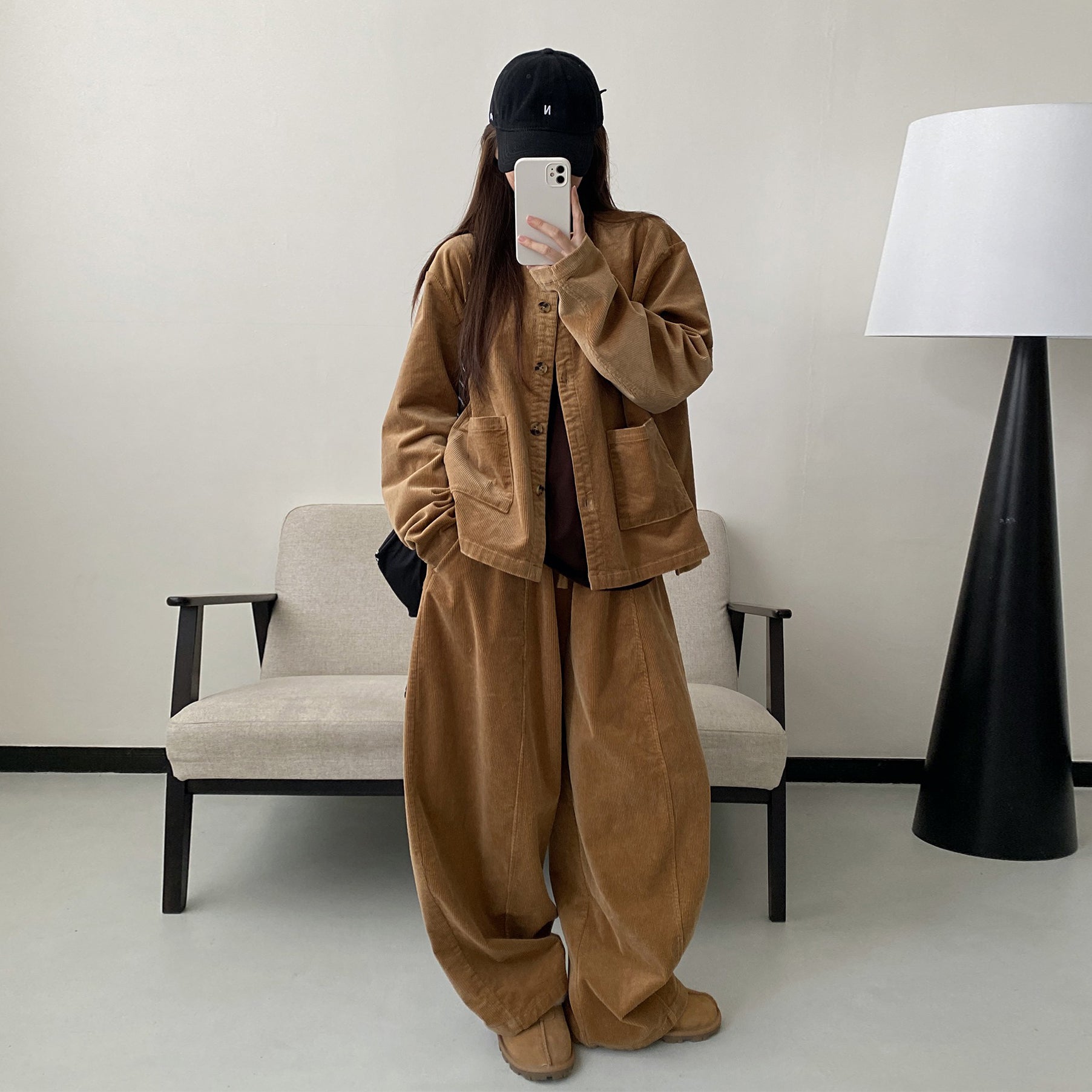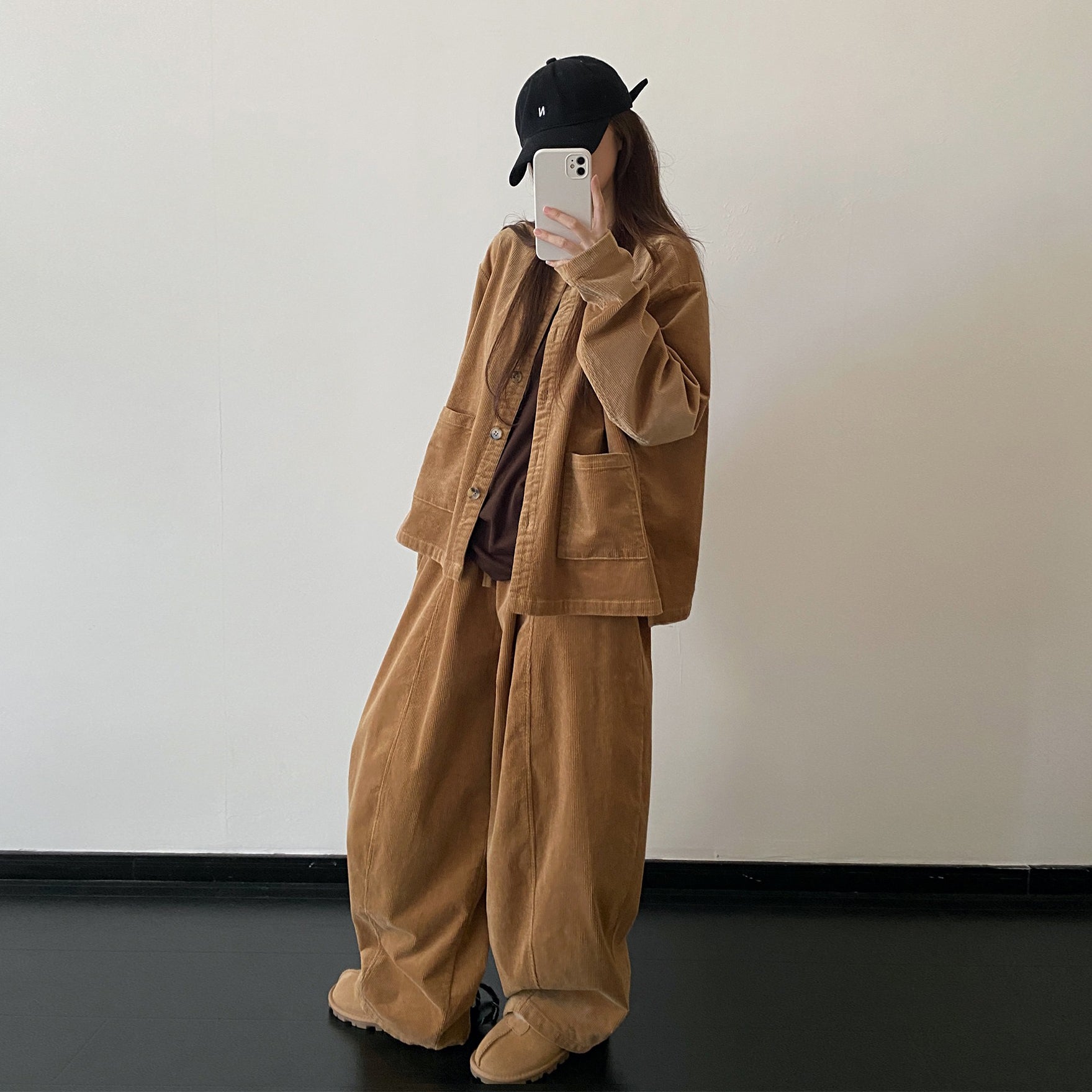 【商品名】【セットアップ】【単品注文】コーデュロイ ジャケット+ ゆったり カジュアル ワイドパンツ 上下セット 【FCシリーズ】