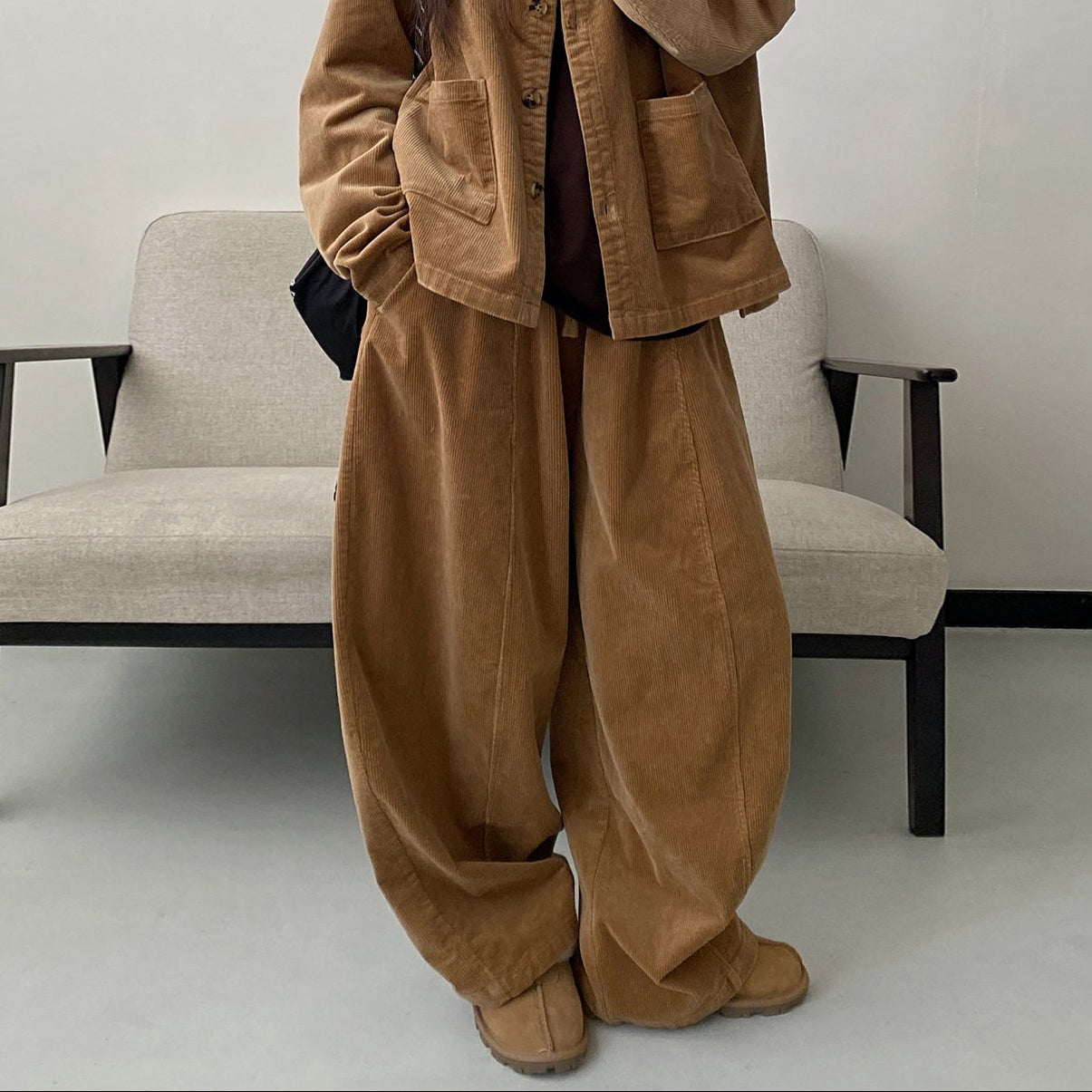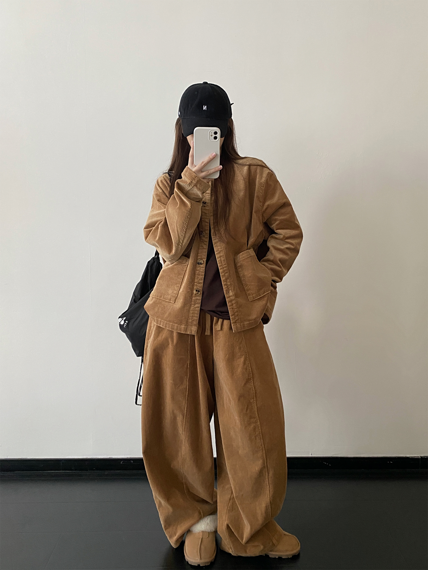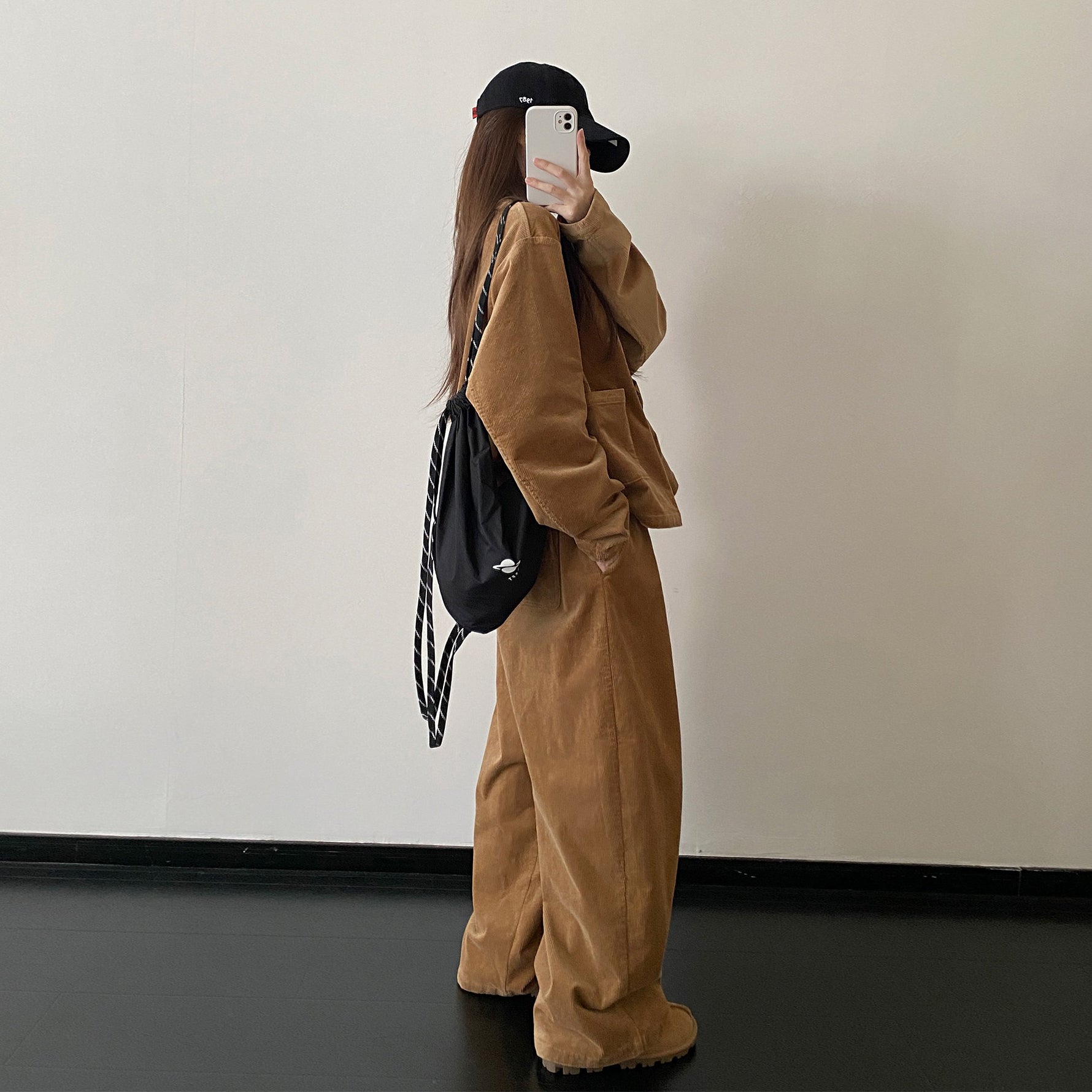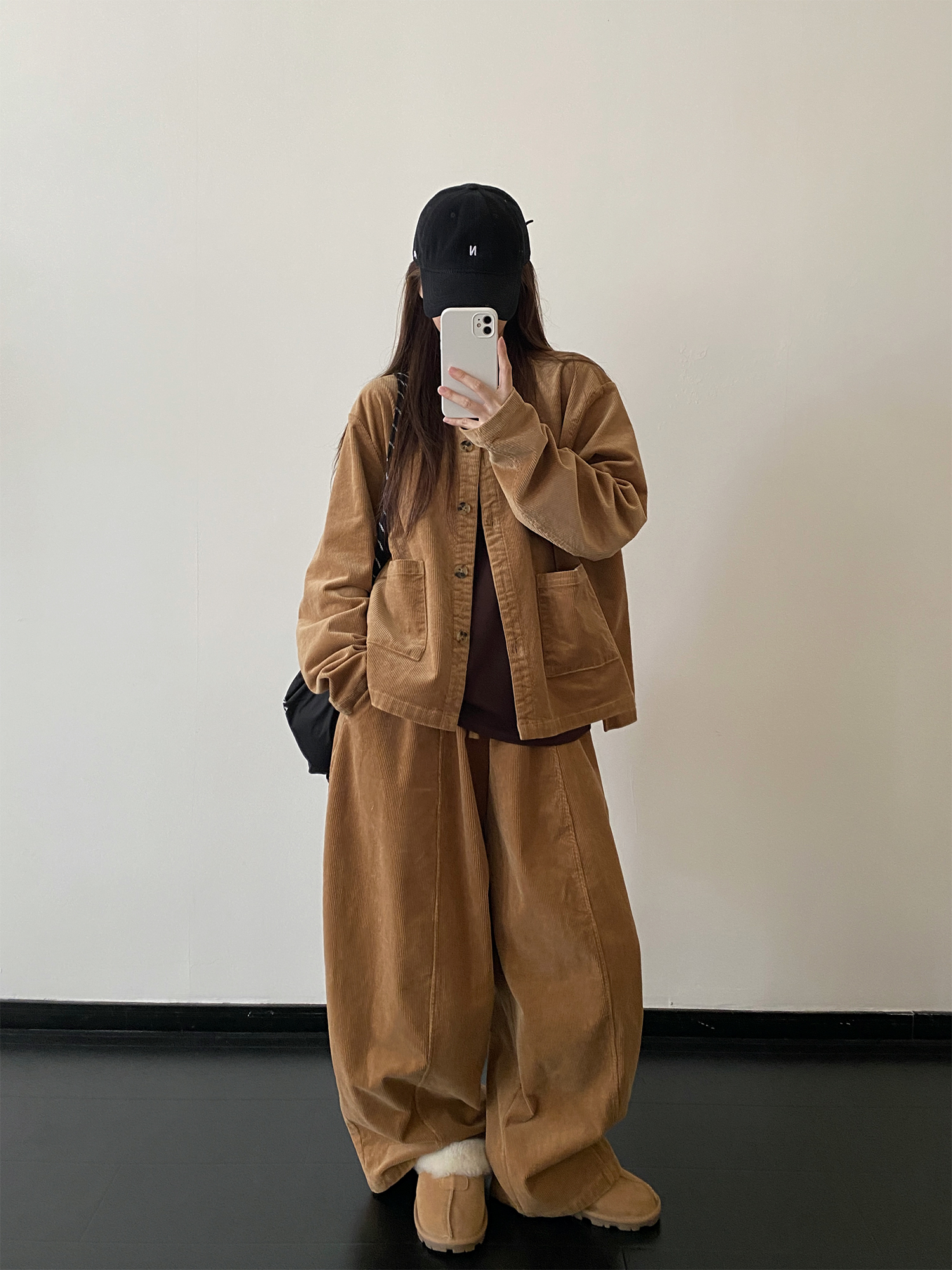 【商品名】【セットアップ】【単品注文】コーデュロイ ジャケット+ ゆったり カジュアル ワイドパンツ 上下セット 【FCシリーズ】