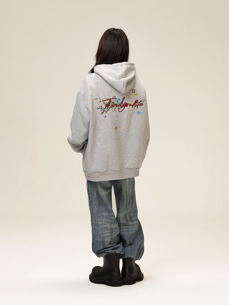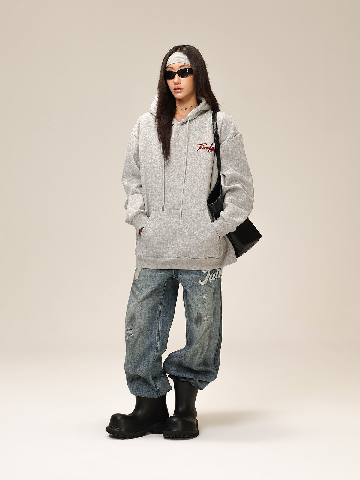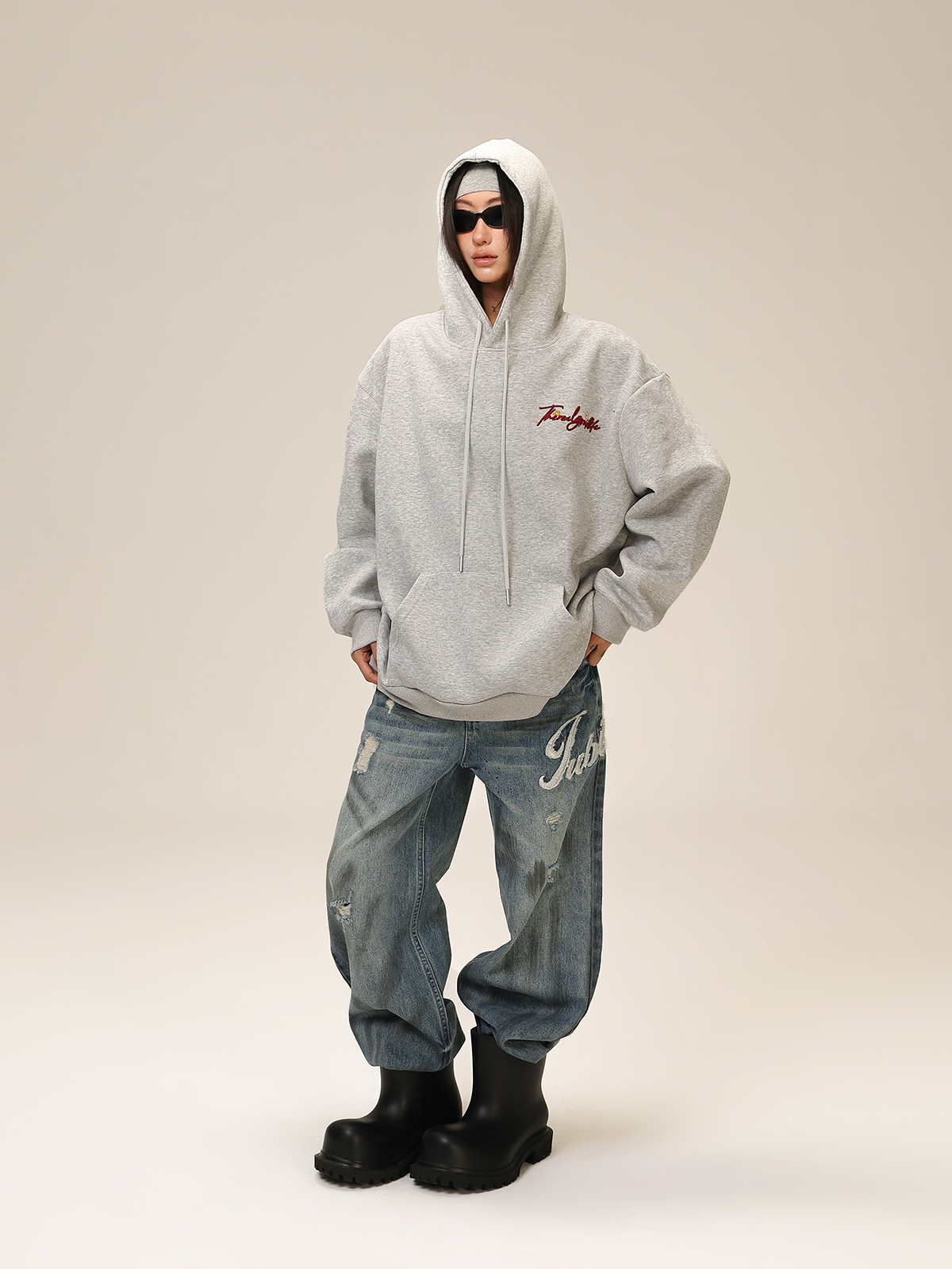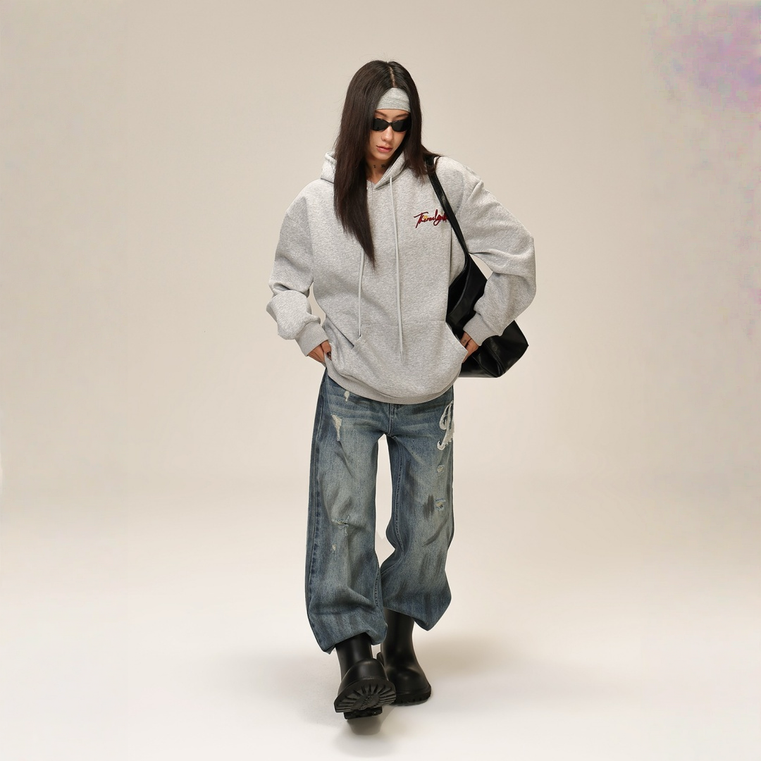 【トップス】リラックス感 ゆったりシルエット ダメージ加工 刺繍 春 秋 冬 フード付き パーカー 【FCシリーズ】