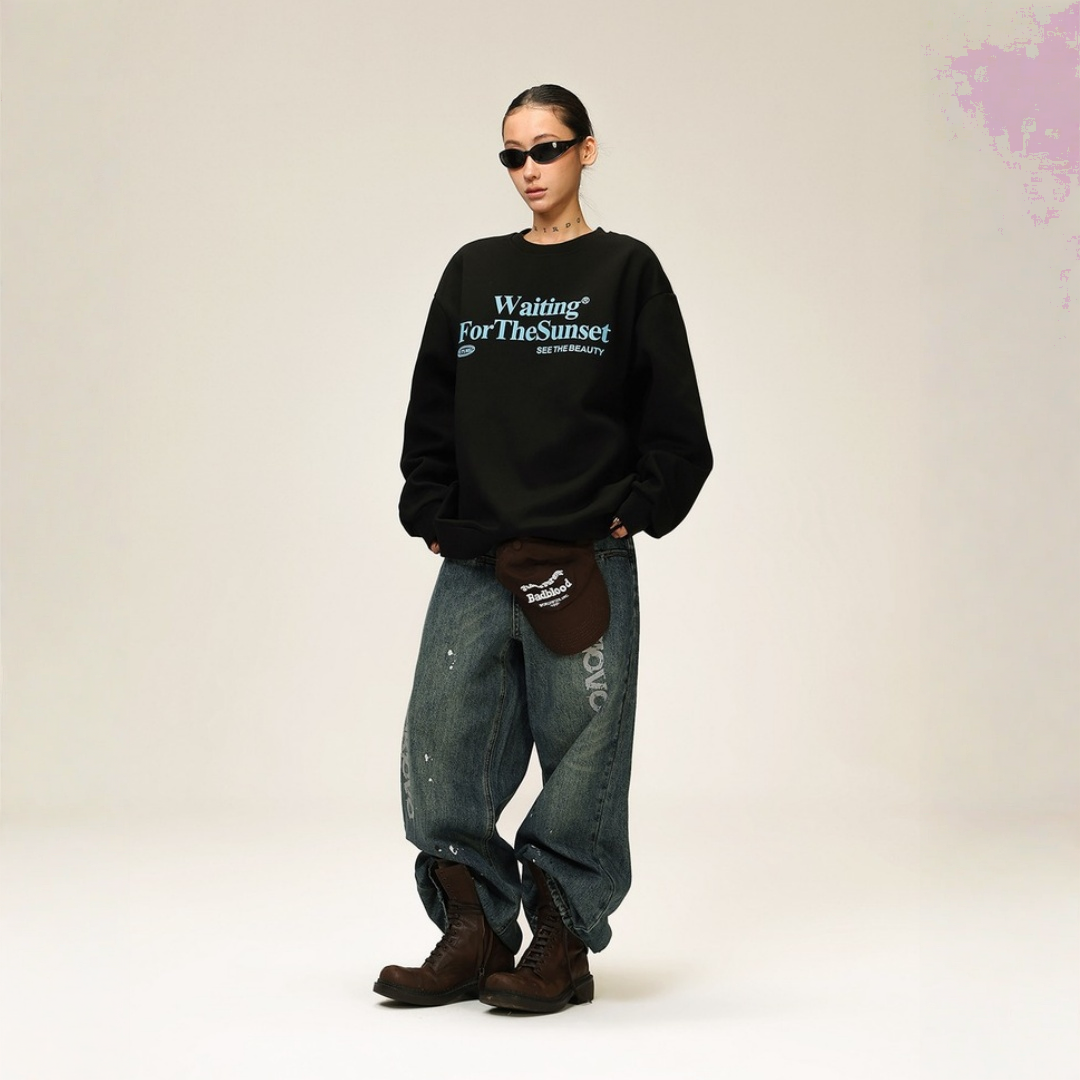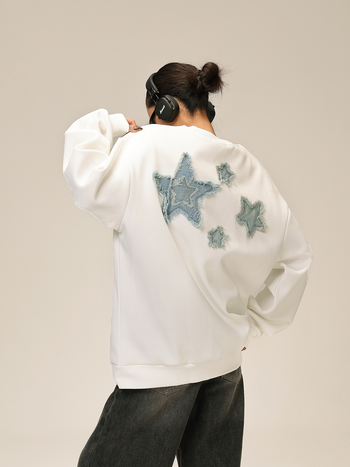【トップス】星形ワッペン アメリカンヴィンテージ風 ゆったりシルエット ラウンドネック パーカー 【FCシリーズ】