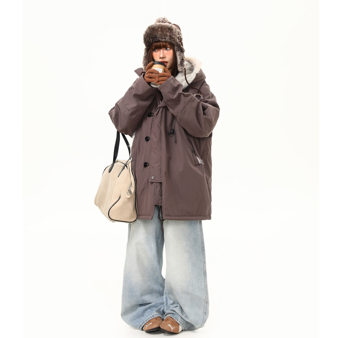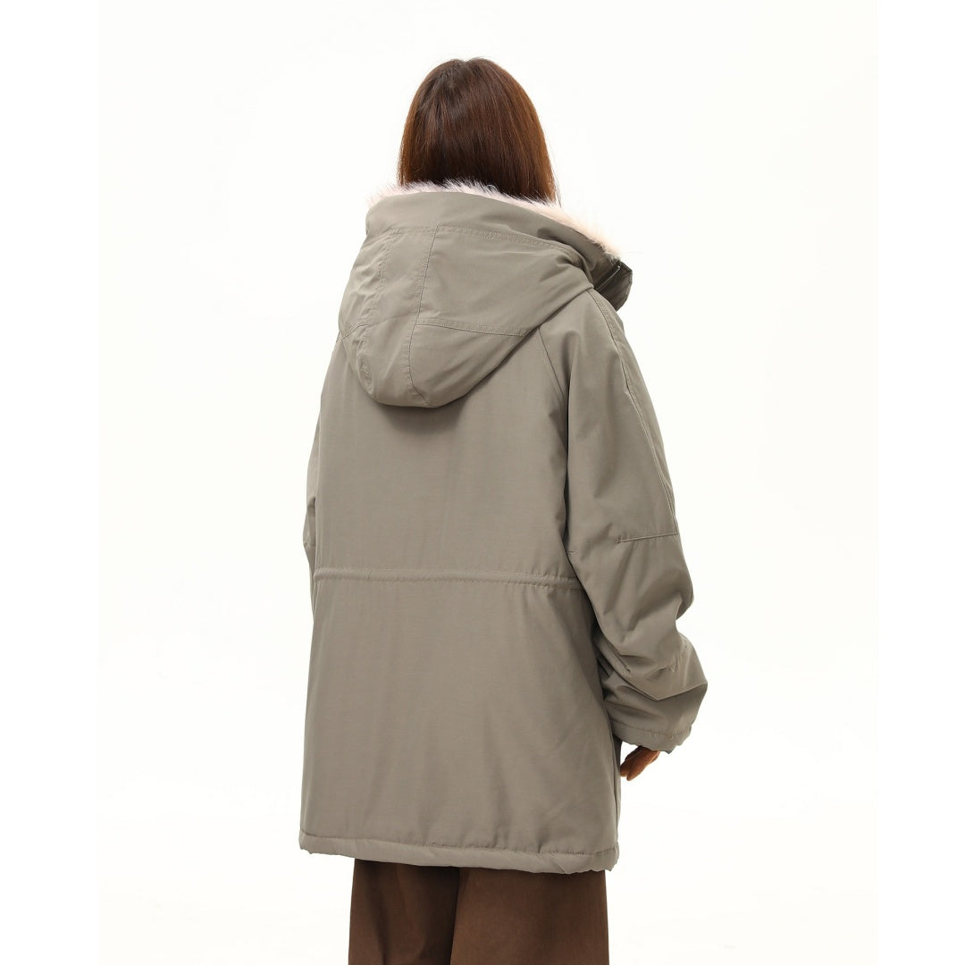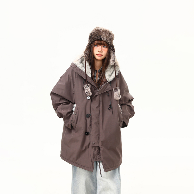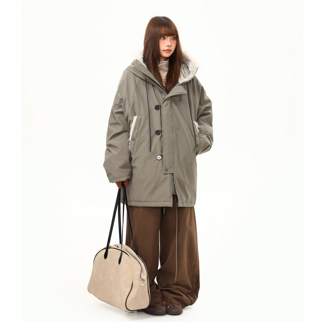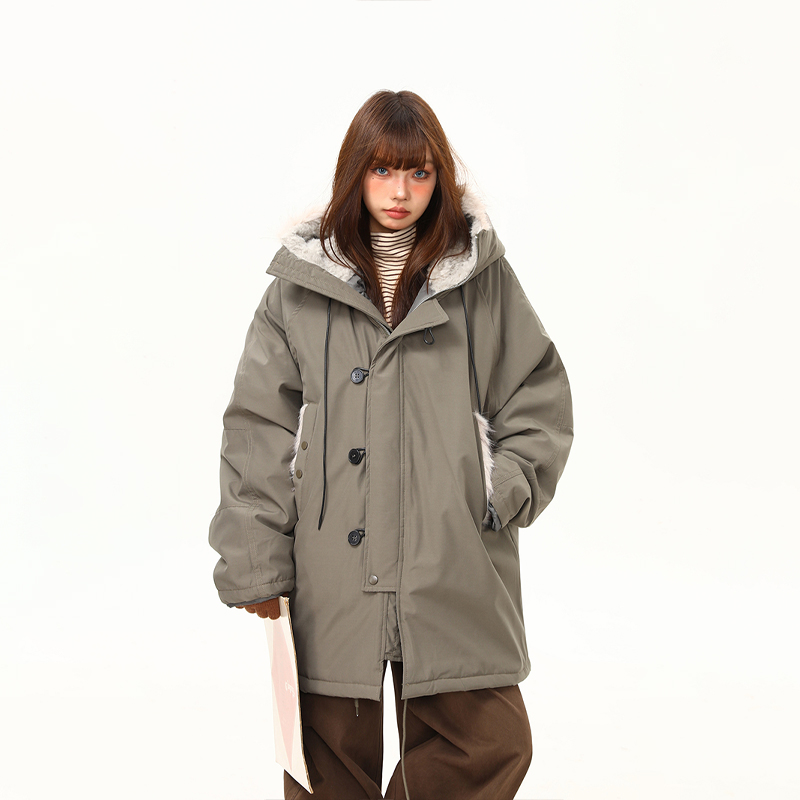 【アウター】レトロ 春 秋 冬 ボア襟 パーカーダウンジャケット 【JZシリーズ】