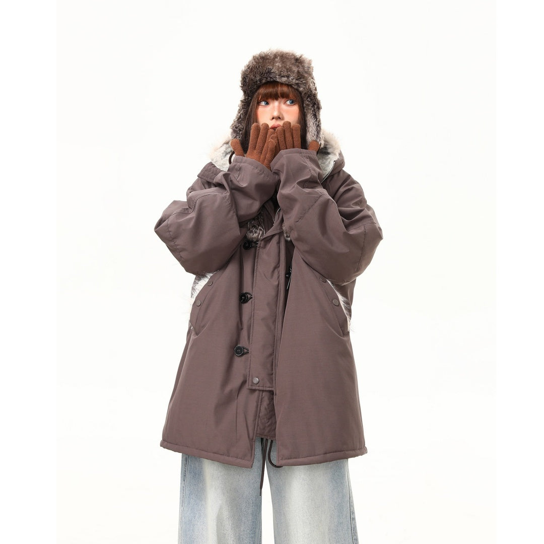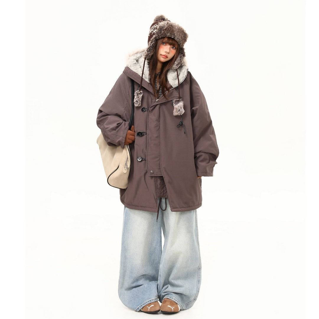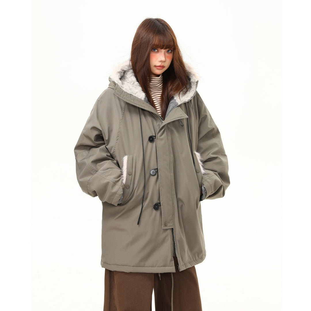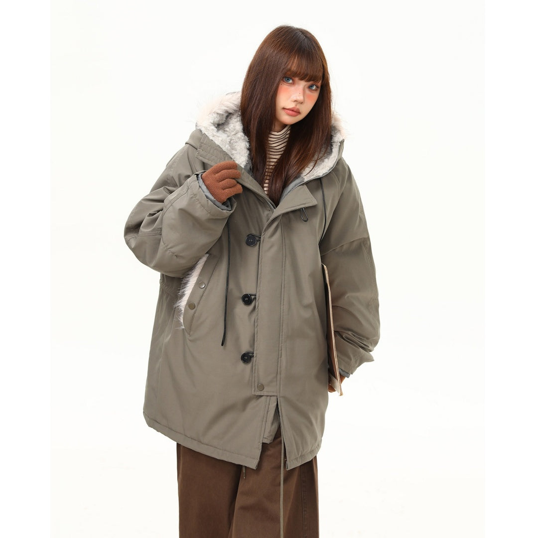 【アウター】レトロ 春 秋 冬 ボア襟 パーカーダウンジャケット 【JZシリーズ】